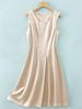 2025 Nuevo vestido color albaricoque de longitud media para mujer, sin mangas, hombro, profesional, informal, chaleco, vestido de moda, corte entallado