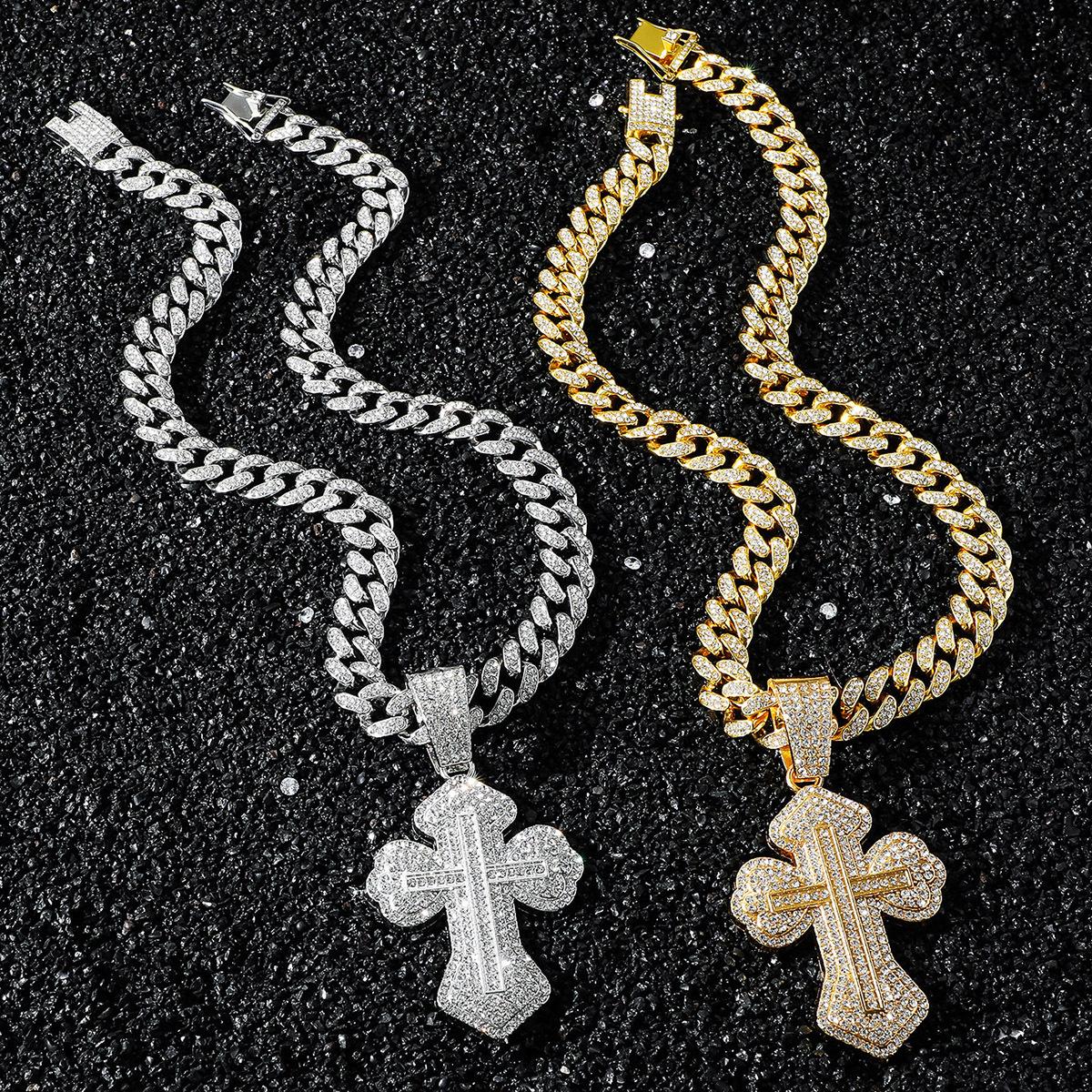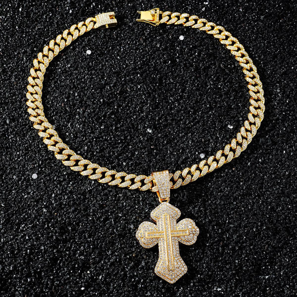 Collar dominante para hombre con colgante de letra de diamante completo, cadena cubana ancha, estilo hip hop, hip-hop, baile callejero europeo y americano