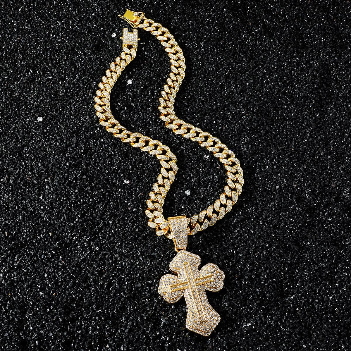 Collar de cadena cubana con colgante de 1000 puntas de diamante completo para hombre, estilo hip-hop europeo y americano, estilo dominante digital, accesorios de calle de moda