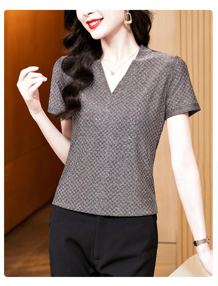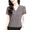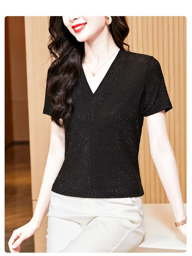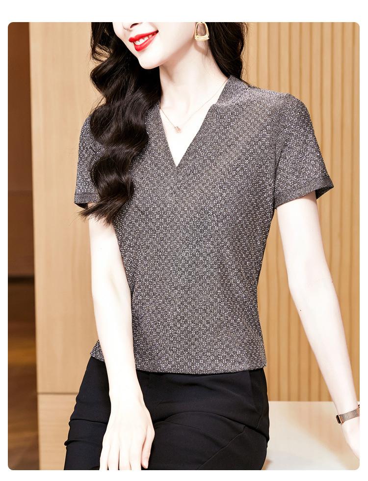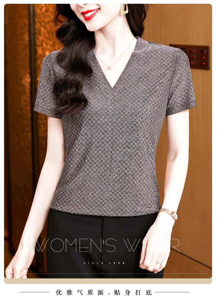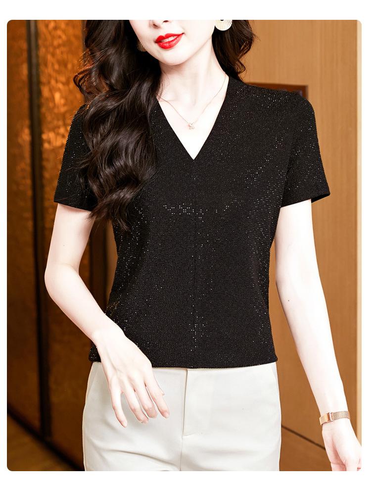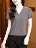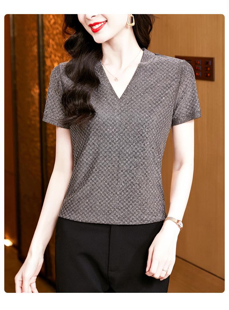 2025 Verano Nuevo Elegante Combinable Cuello en V Color Sólido Manga Corta Camiseta Básica Casual Delgada Jersey Top Camiseta de Moda para Mujer