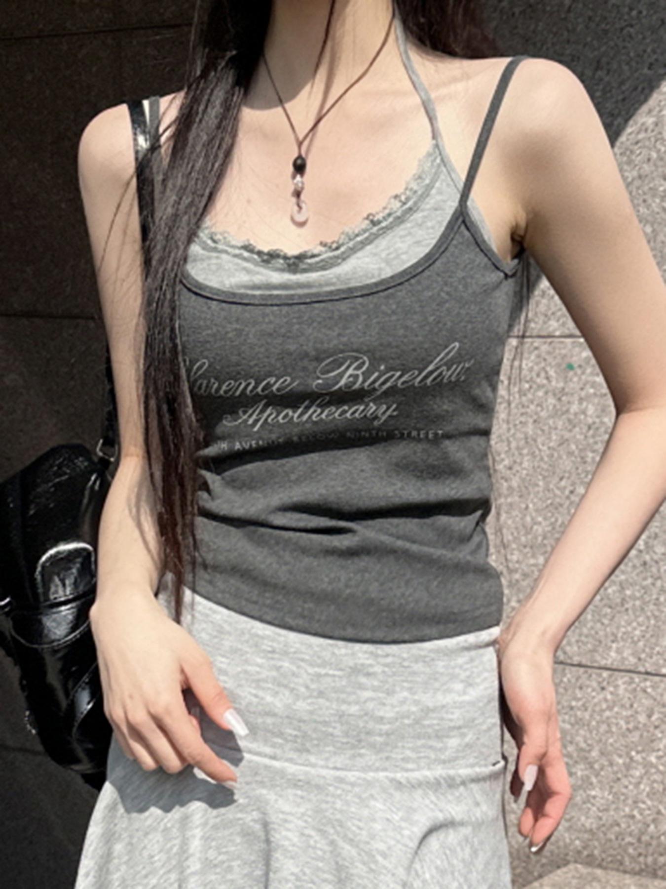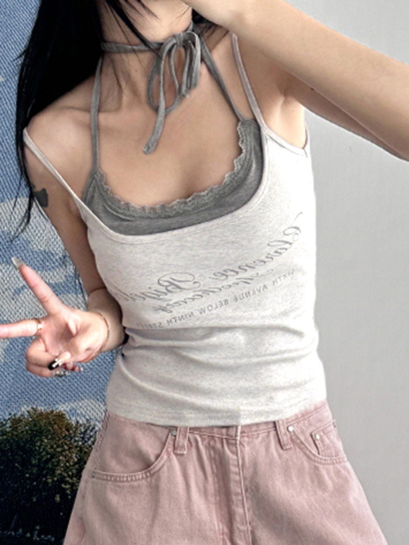 Comercio Exterior Estilo Deseo Puro Camisola de Tirantes Colgante de Cuello Moda Verano Nuevo Sexy Spice Girl Ropa Exterior Top Conjunto de Dos Piezas