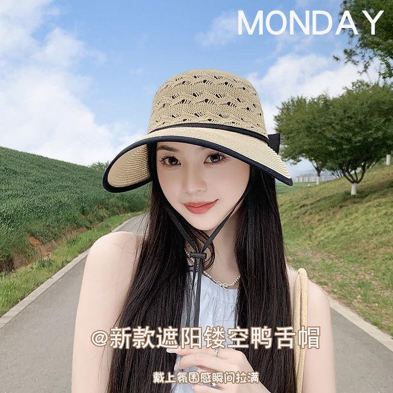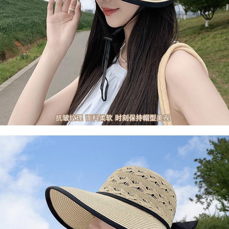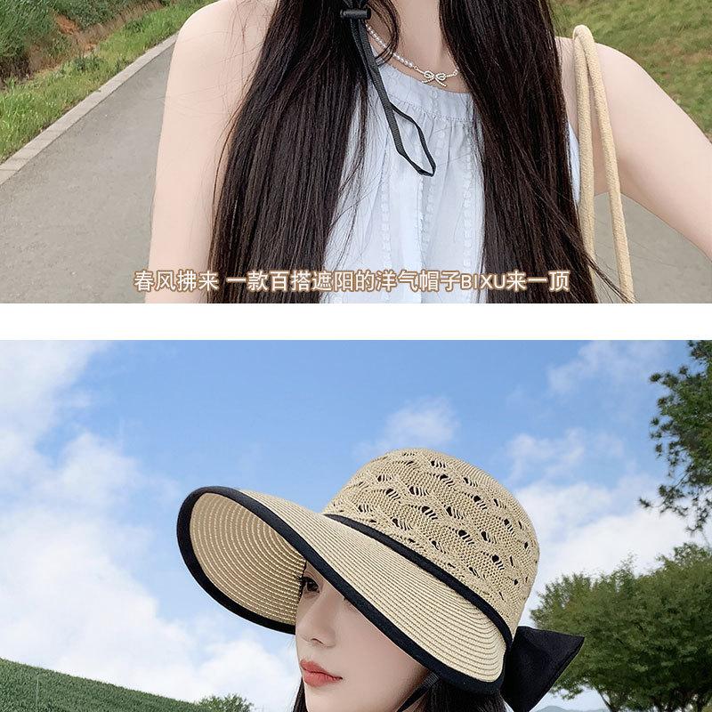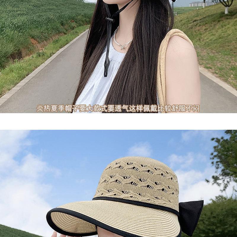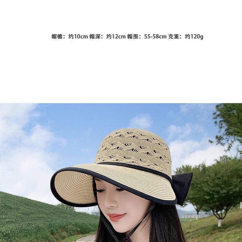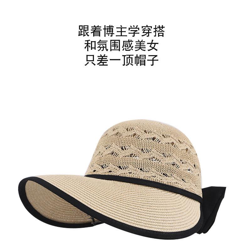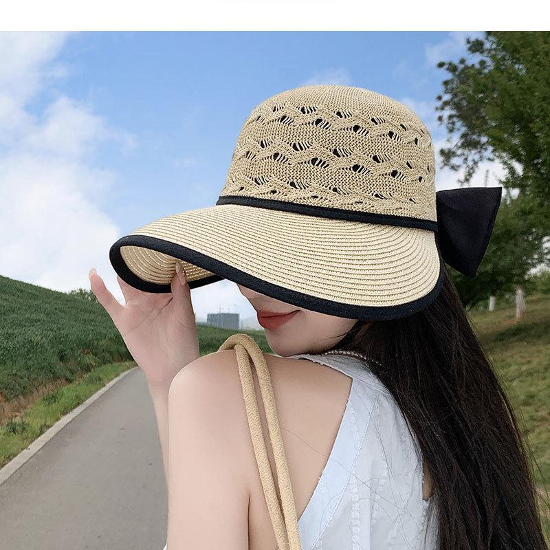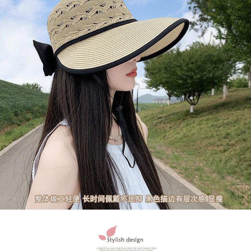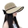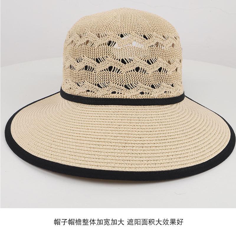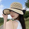 Sombrero de Sol de Nuevo Estilo para Mujer en Verano, Sombrero de Paja Tejida de Ala Ancha, Gorra con Visera Versátil para Playa y Exterior para Mujer