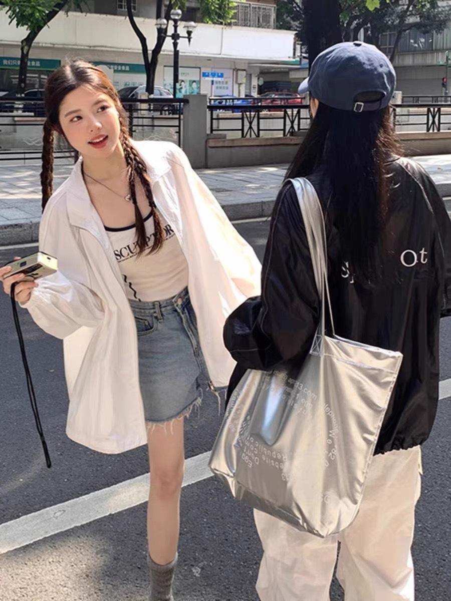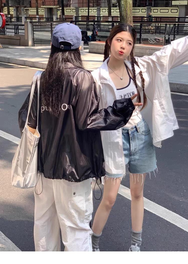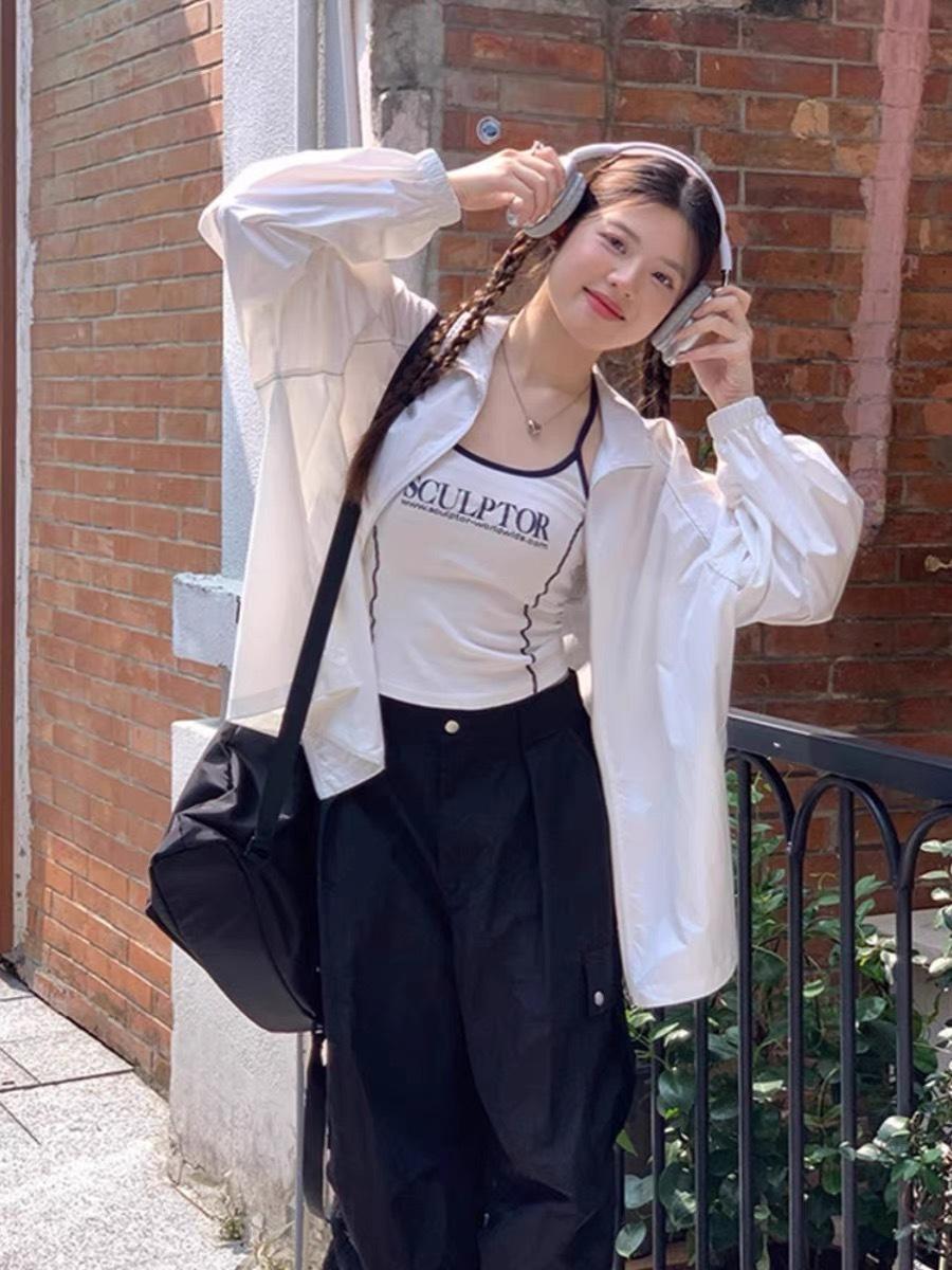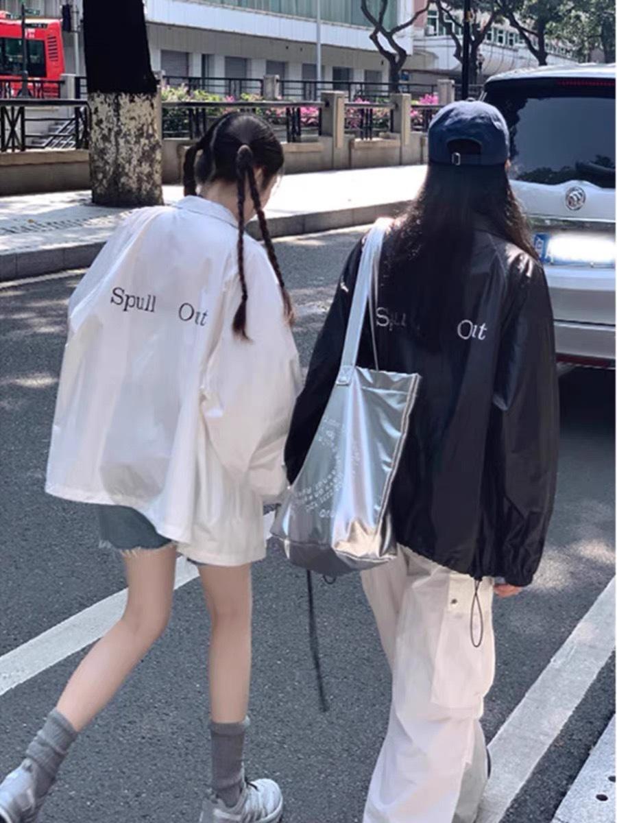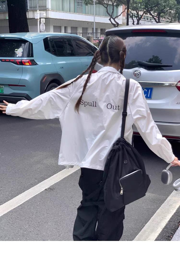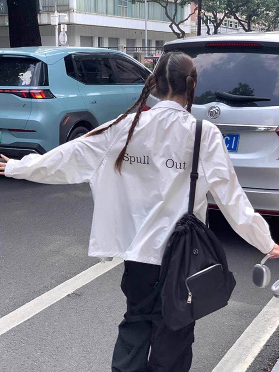 Chaqueta Estilo Coreano Estilo Holgazán Estampado de Letras para Mujer Primavera Casual Suelta Delgada Chaqueta Cárdigan Trendy Protección Solar