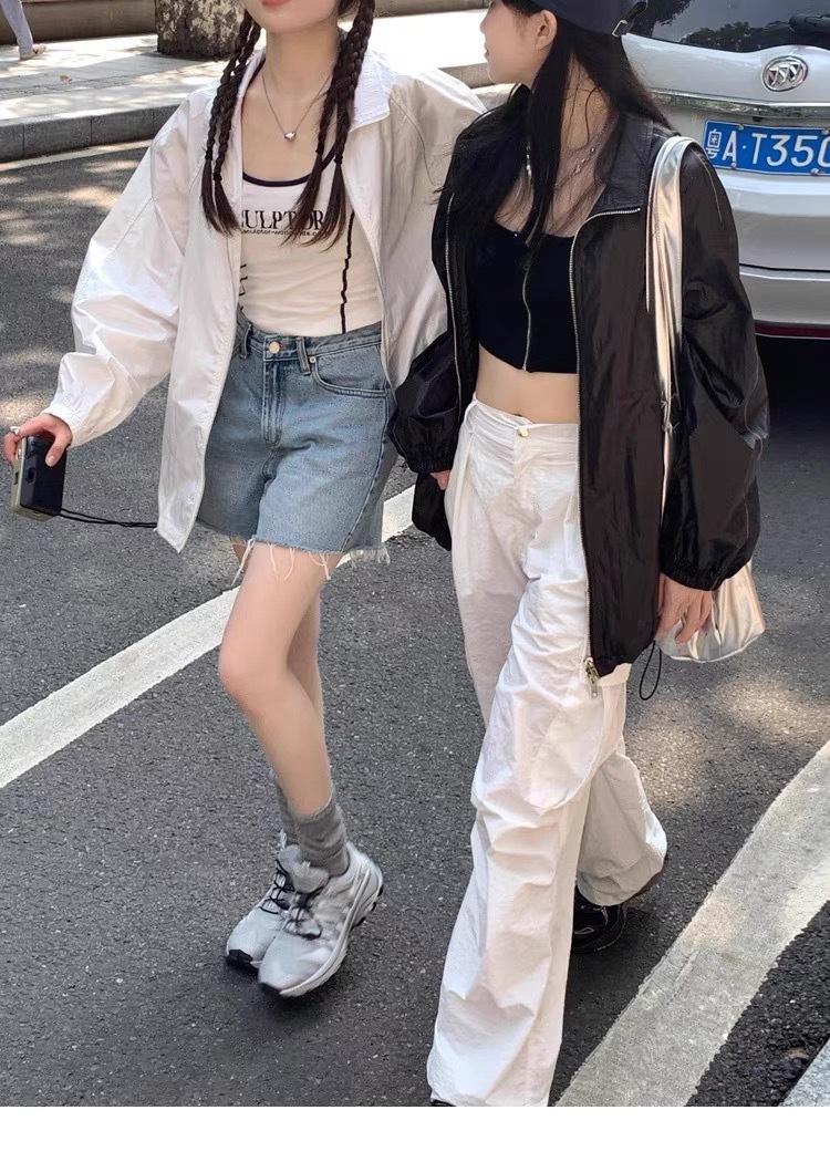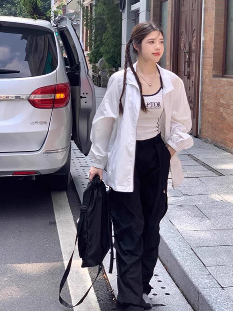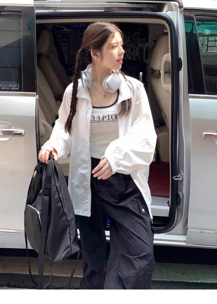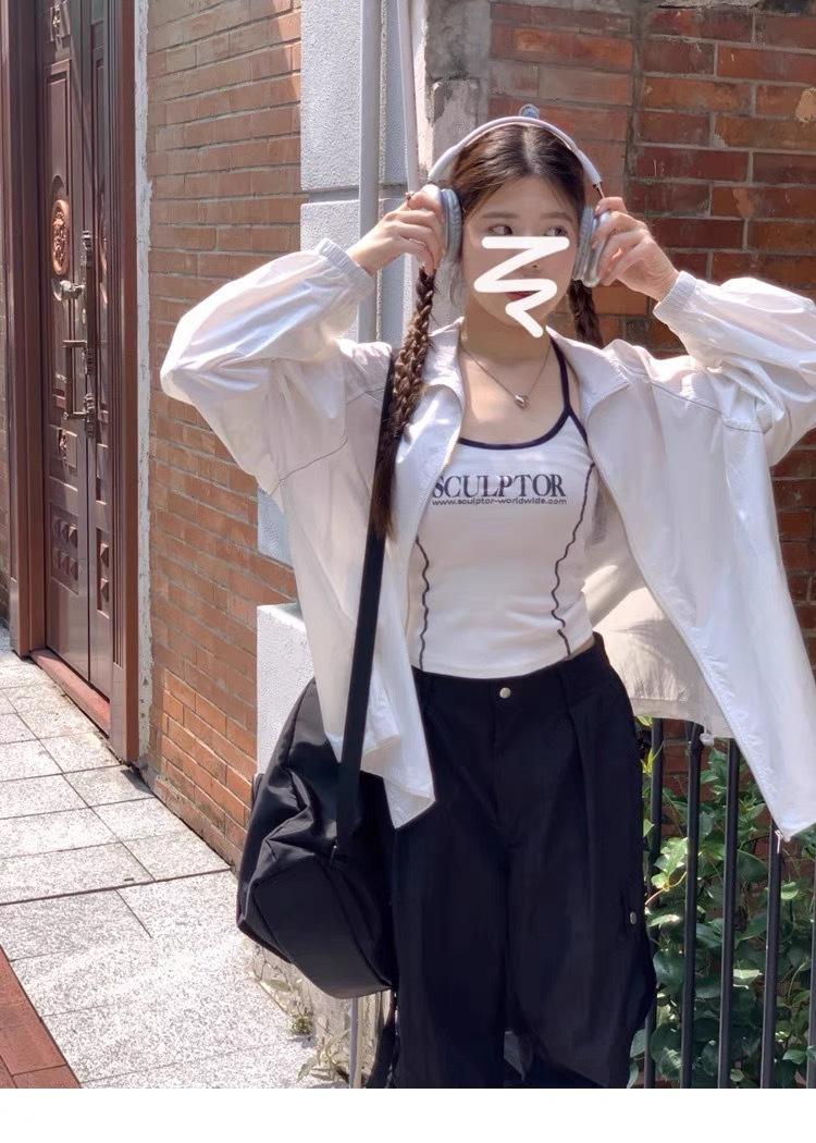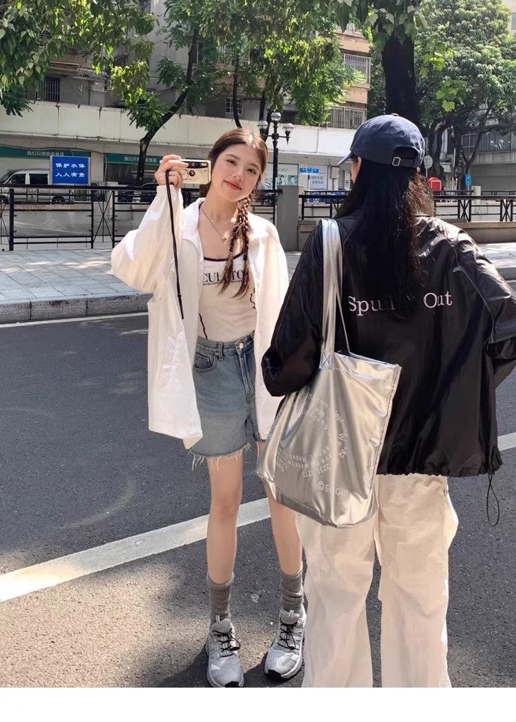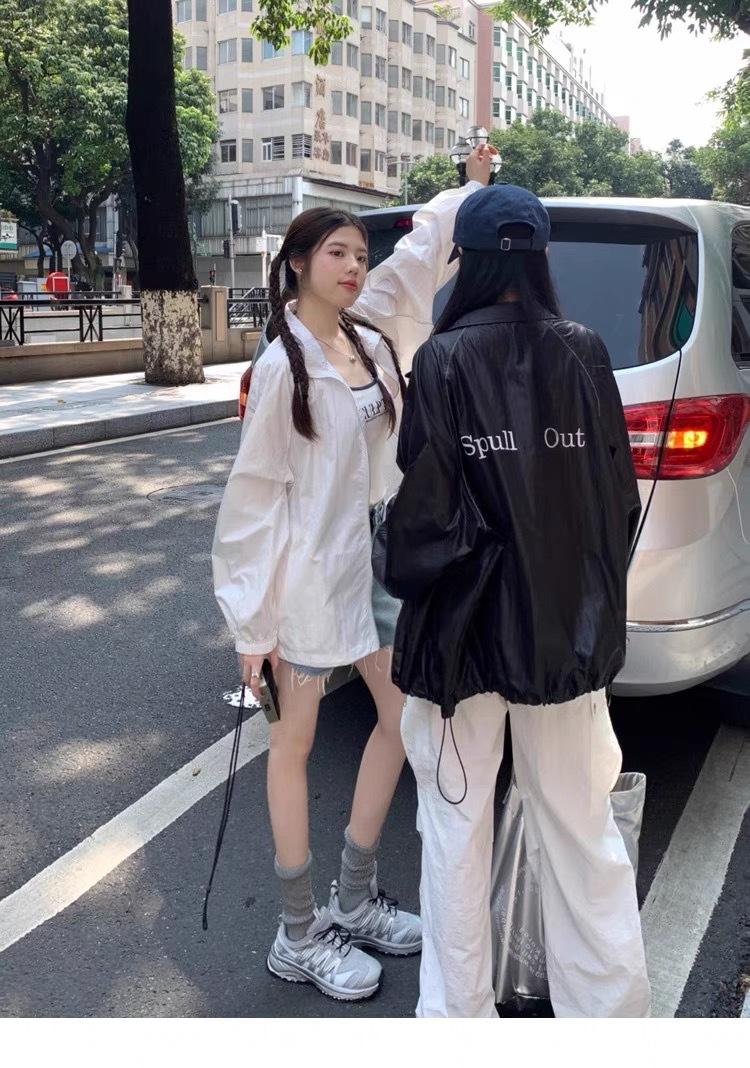 Chaqueta Estilo Coreano Estilo Holgazán Estampado de Letras para Mujer Primavera Casual Suelta Delgada Chaqueta Cárdigan Trendy Protección Solar