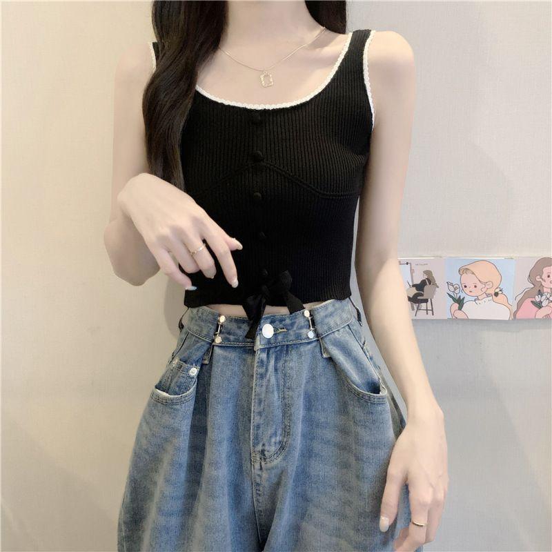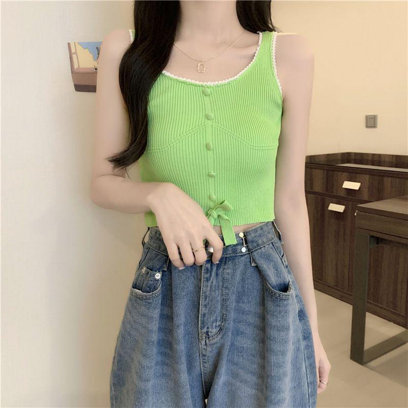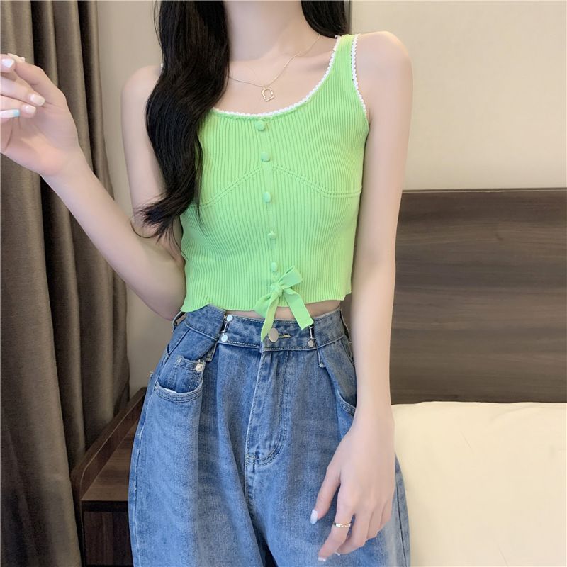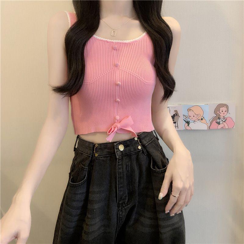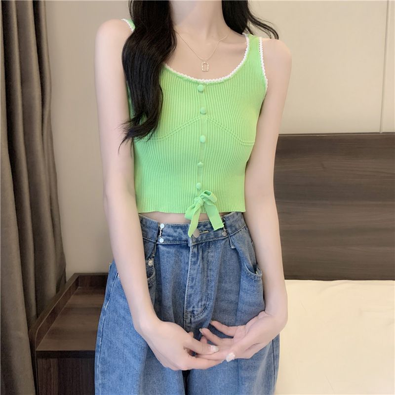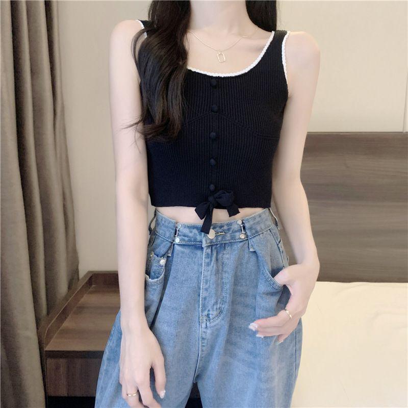 Camisola de punto sin mangas con base interior corta transfronteriza 2024 Nueva prenda exterior adelgazante ajustada que combina con todo