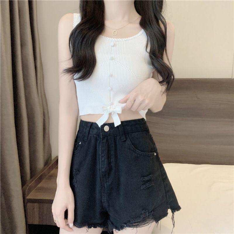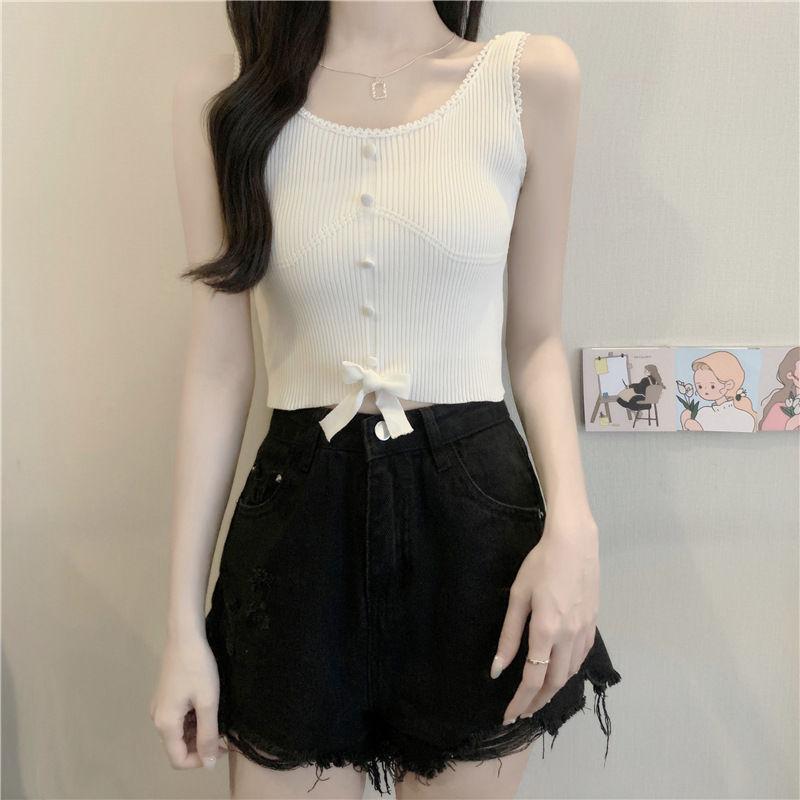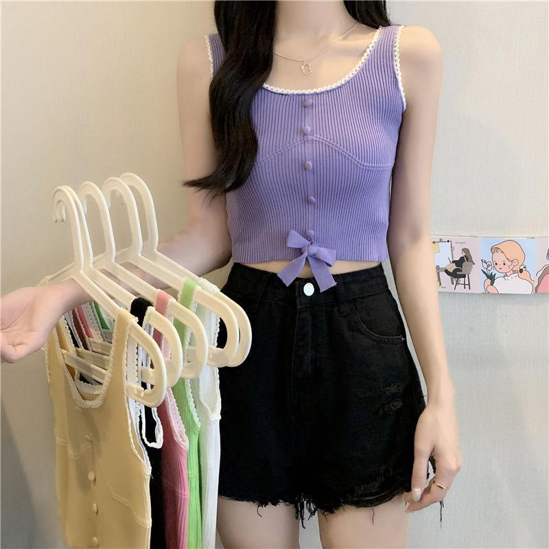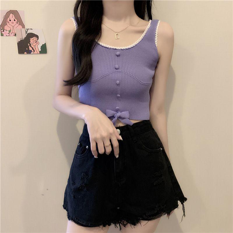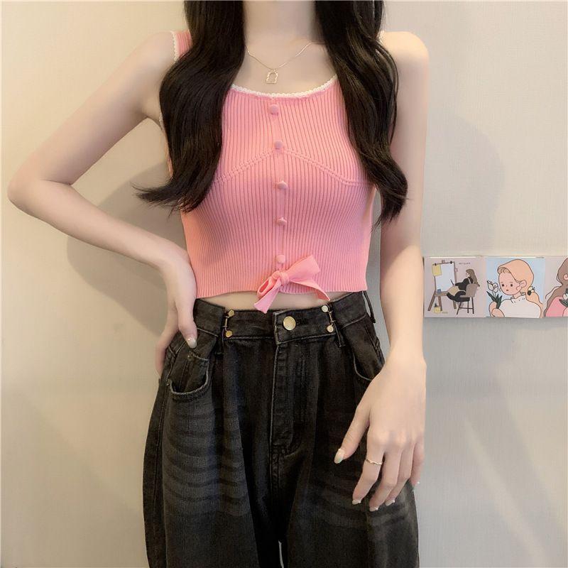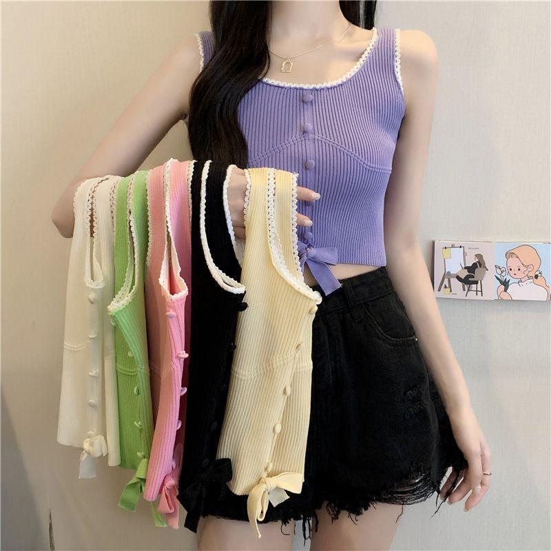 Camisola de punto sin mangas con base interior corta transfronteriza 2024 Nueva prenda exterior adelgazante ajustada que combina con todo