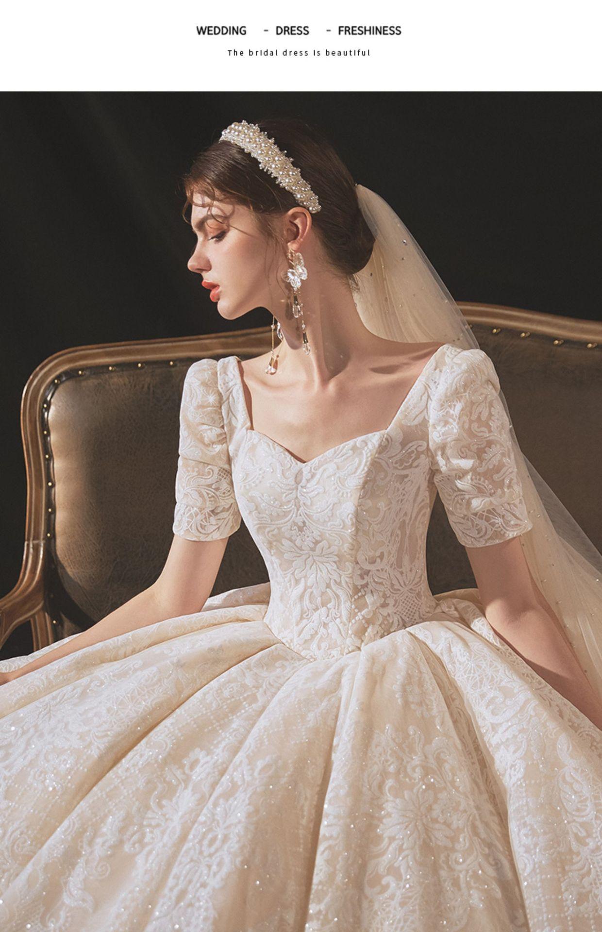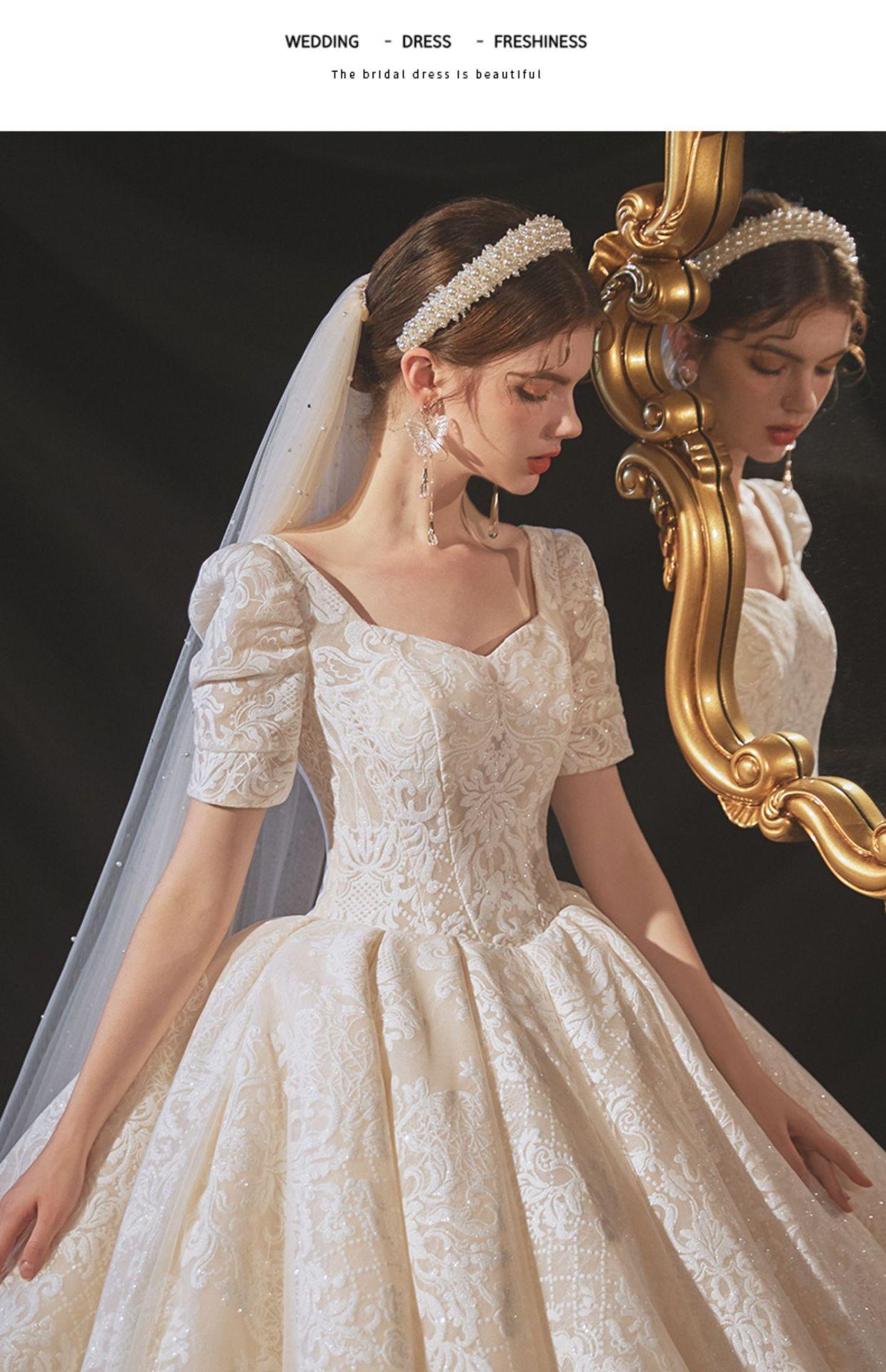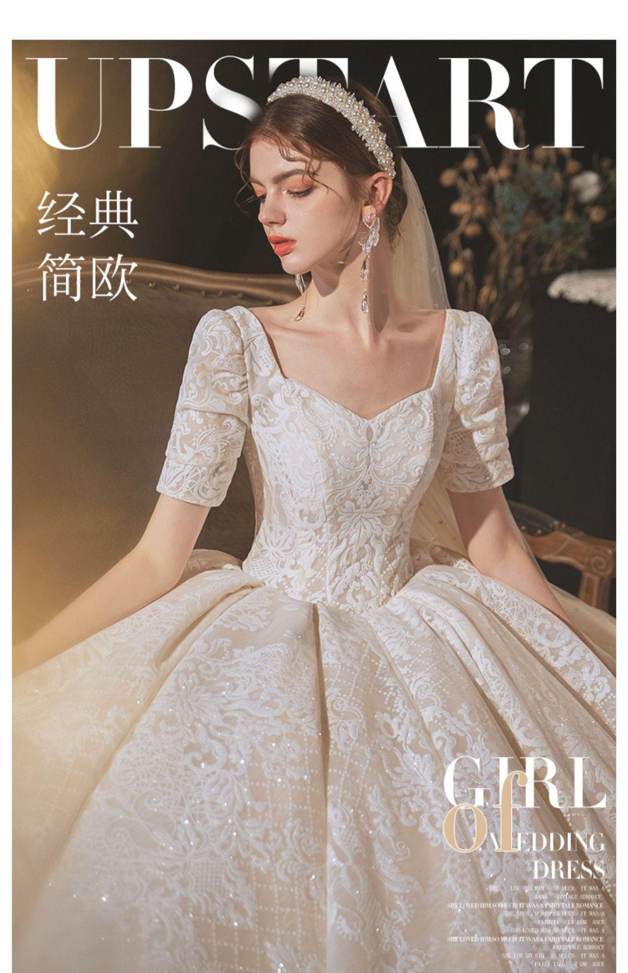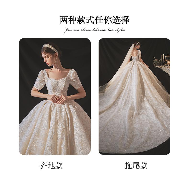 Vestido de Novia Principal 2025 Nuevo Cola Elegante Palacio Pequeña Novia Blanco Retro Textura Retro Salida Velo