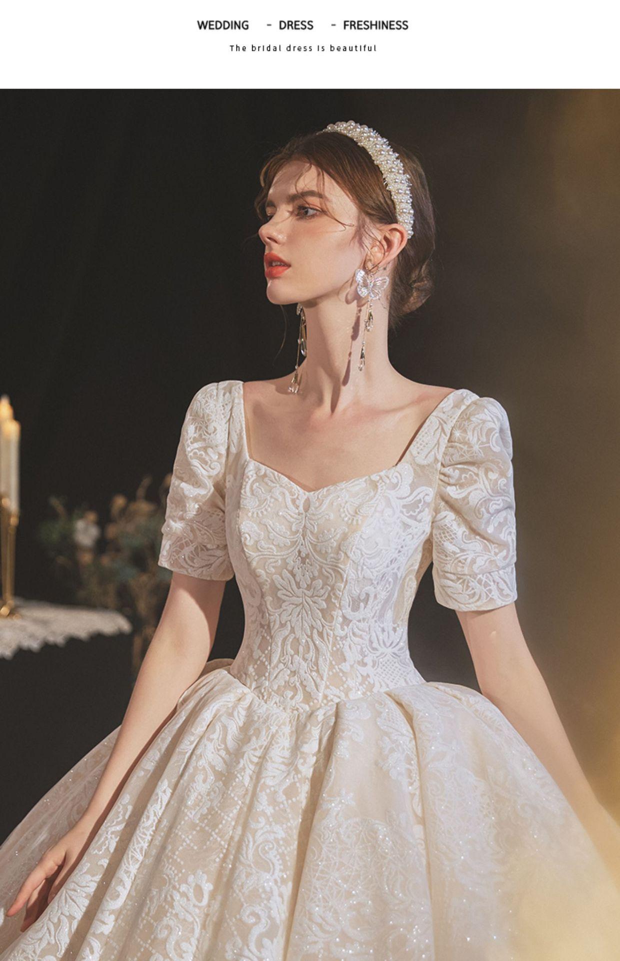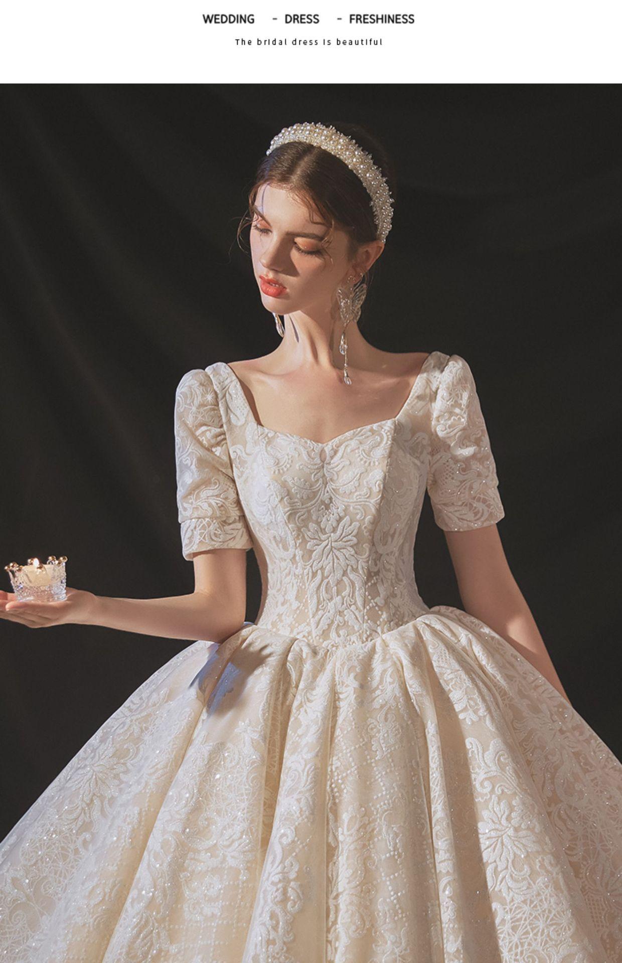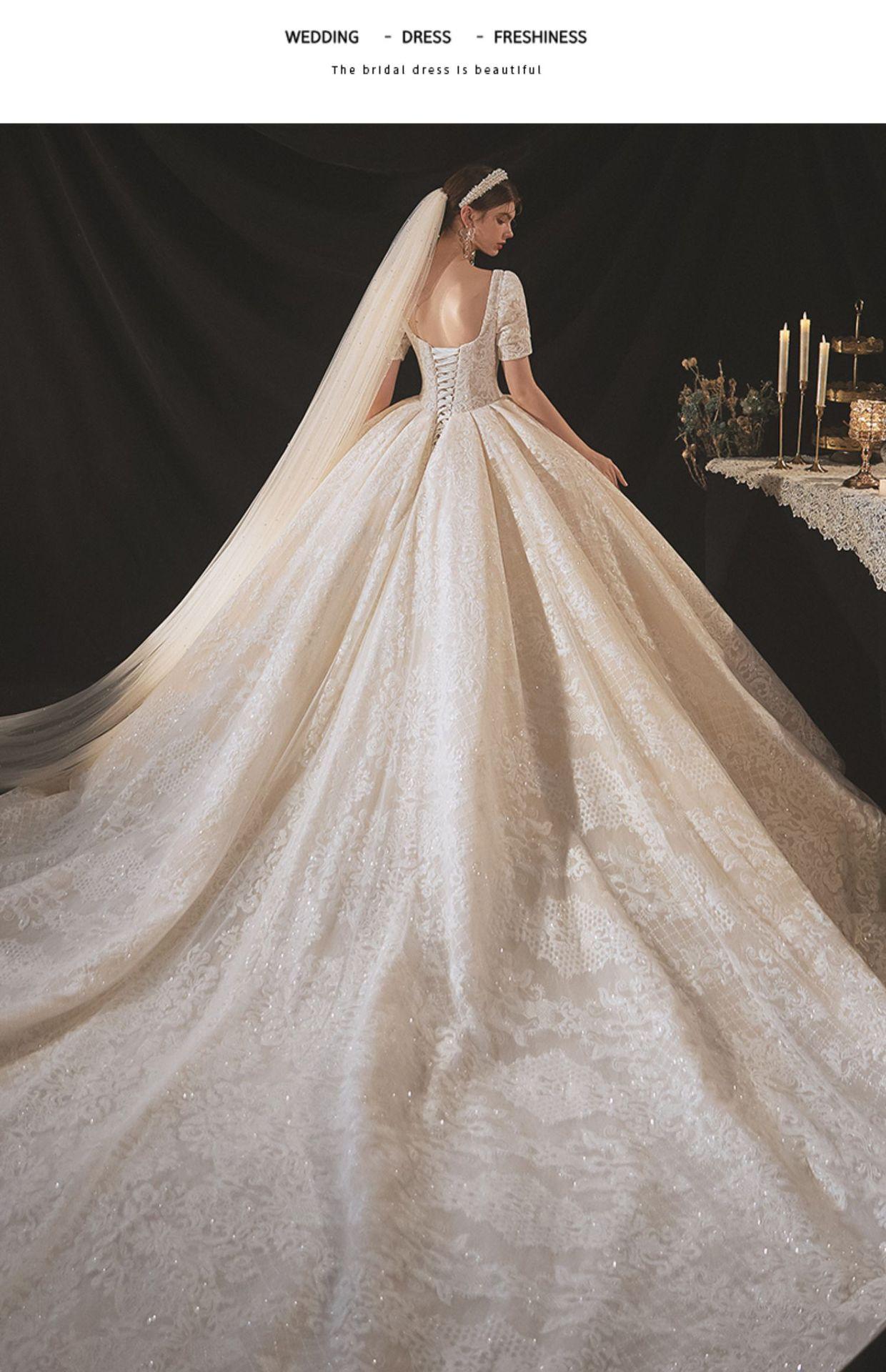 Vestido de Novia Principal 2025 Nuevo Cola Elegante Palacio Pequeña Novia Blanco Retro Textura Retro Salida Velo