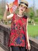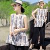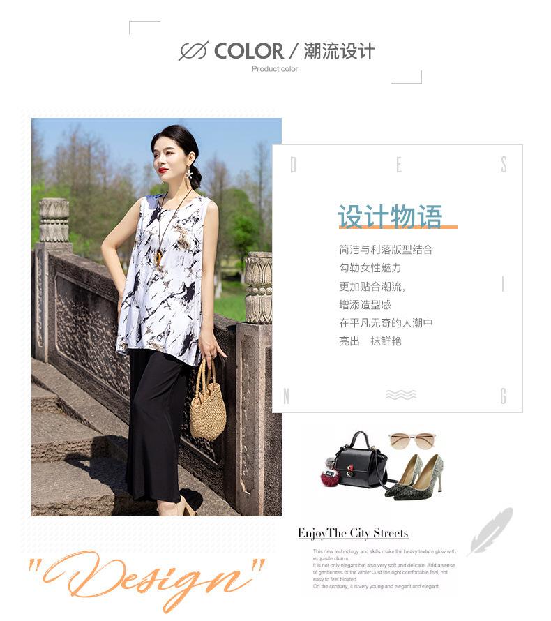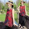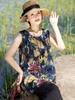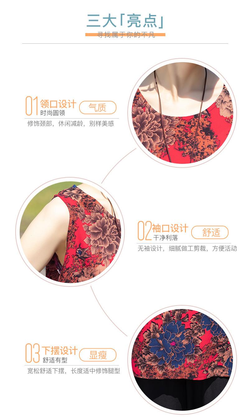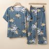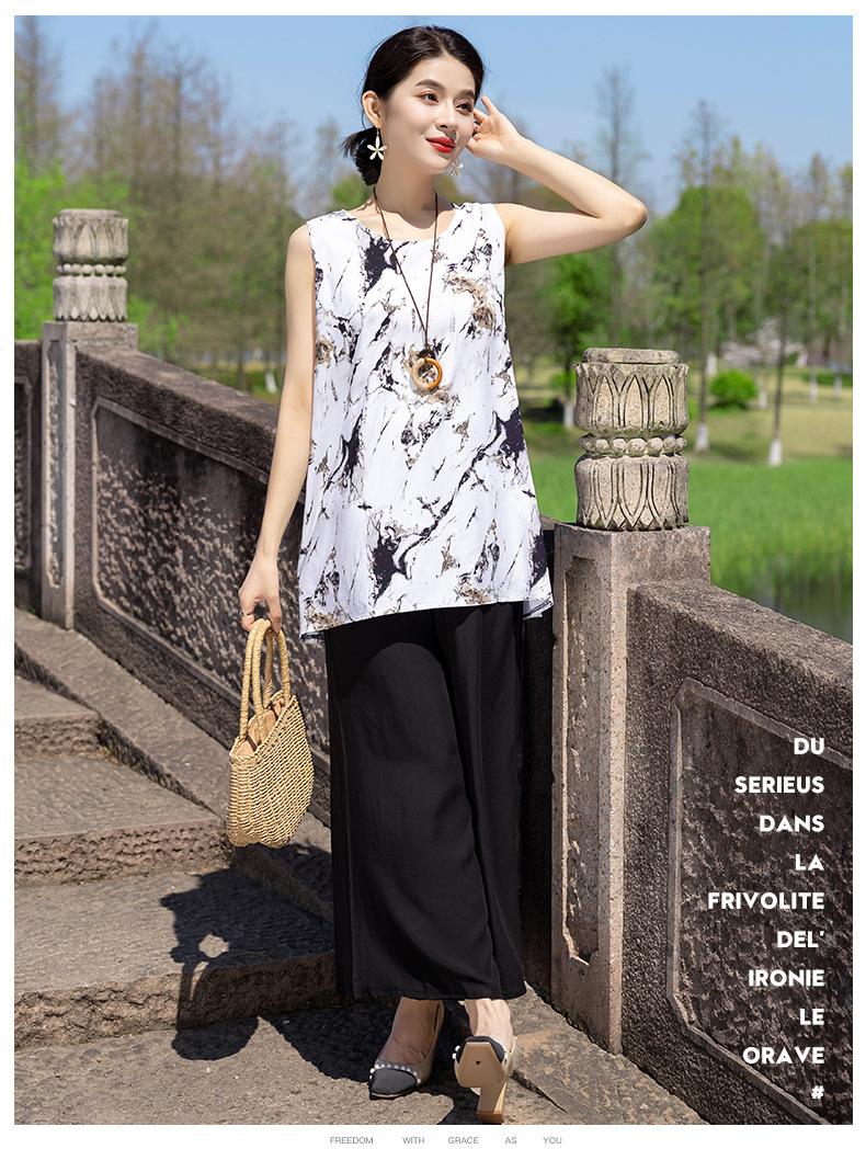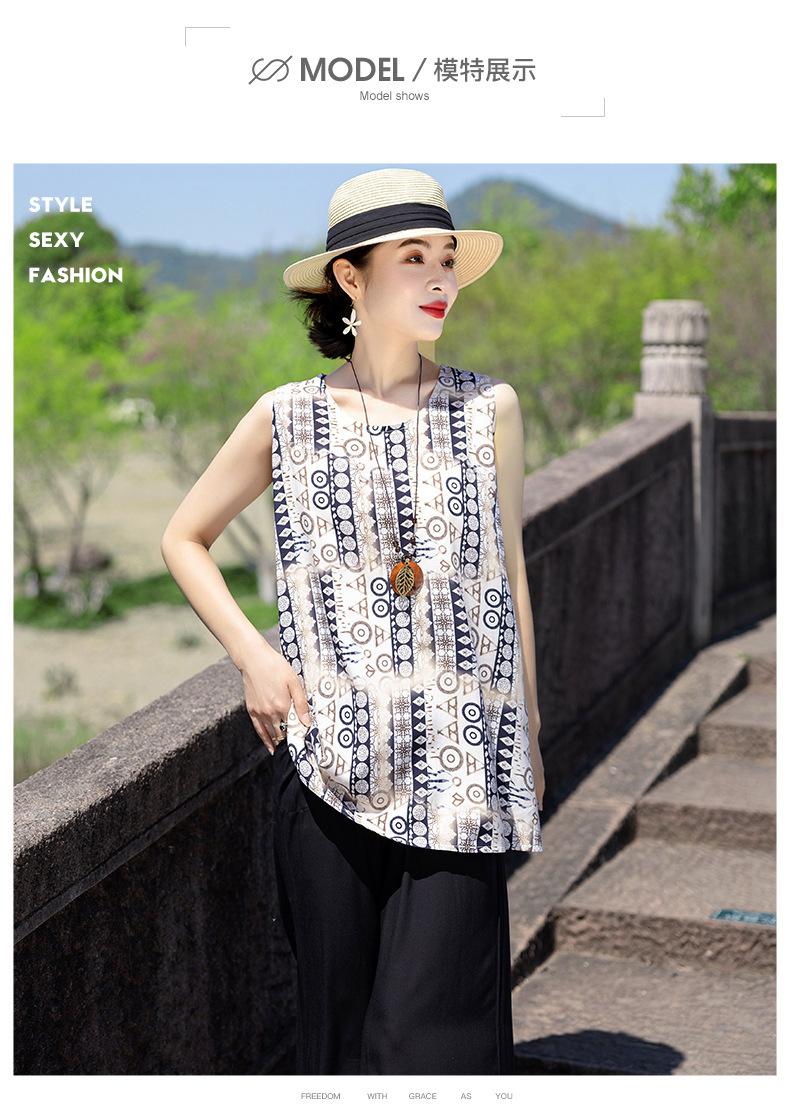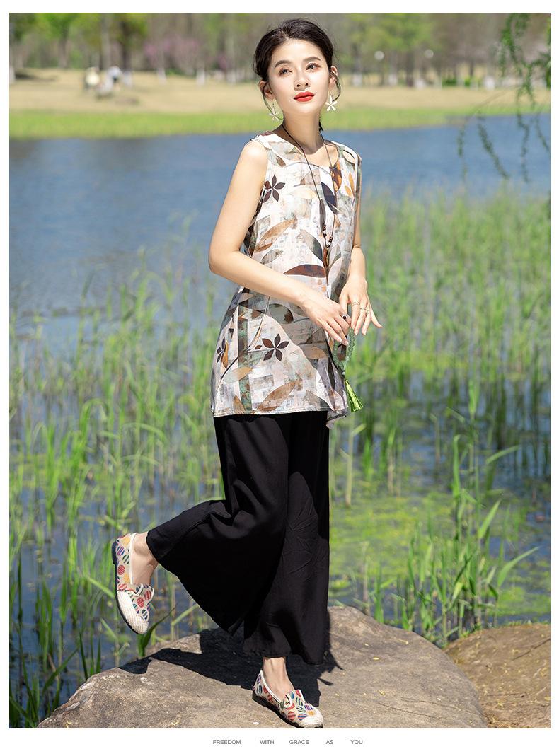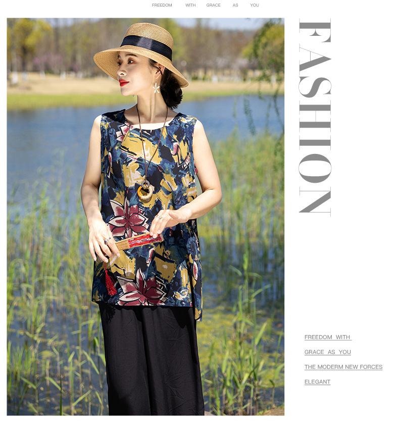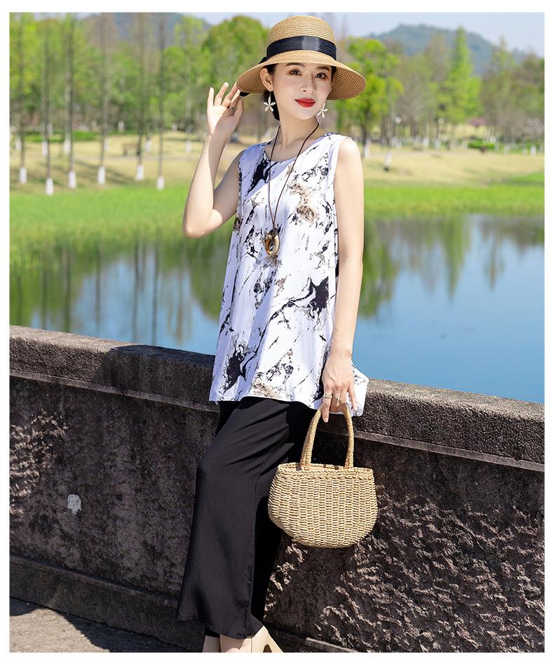 Traje Elegante de Estilo Nacional Floral de Algodón Seda para Mujer, Pijama de Verano para Exterior, Sin Mangas, Pantalones, Ropa de Casa Holgada para Madres de Mediana Edad y Ancianas