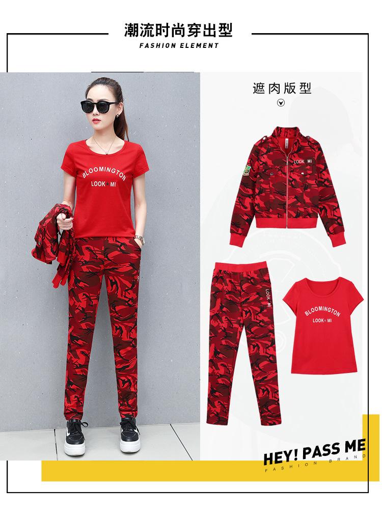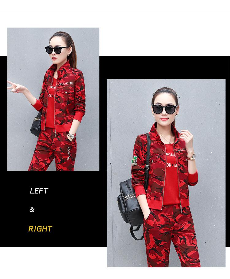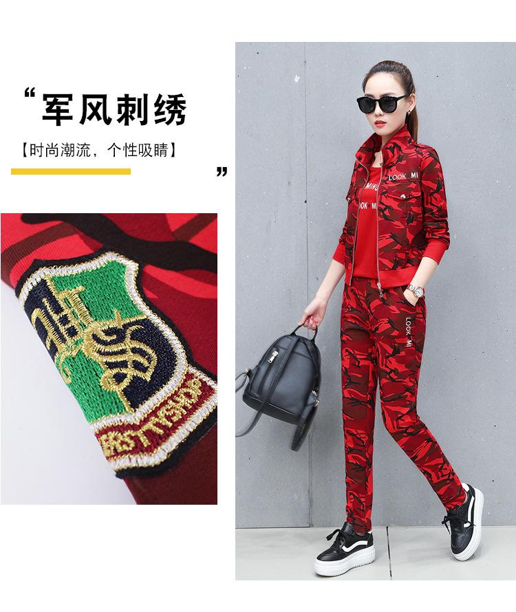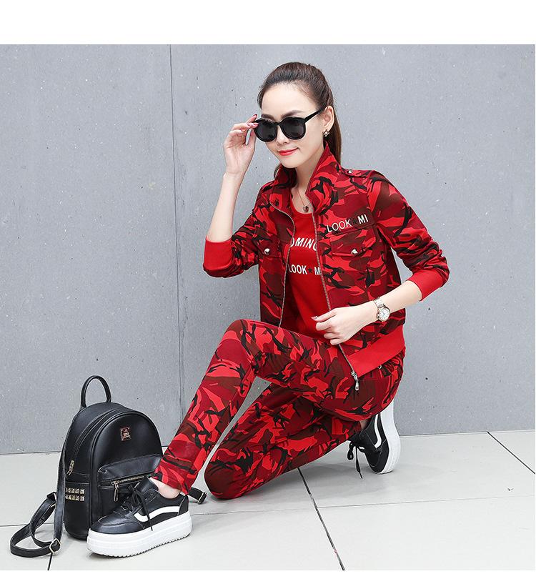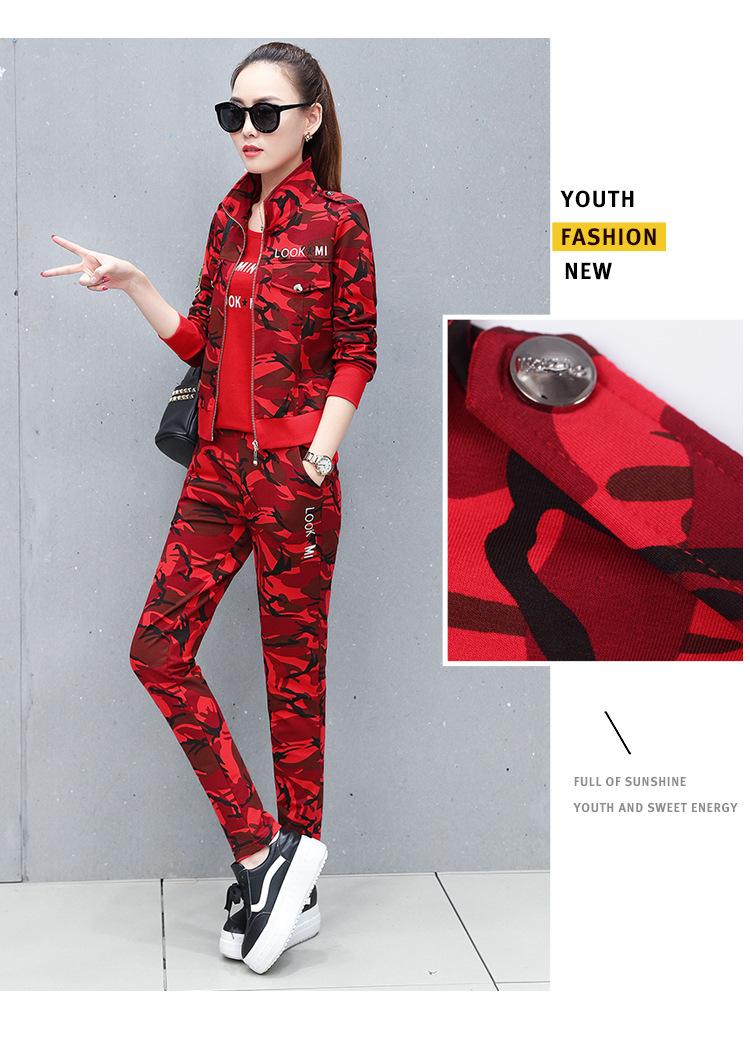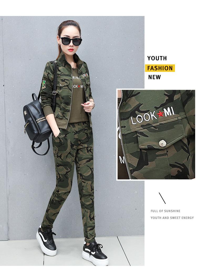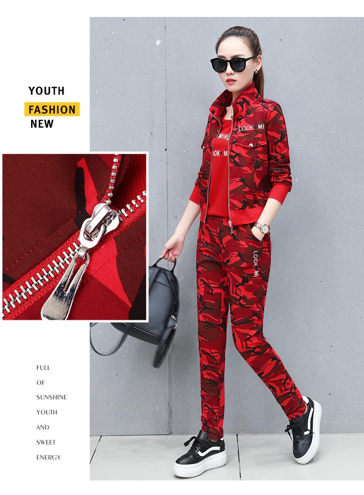 Traje Deportivo Casual Nuevo de Primavera y Otoño 2022 para Mujer, Moda Trendy Elegante Camuflaje de Tres Piezas, Traje para Compra en Grupo