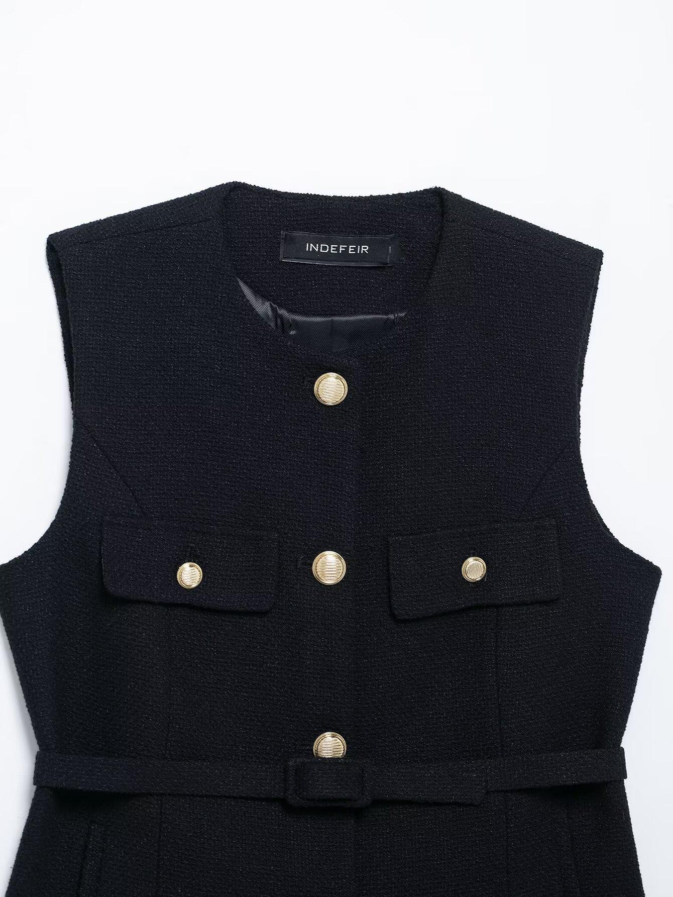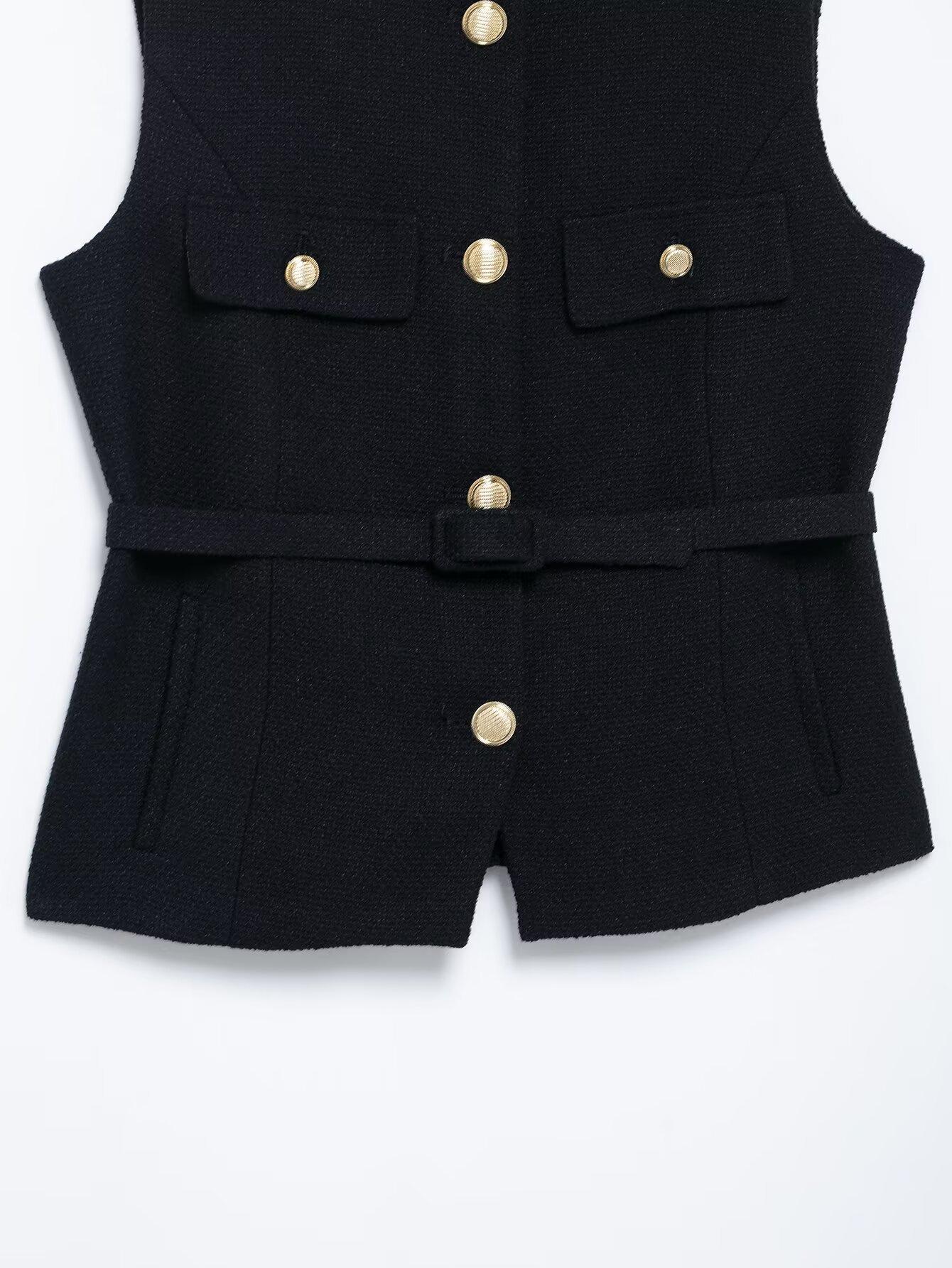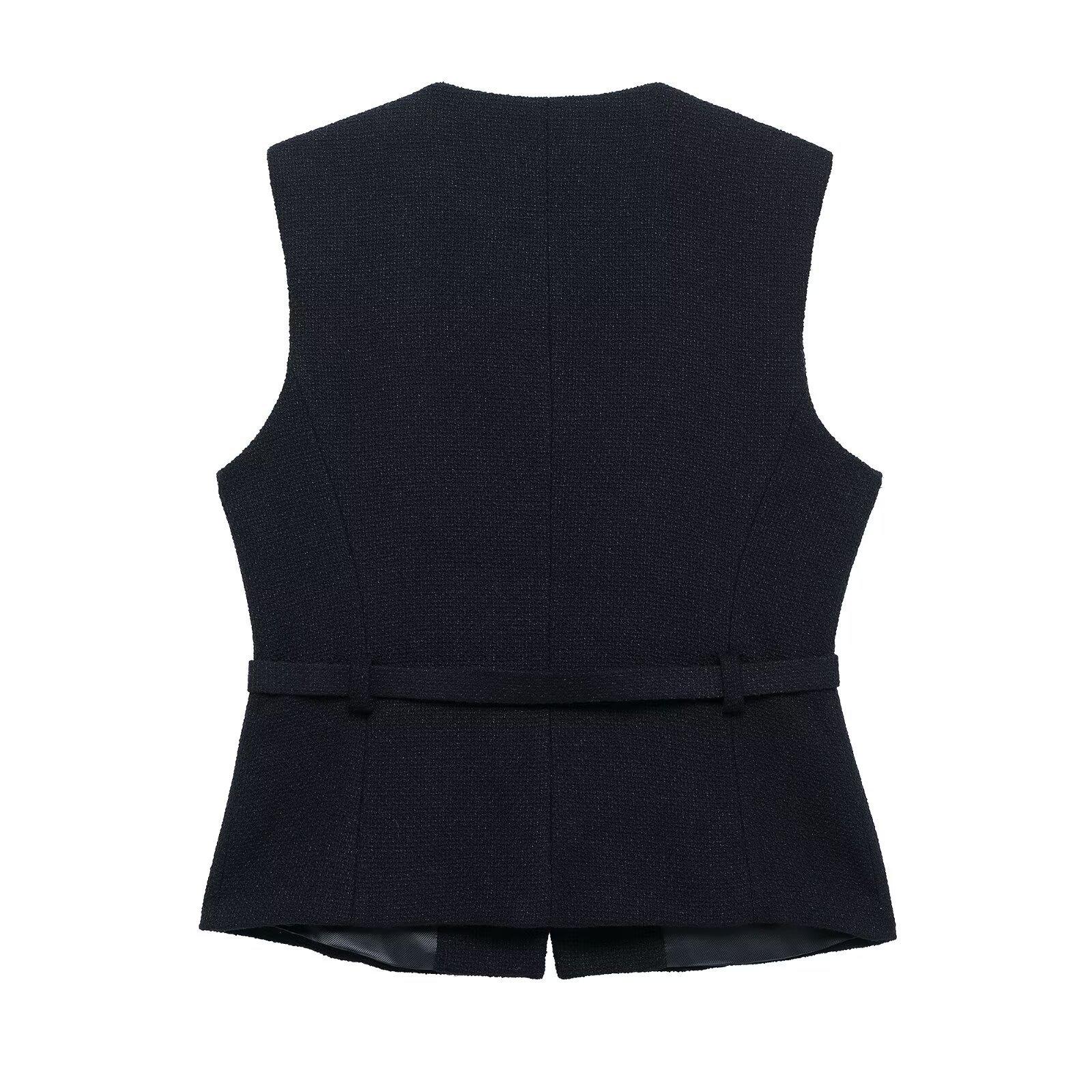 Primavera 2025 Europeo, Americano, Europeo y Americano Transfronterizo Ropa de Mujer Moda Urbana Chaleco con Textura de Cinturón Elegante 85 2205