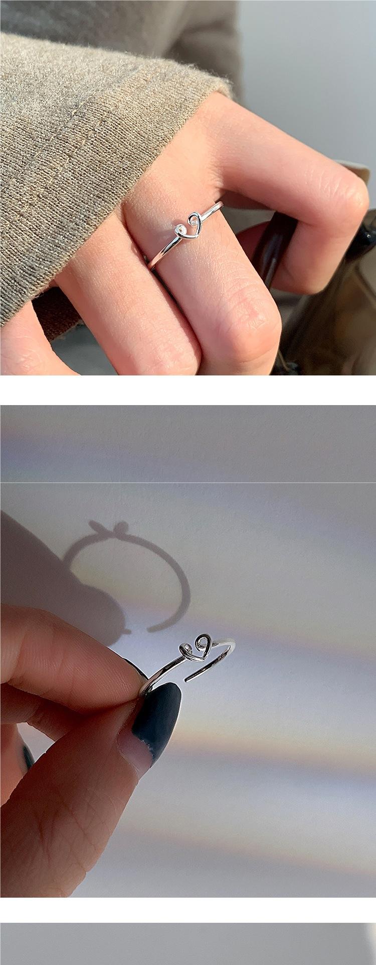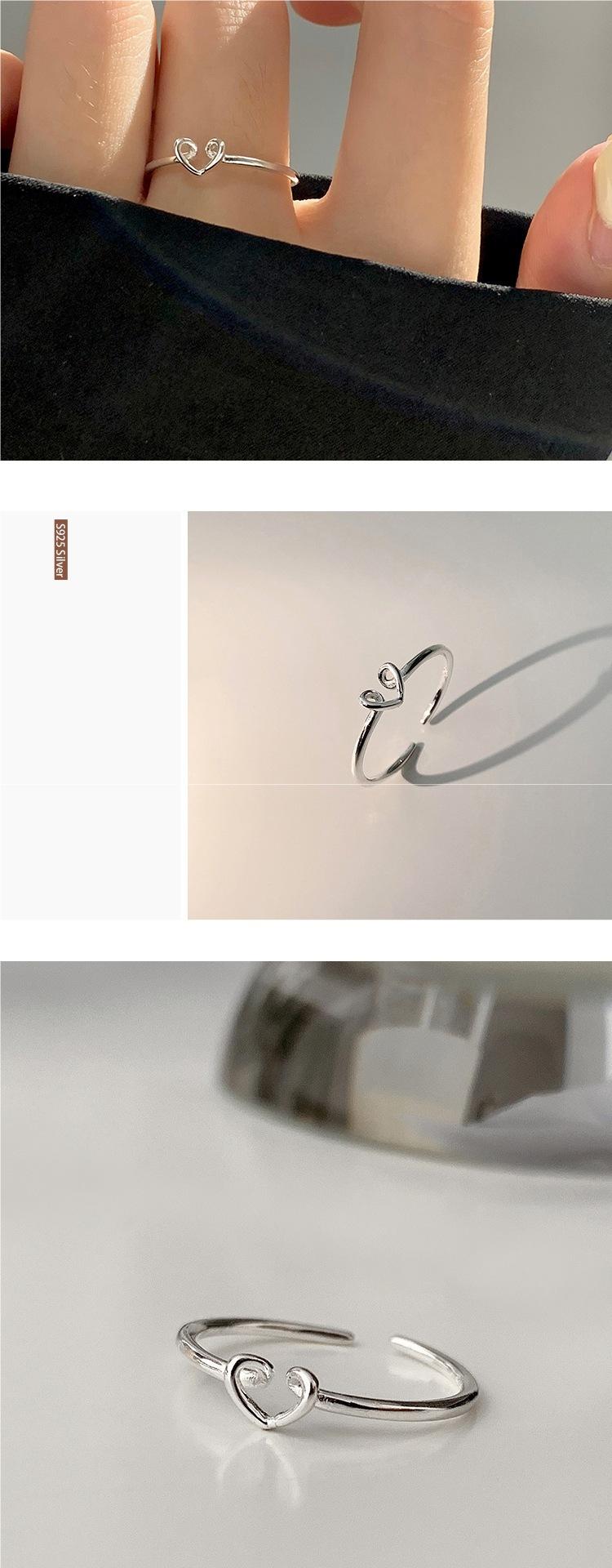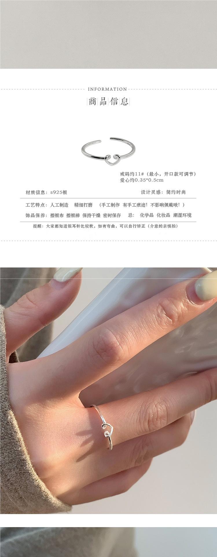 Anillo de Amor Simple de Plata S925 Estilo Coreano para Mujer Moda Retro Viento Frío Corazón de Durazno Anillo Abierto Anillo Artístico para Dedo