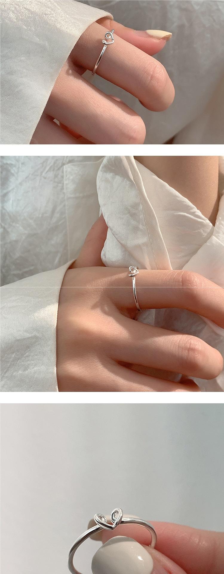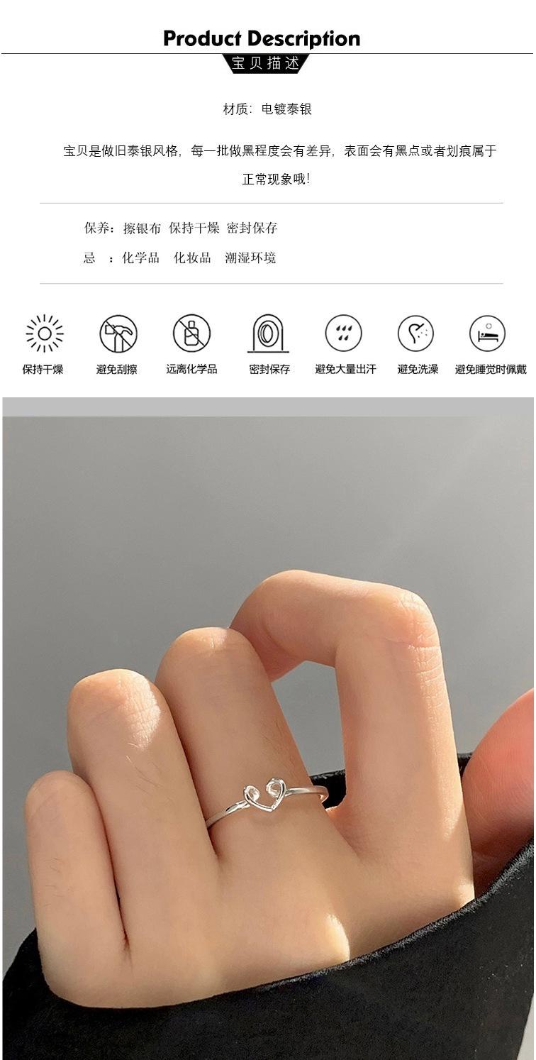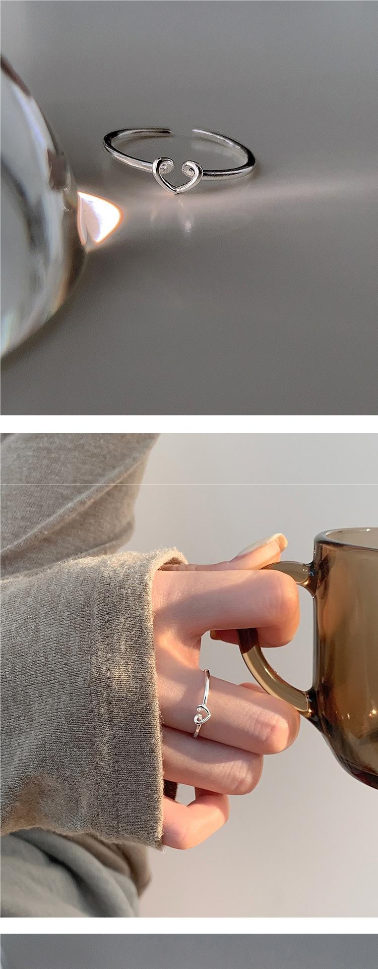 Anillo de Amor Simple de Plata S925 Estilo Coreano para Mujer Moda Retro Viento Frío Corazón de Durazno Anillo Abierto Anillo Artístico para Dedo