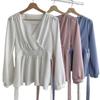 Camisa de manga larga con cordones y cintura ajustada, elegante, con escote en V, para primavera y otoño de 2025