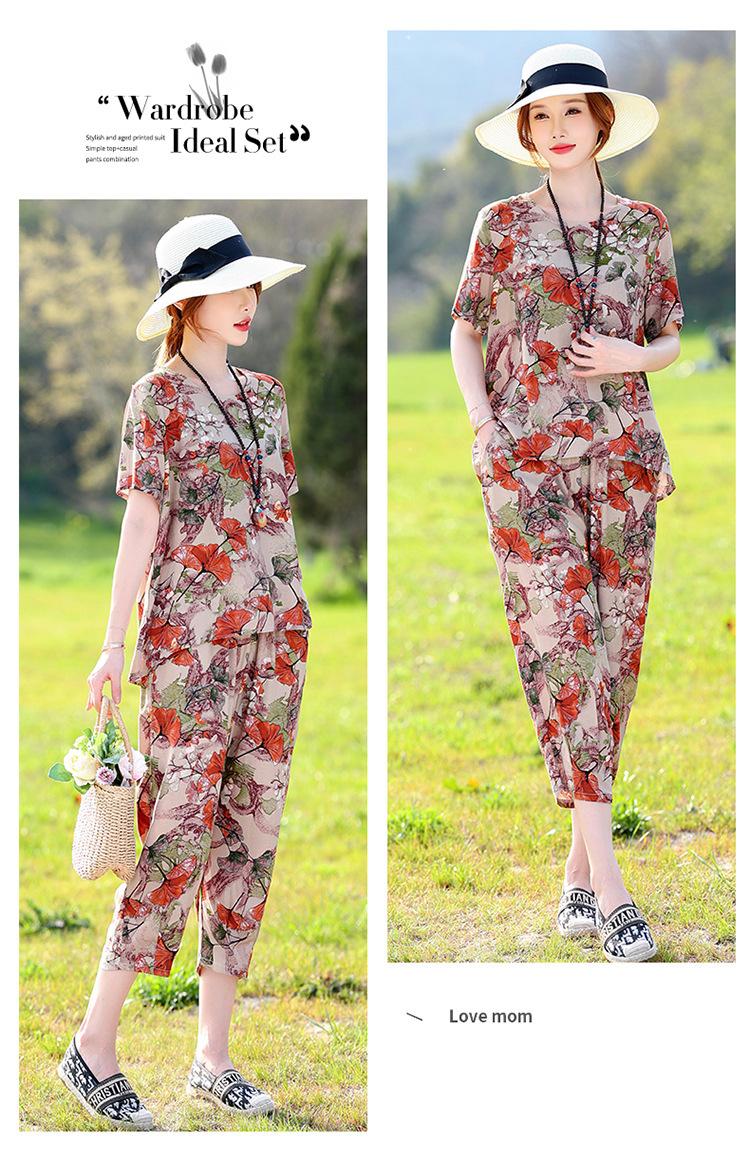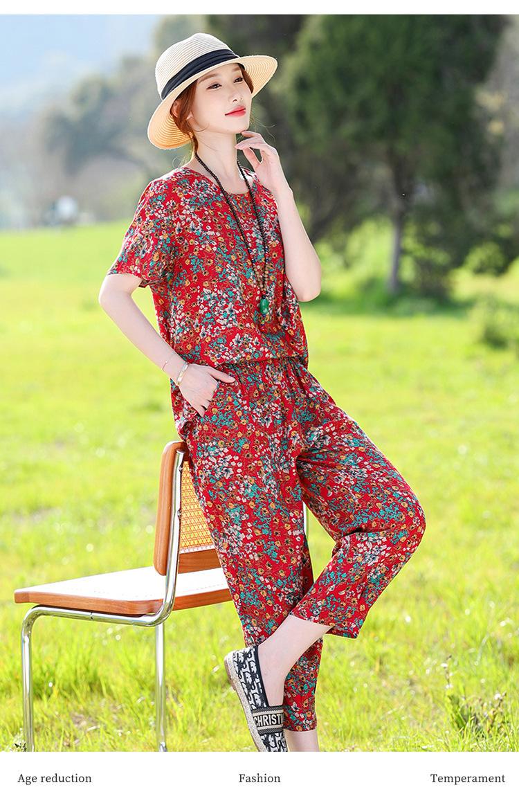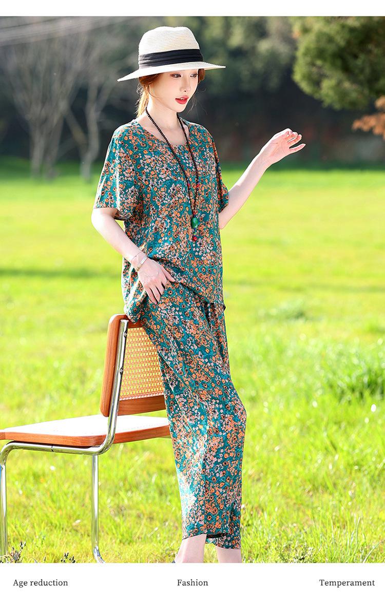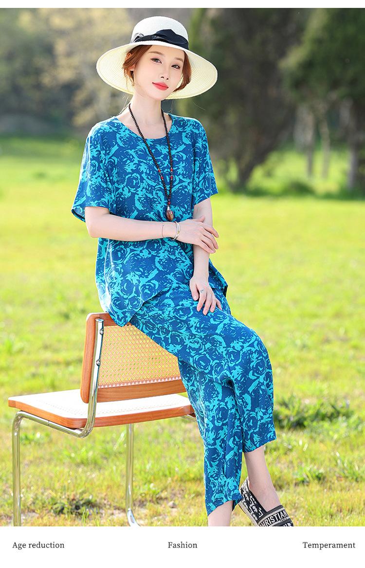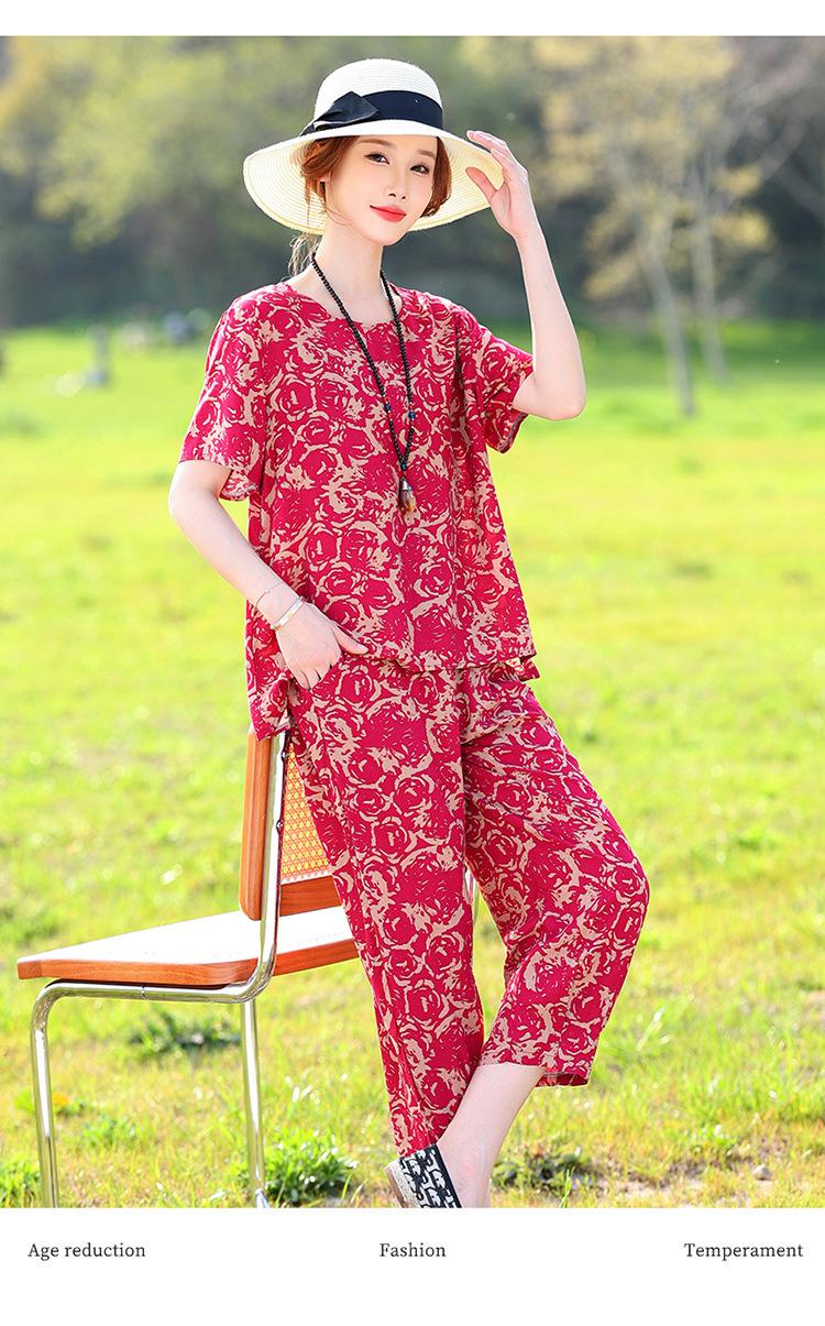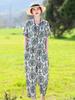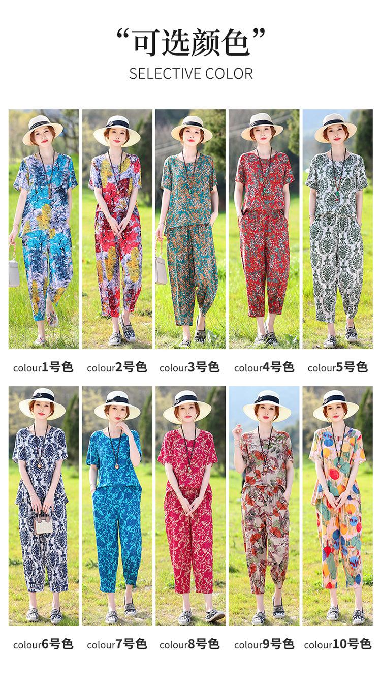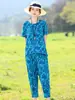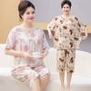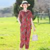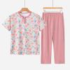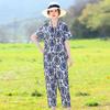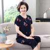 Traje de Algodón Seda para Personas de Mediana Edad y Mayores Camisa de Verano Fina para Aire Acondicionado Ropa para el Hogar de Manga Corta para Madre Traje de Dos Piezas Ropa Exterior