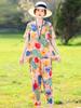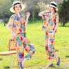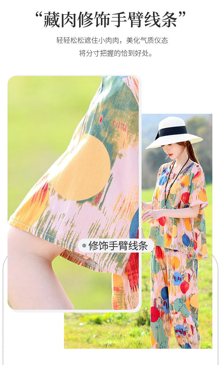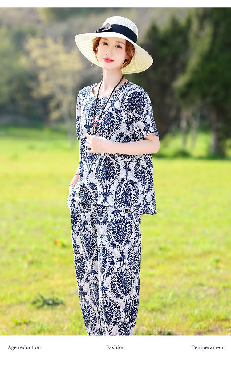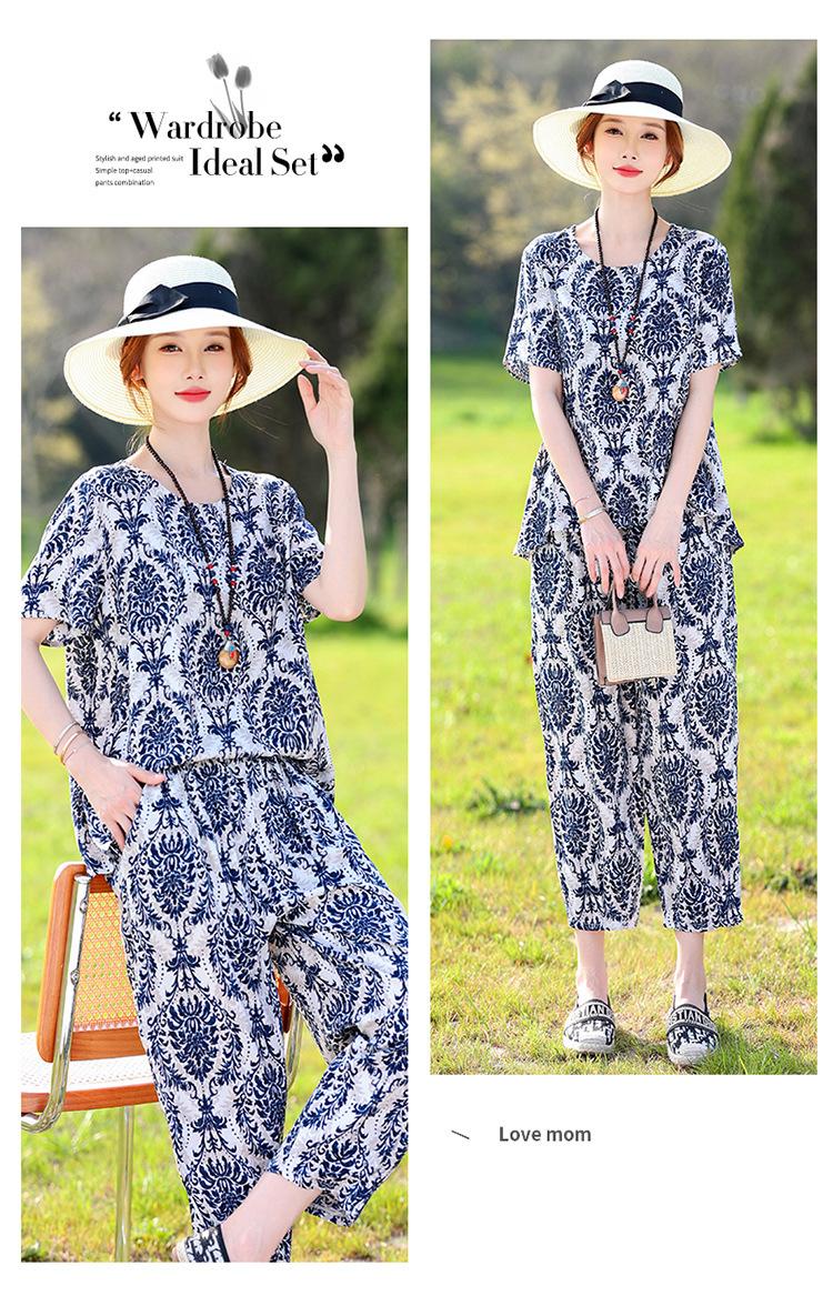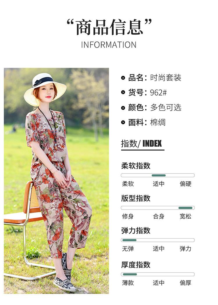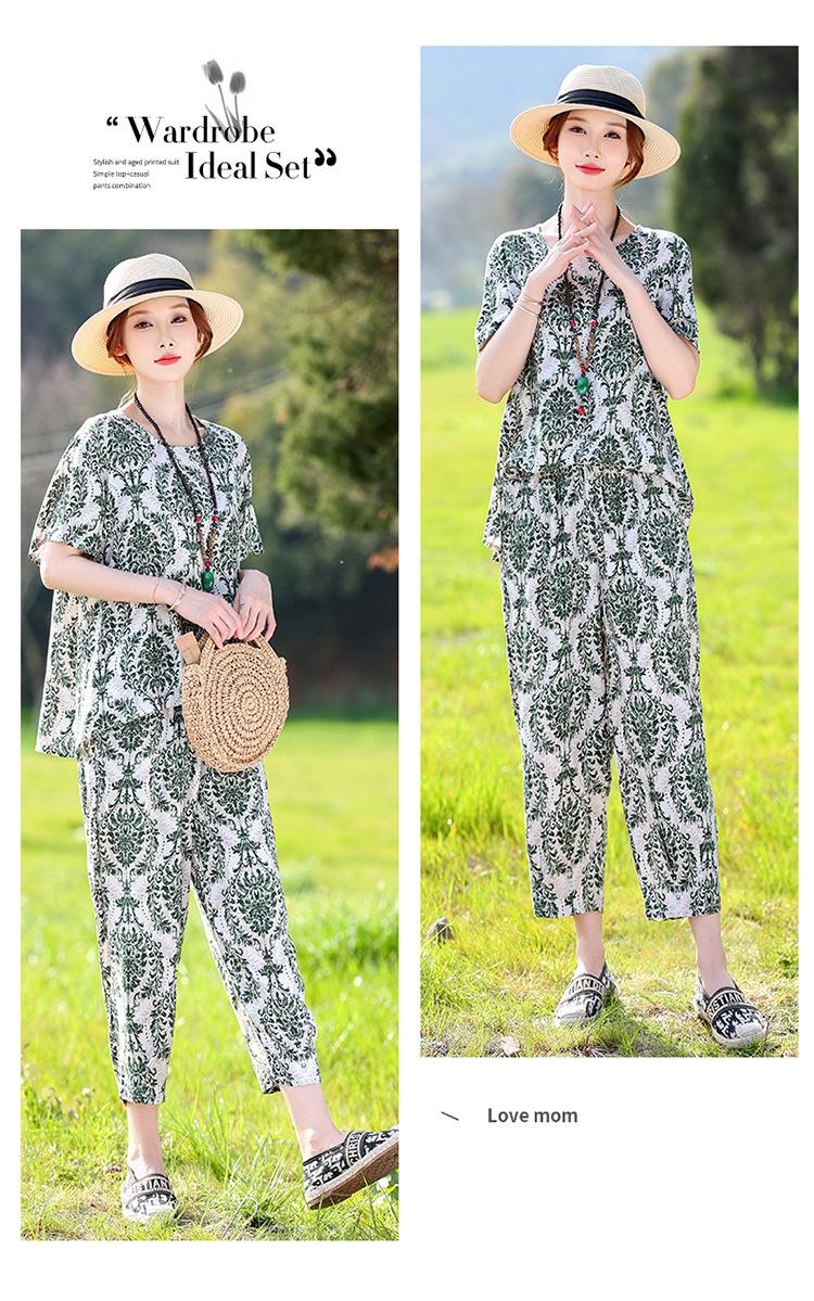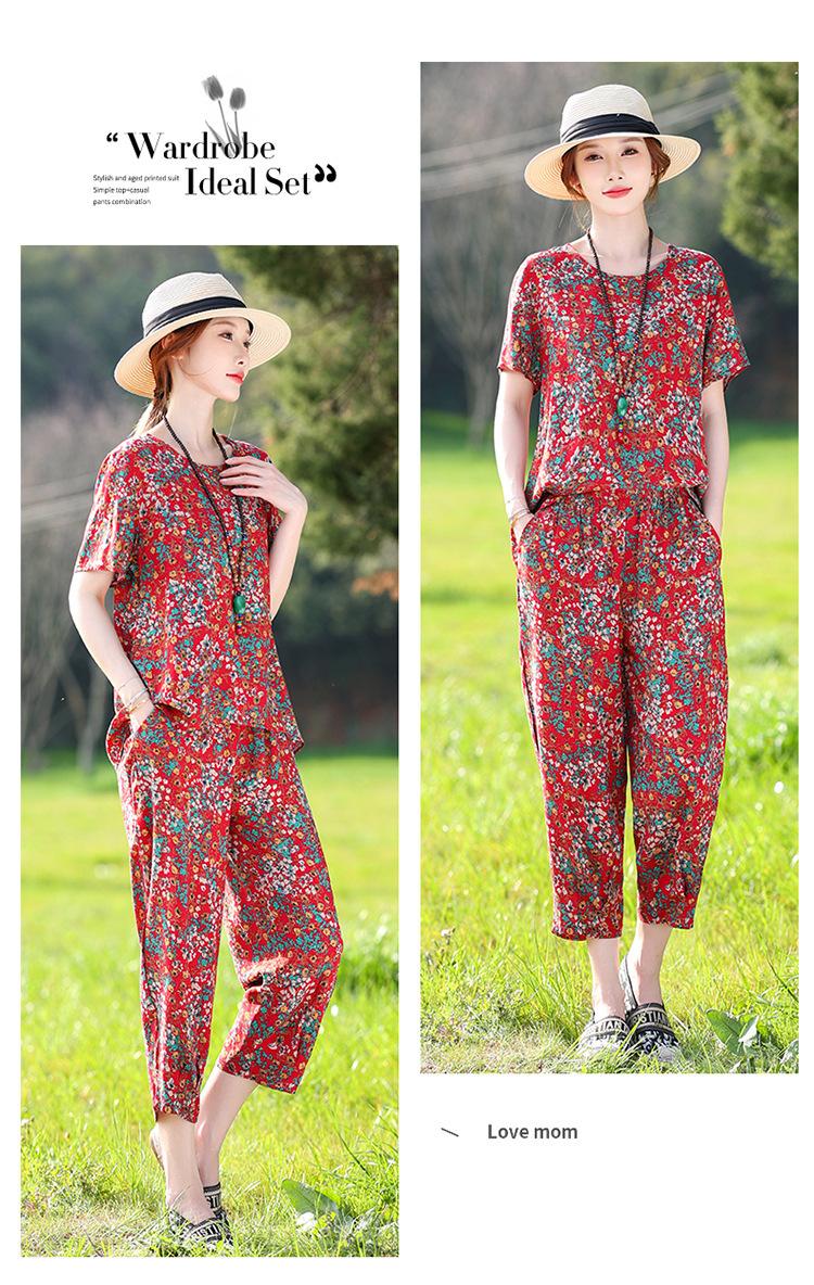 Traje de Algodón Seda para Personas de Mediana Edad y Mayores Camisa de Verano Fina para Aire Acondicionado Ropa para el Hogar de Manga Corta para Madre Traje de Dos Piezas Ropa Exterior