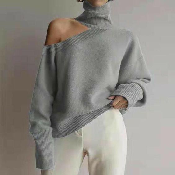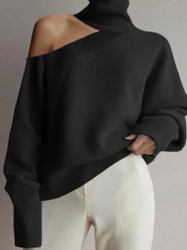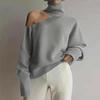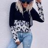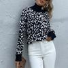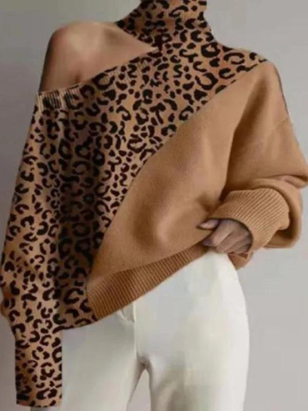 Wish Talla Grande Europea y Americana Transfronteriza Otoño e Invierno Nuevo Top de Manga Larga con Estampado de Leopardo para Mujer con Cuello Alto y Hombro Irregular