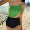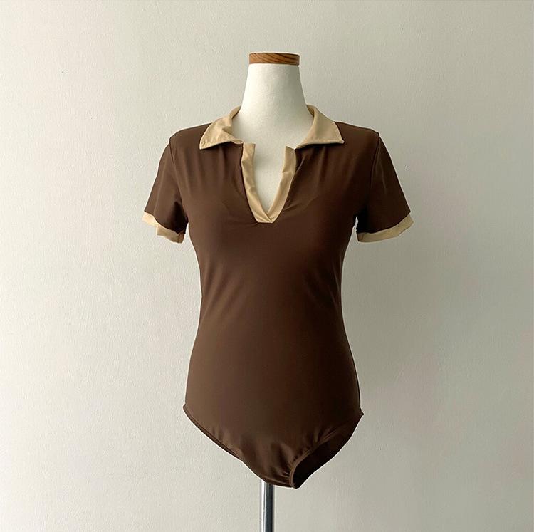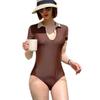 Traje de baño nuevo de triángulo de una pieza de manga corta para mujer que cubre el vientre, adelgazante, para vacaciones en la playa, aguas termales [entrega de una pieza]