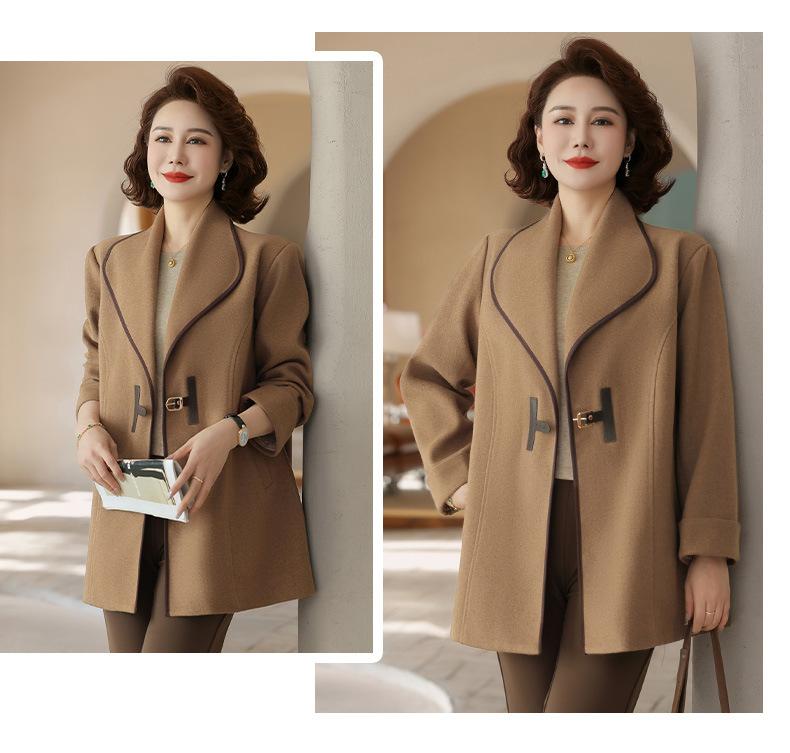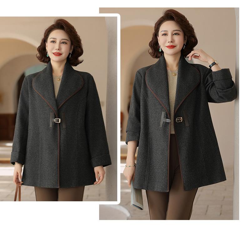 Abrigo de Lana de Madre Otoño e Invierno 2025 Ropa Nueva de Otoño Abrigo de Lana Noble de Estilo Occidental de Primavera para Mujeres de Mediana Edad y Ancianas