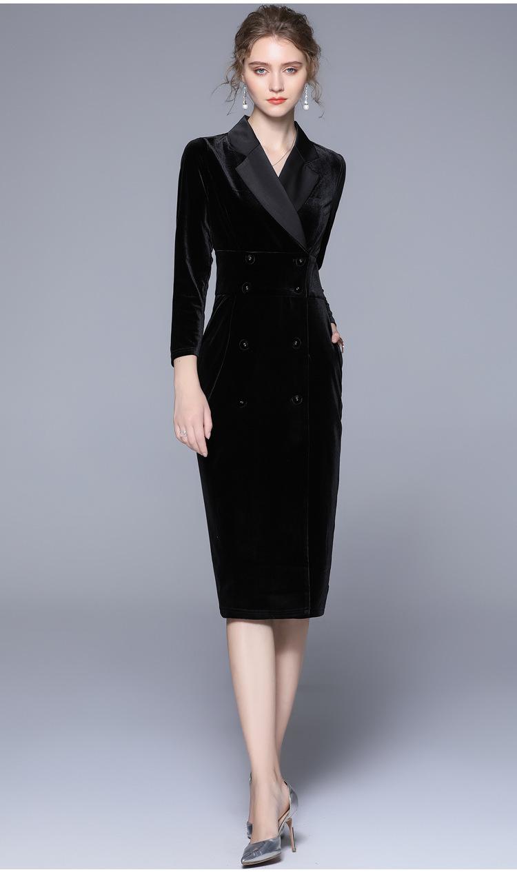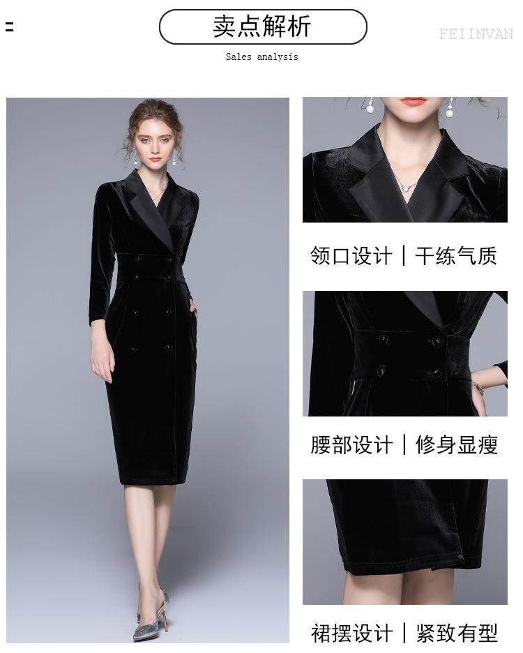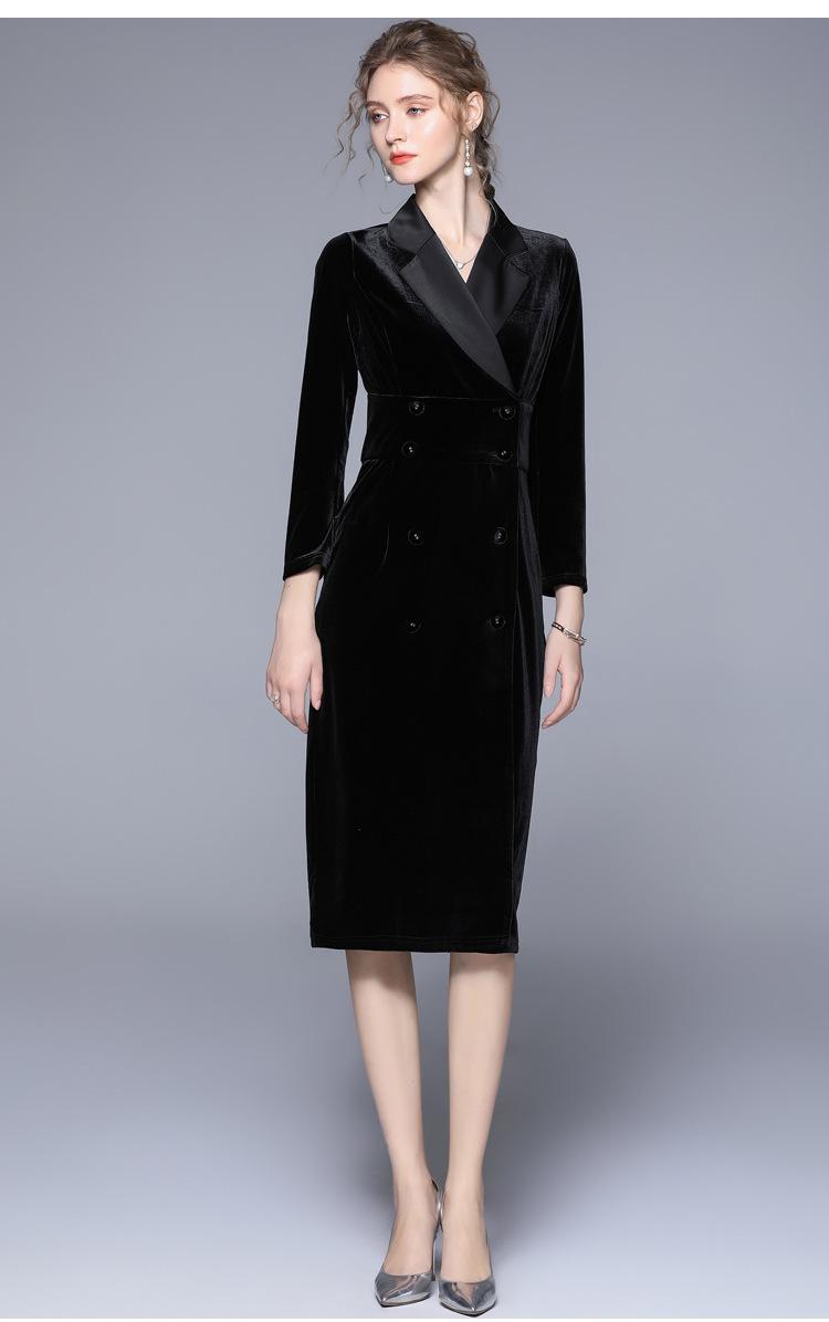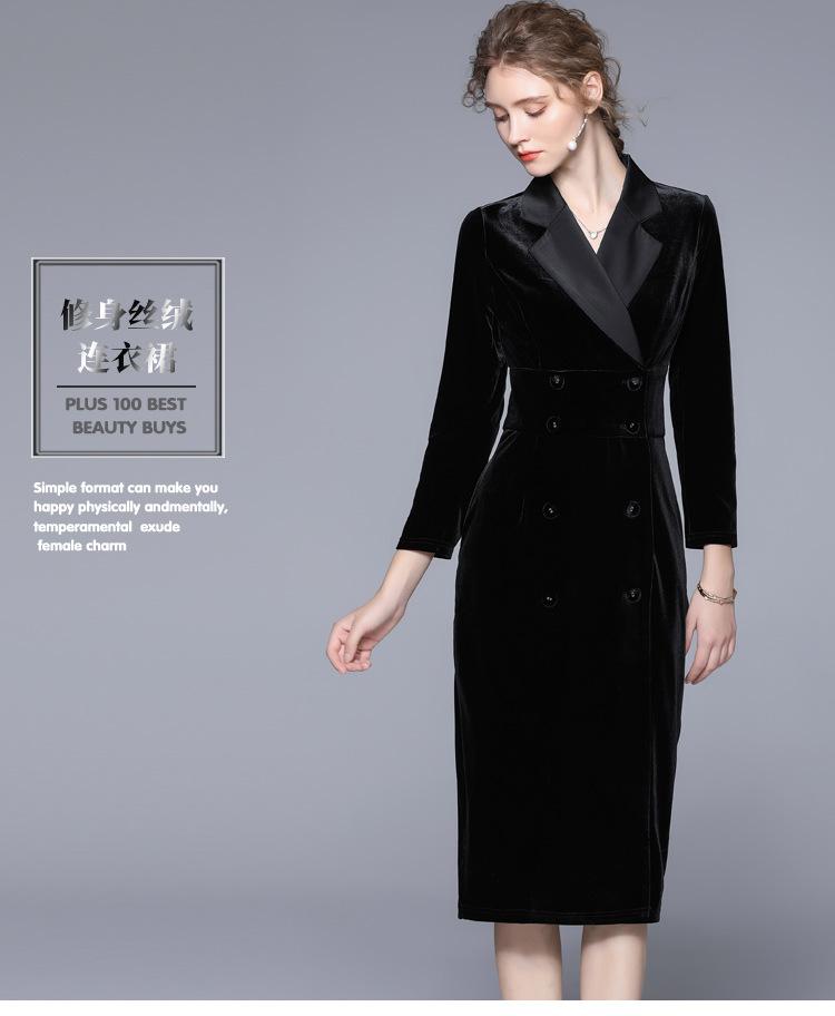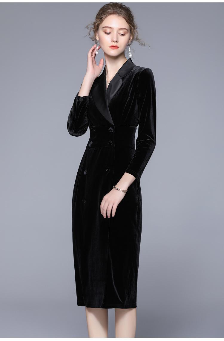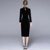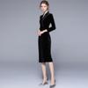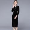 Vestido Hepburn Francés Negro Cuello en V Terciopelo Dorado Otoño Elegante Vestido Largo Vestido Base con Falda Interior