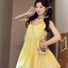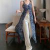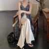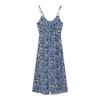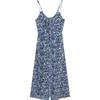Vestido dulce de chica guapa azul retro elegante vestido con abertura floral francés cuello en V tirantes vestido de verano para mujer