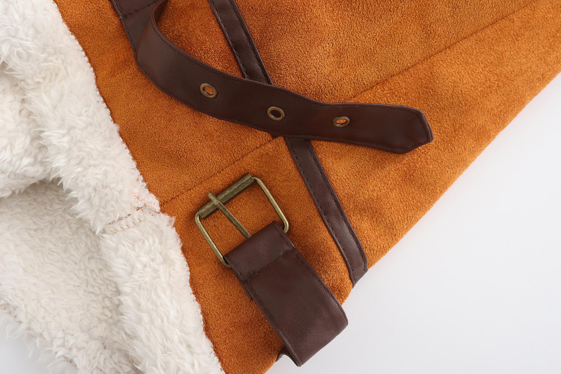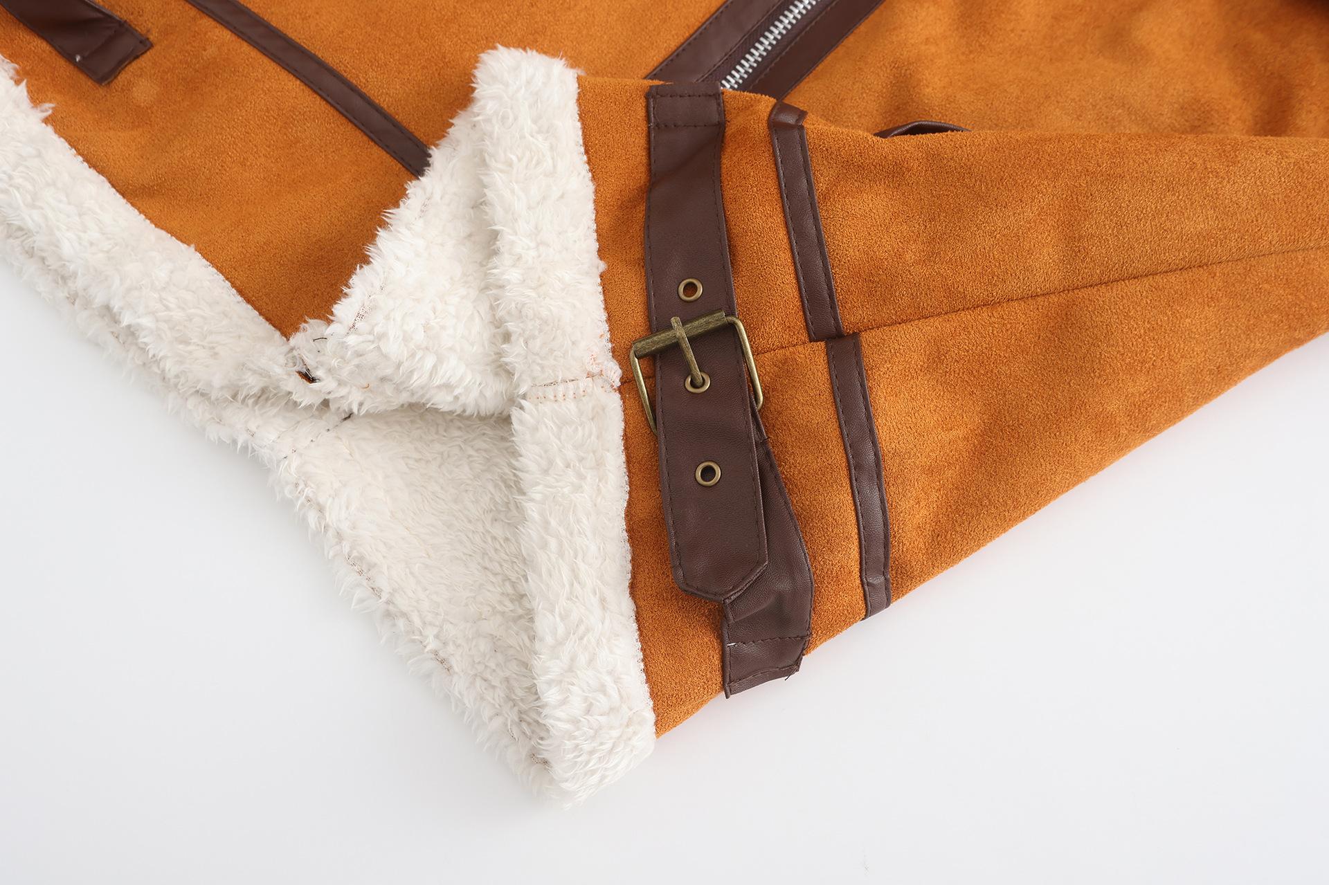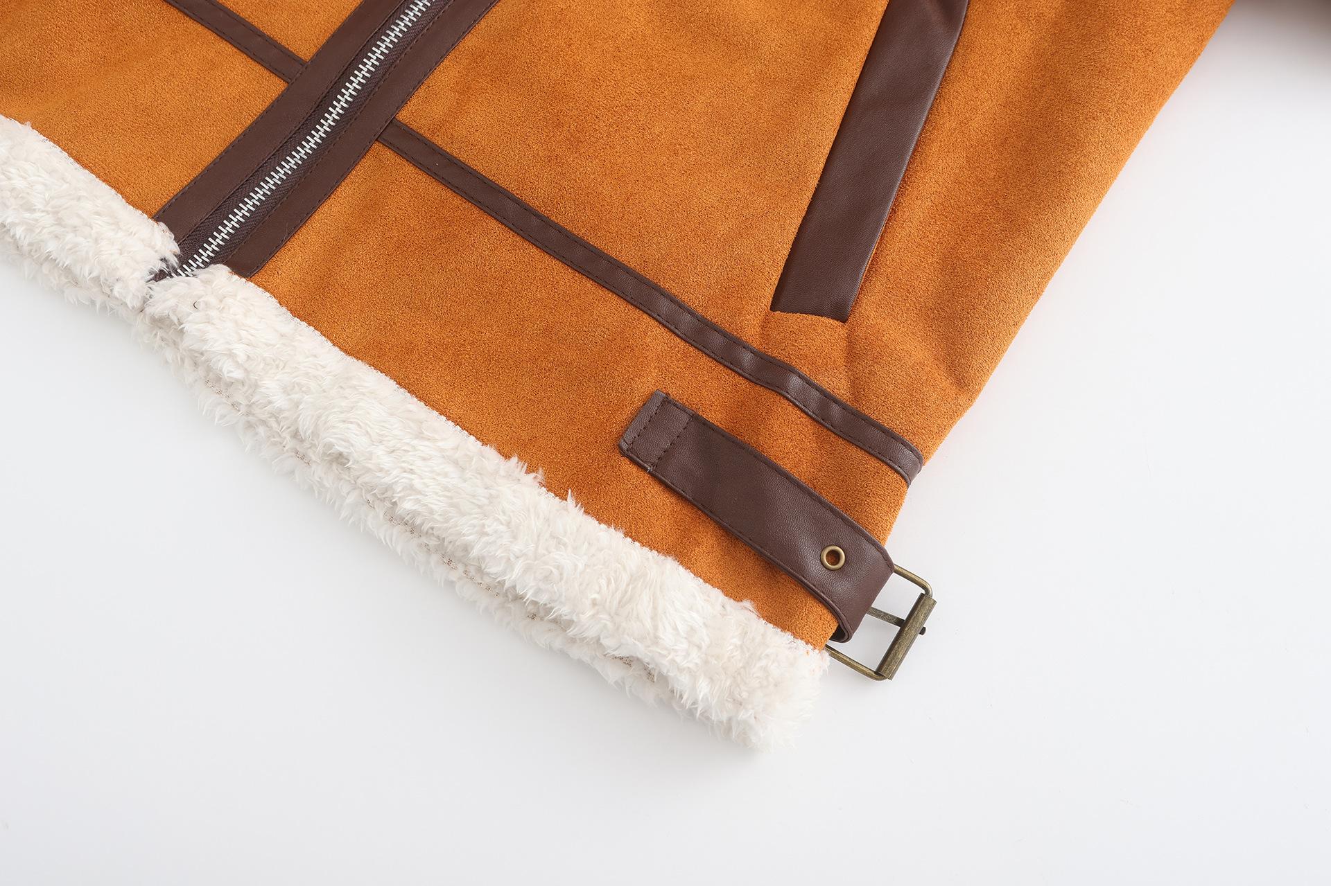 Abrigo Chaqueta de una pieza de color sólido juvenil transfronterizo europeo y americano para otoño e invierno con decoración de cinturón forrado de vellón informal con cremallera