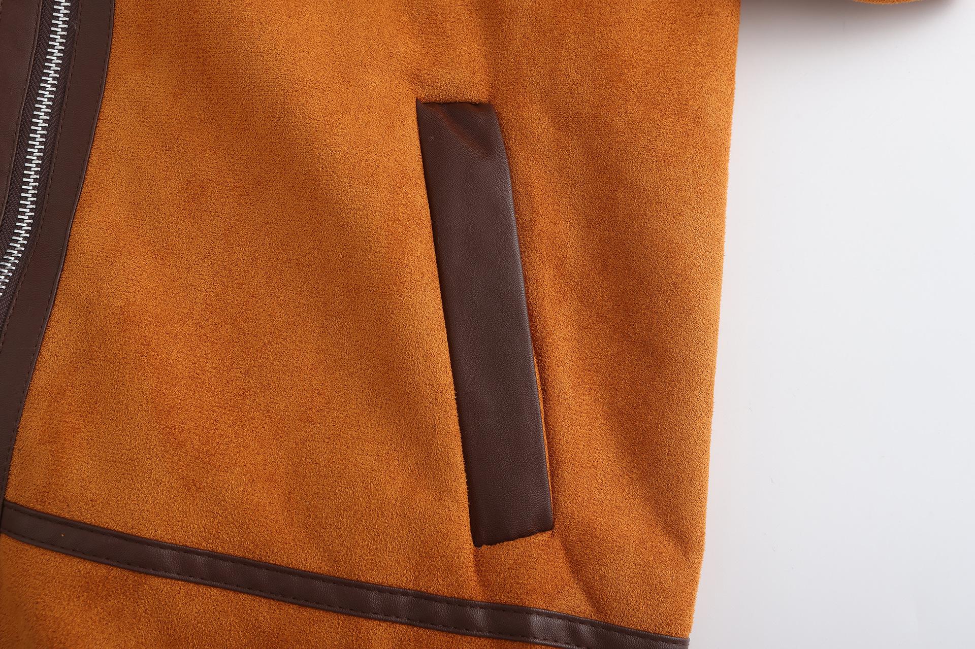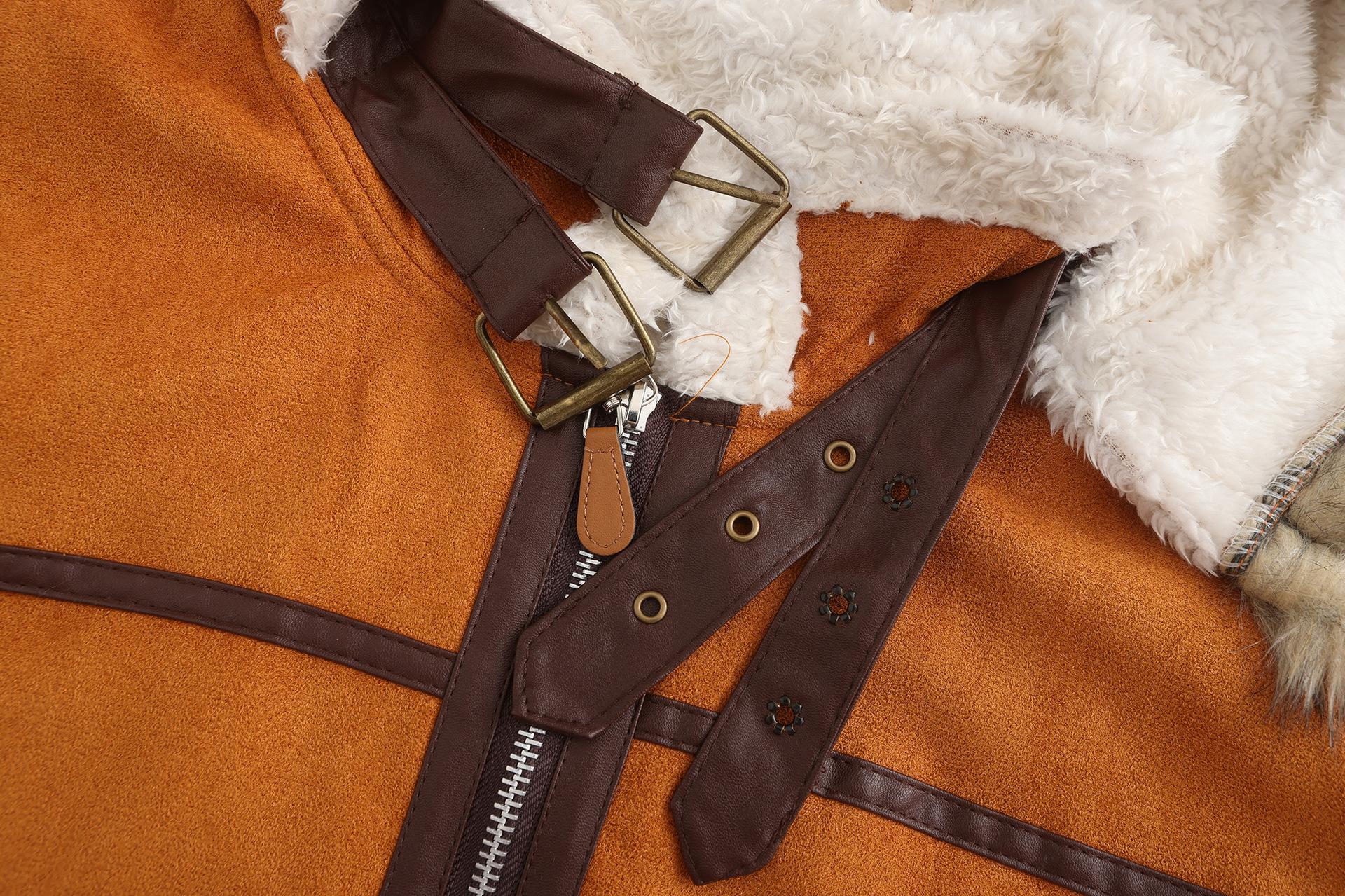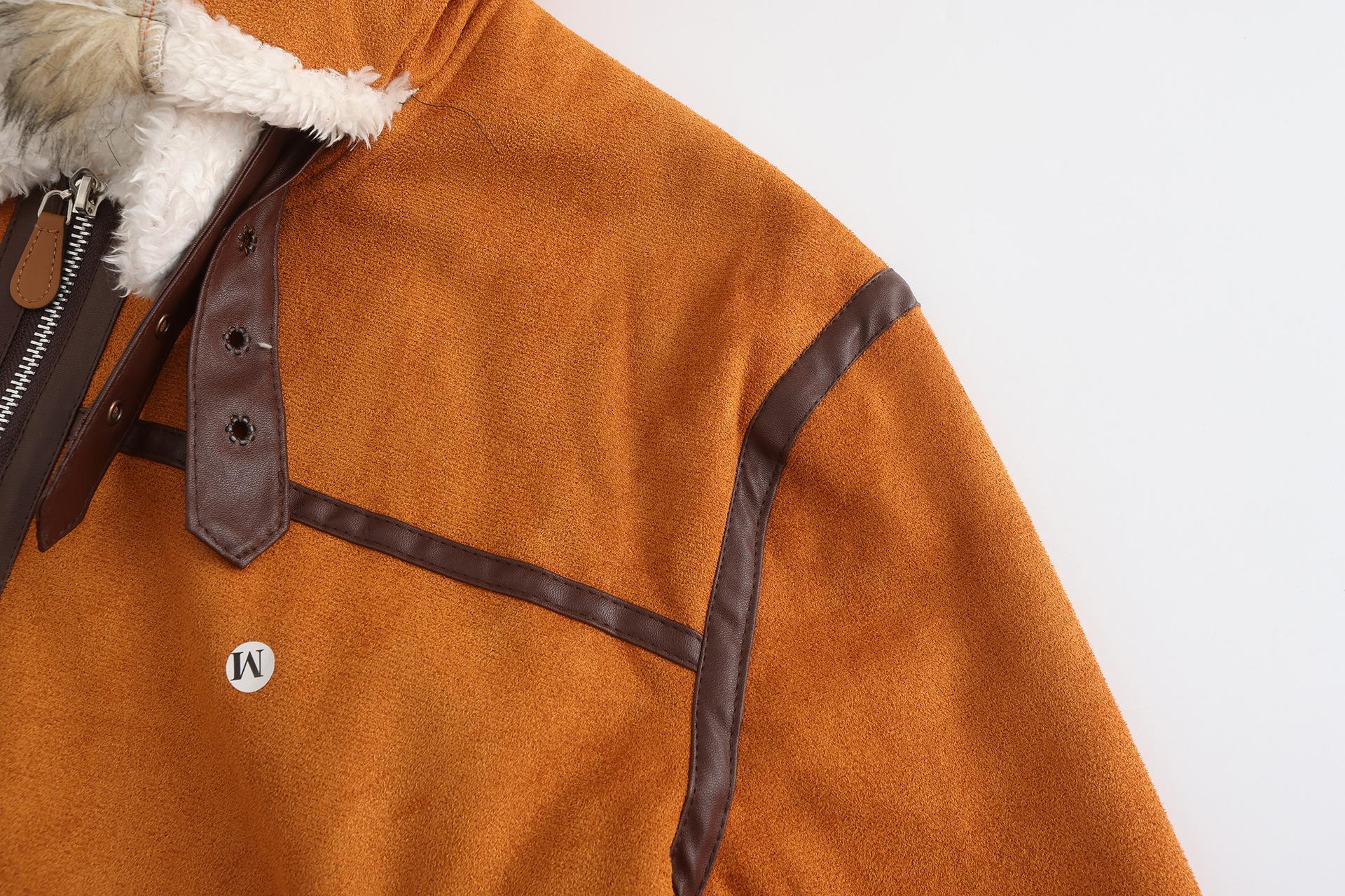 Abrigo Chaqueta de una pieza de color sólido juvenil transfronterizo europeo y americano para otoño e invierno con decoración de cinturón forrado de vellón informal con cremallera