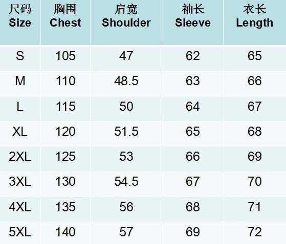 S, M, L, XL, XXL, XXXL, 4XL, 5XL
