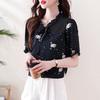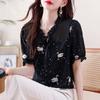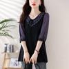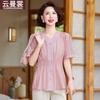 Camisa de gasa para mujer, novedad de verano 2025, top holgado para chica gordita, talla grande, que cubre el vientre, adelgazante, elegante, de manga corta para mujer