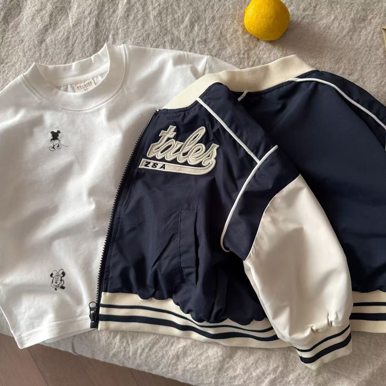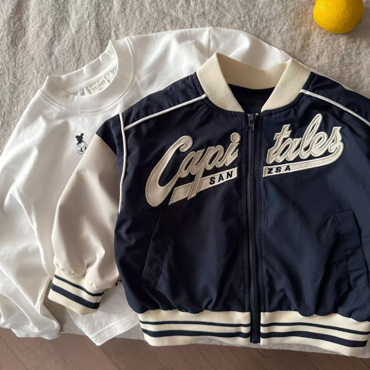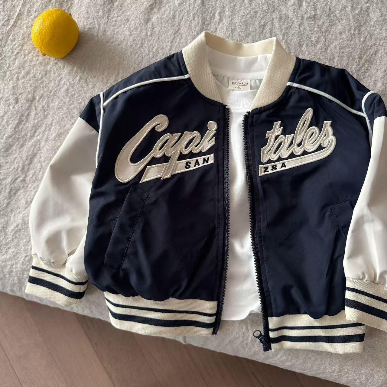 Chaqueta para Niños Primavera Niños 2025 Nueva Chaqueta de Béisbol Bordada para Niñas Estilo Coreano Chaqueta con Letras para Bebé Moda Femenina