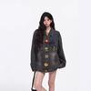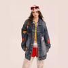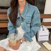 Chaqueta vaquera con costuras azul oscuro de Design Sense Laps para mujer, primavera y otoño de 2024, nueva chaqueta holgada informal retro de moda.
