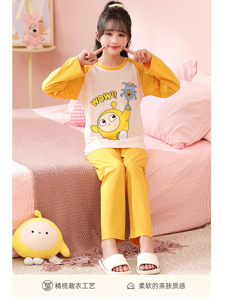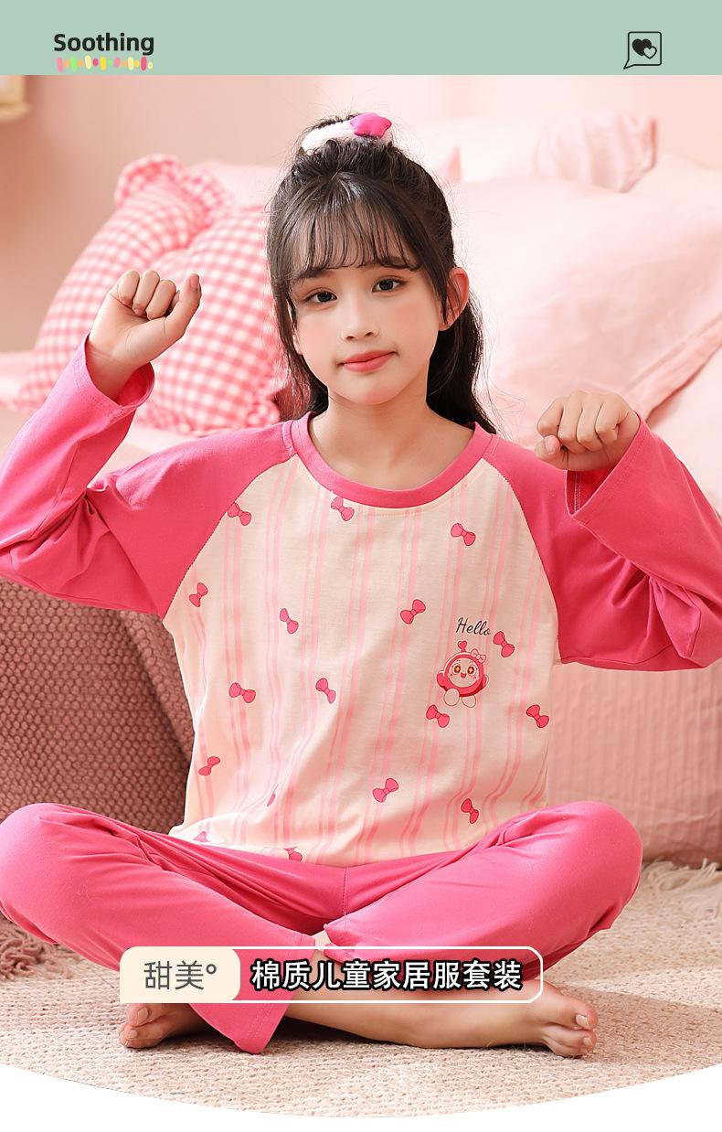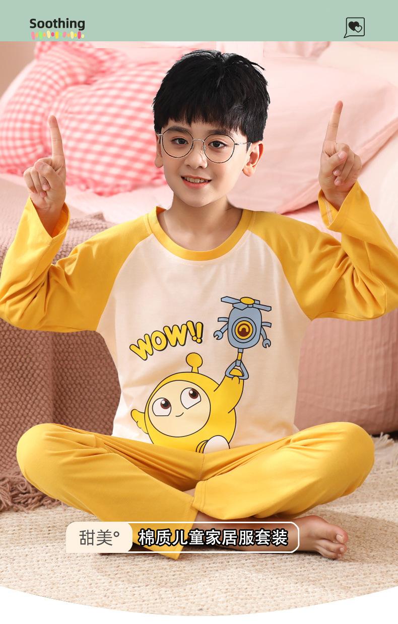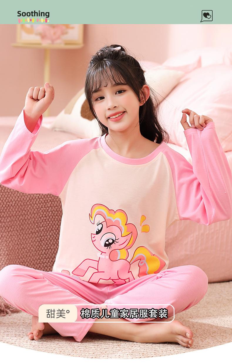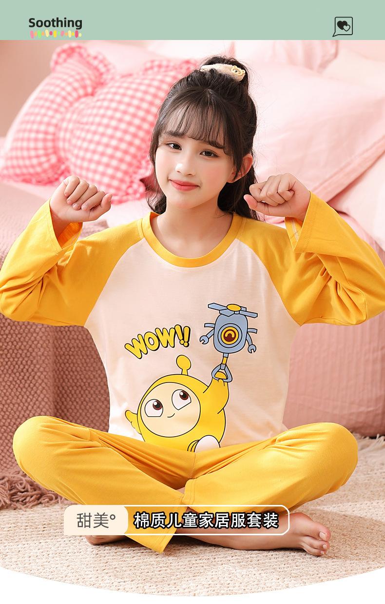 Pijamas nuevos de primavera y otoño para niños, de algodón peinado, para niños y niñas, pantalones de manga larga, cuello redondo, ropa de dibujos animados para el hogar, venta al por mayor