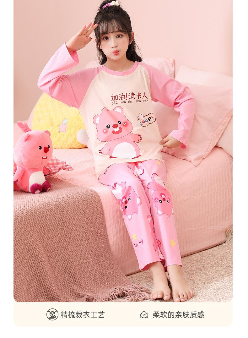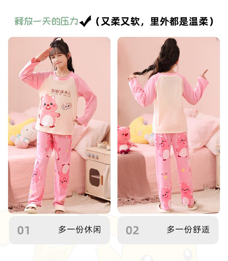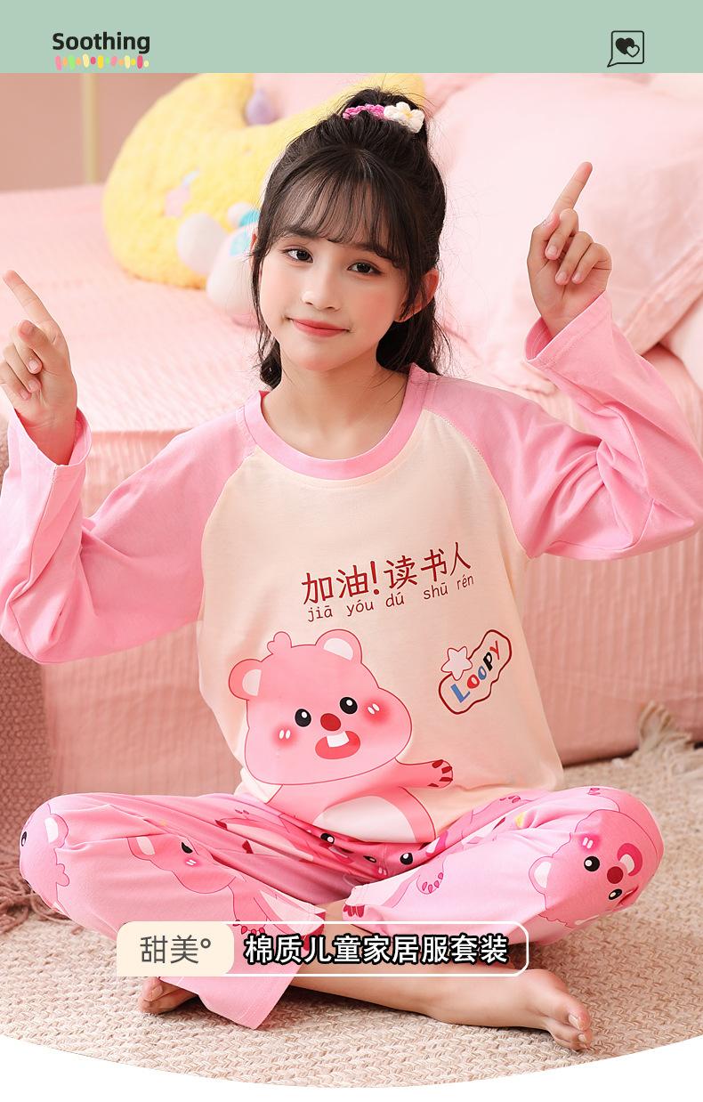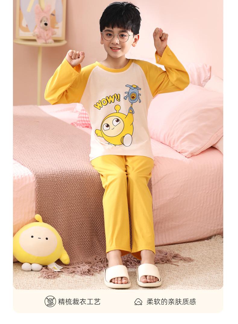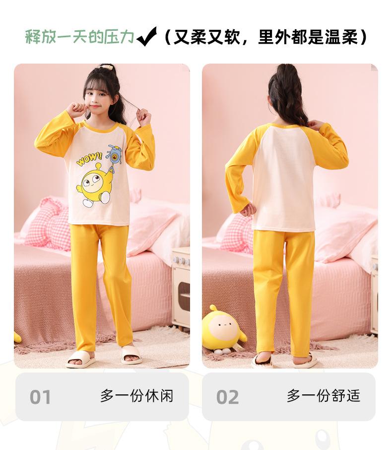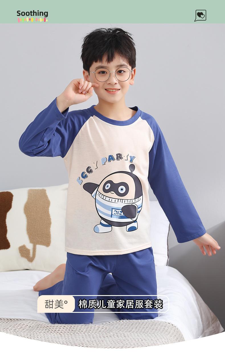 Pijamas nuevos de primavera y otoño para niños, de algodón peinado, para niños y niñas, pantalones de manga larga, cuello redondo, ropa de dibujos animados para el hogar, venta al por mayor