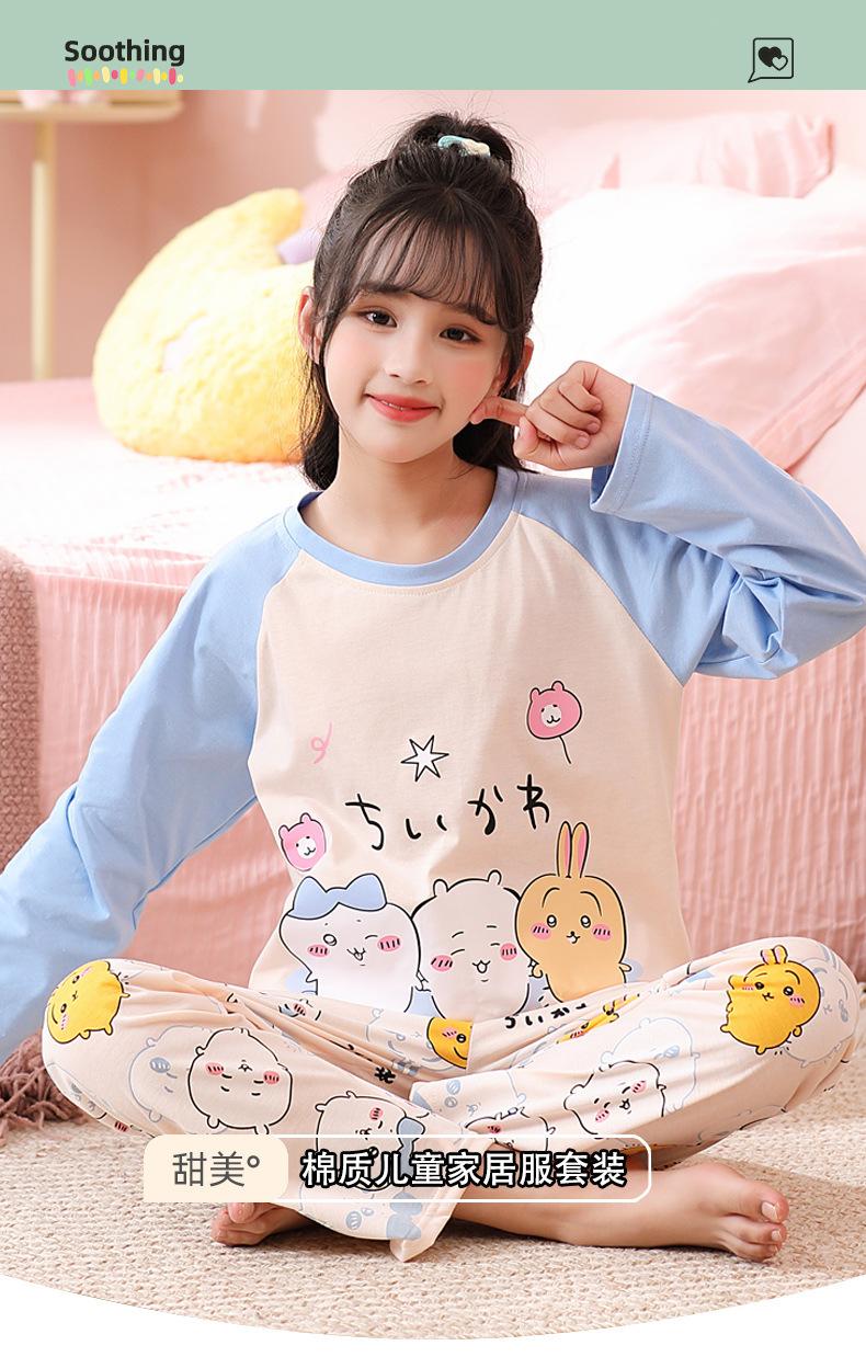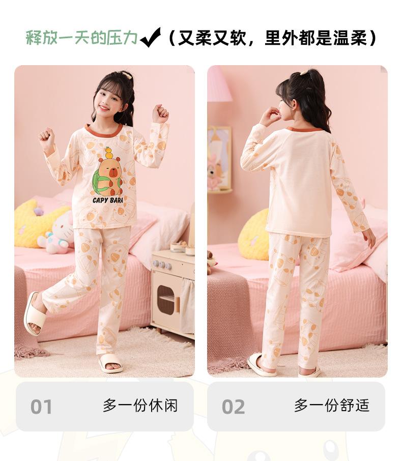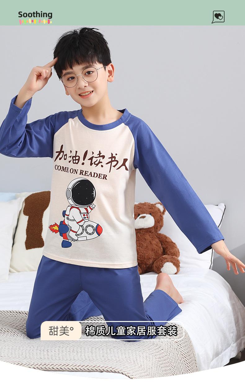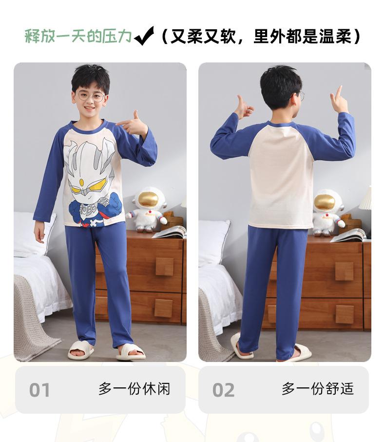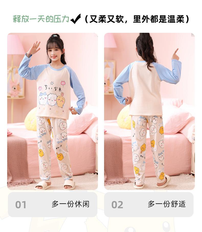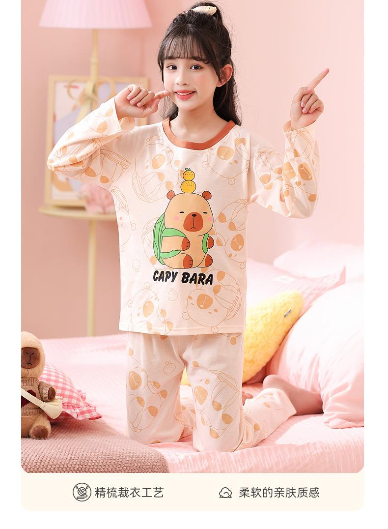 Pijamas nuevos de primavera y otoño para niños, de algodón peinado, para niños y niñas, pantalones de manga larga, cuello redondo, ropa de dibujos animados para el hogar, venta al por mayor