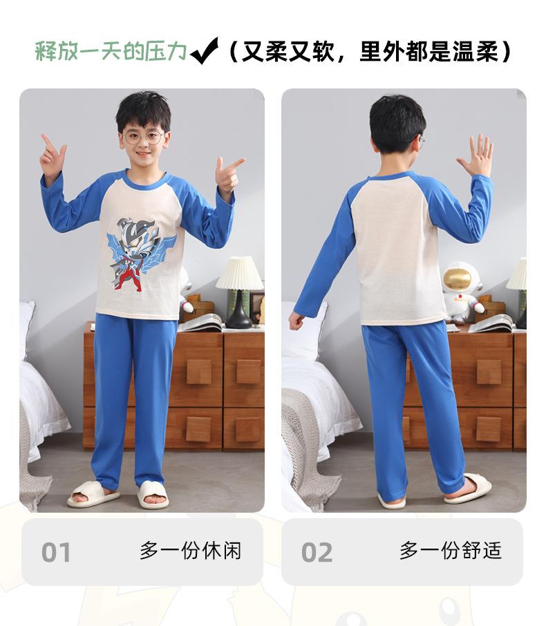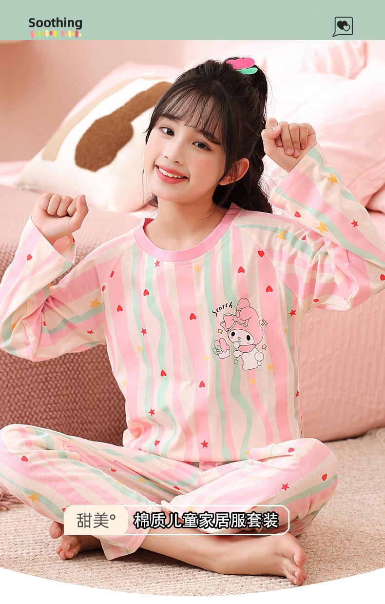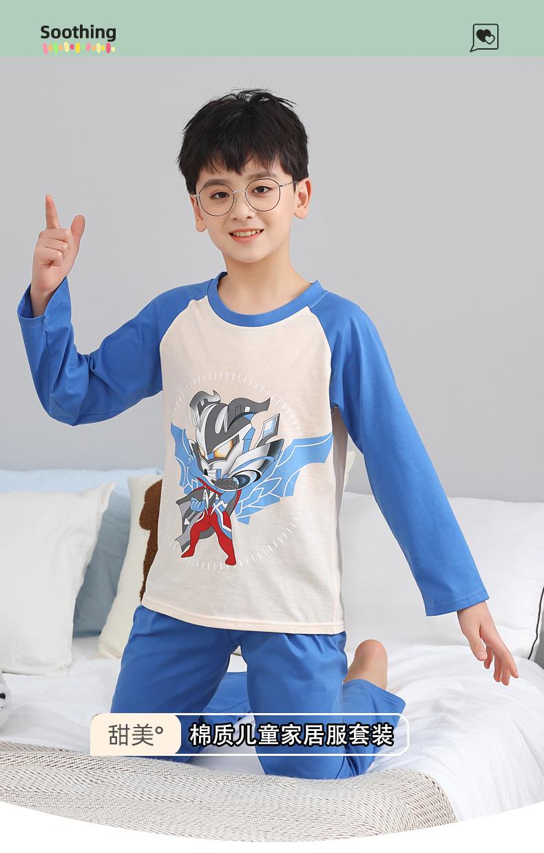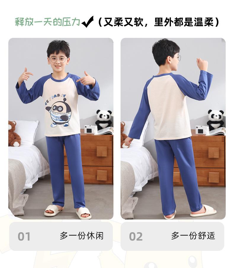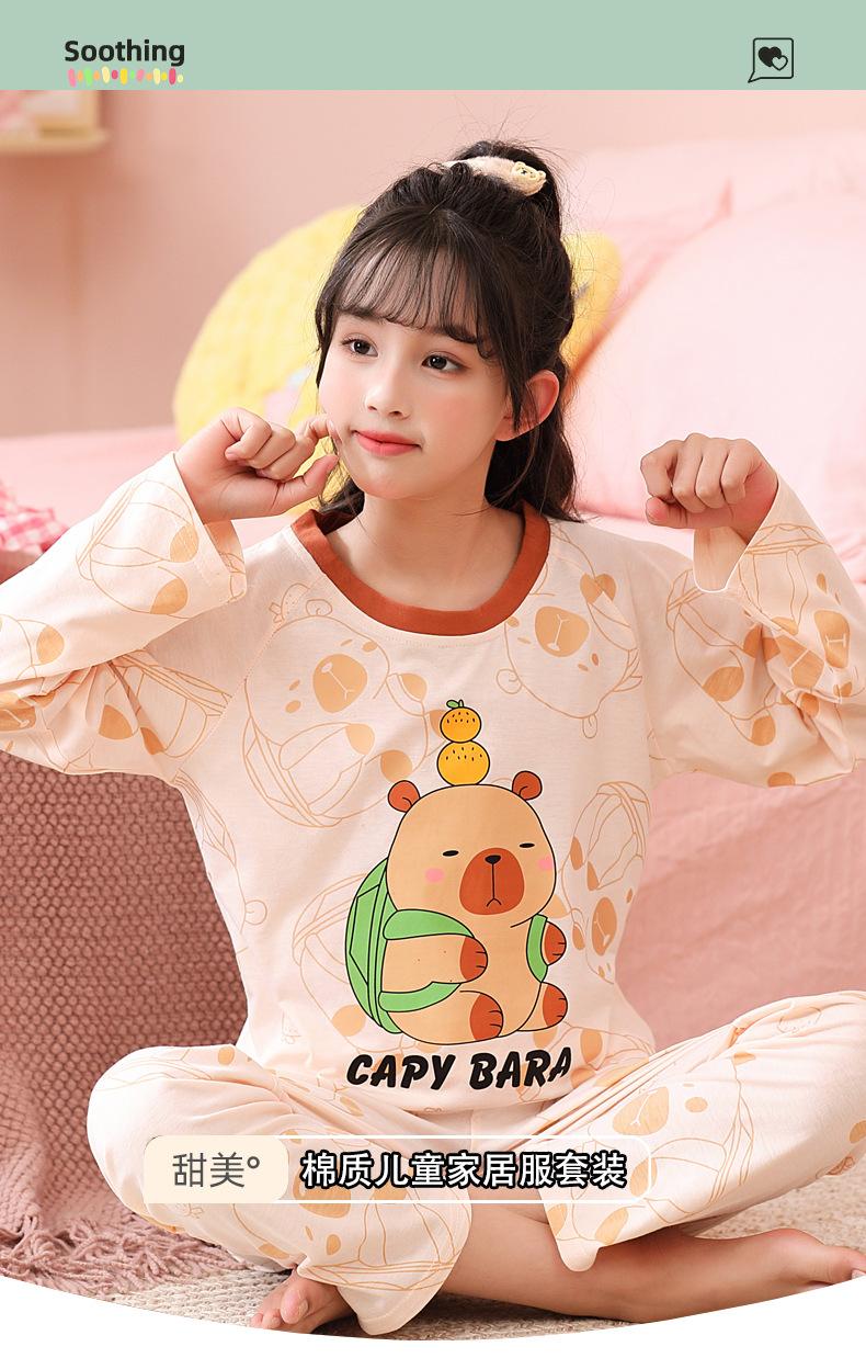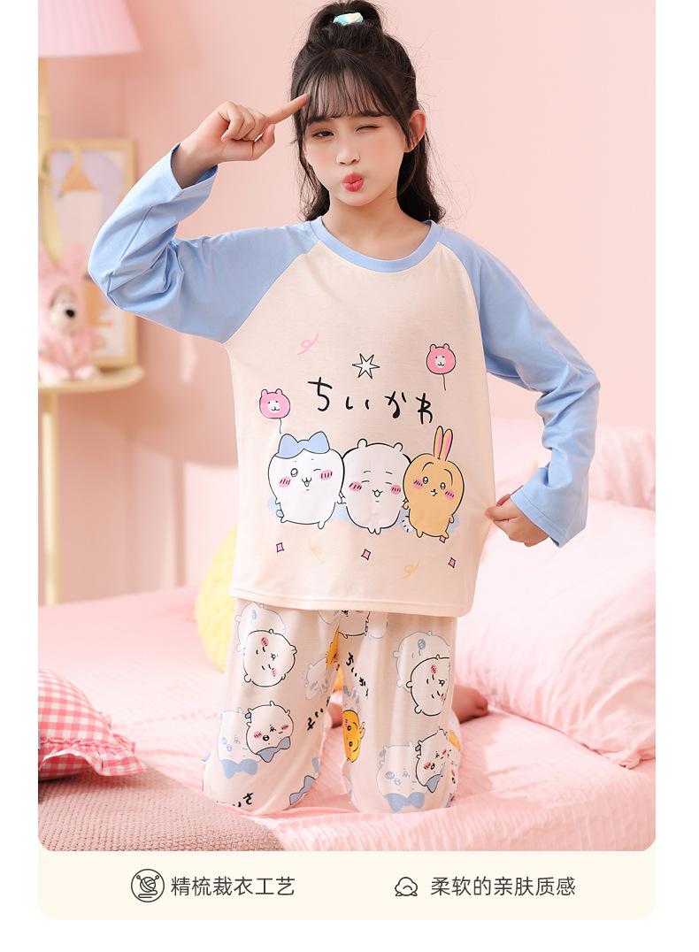 Pijamas nuevos de primavera y otoño para niños, de algodón peinado, para niños y niñas, pantalones de manga larga, cuello redondo, ropa de dibujos animados para el hogar, venta al por mayor
