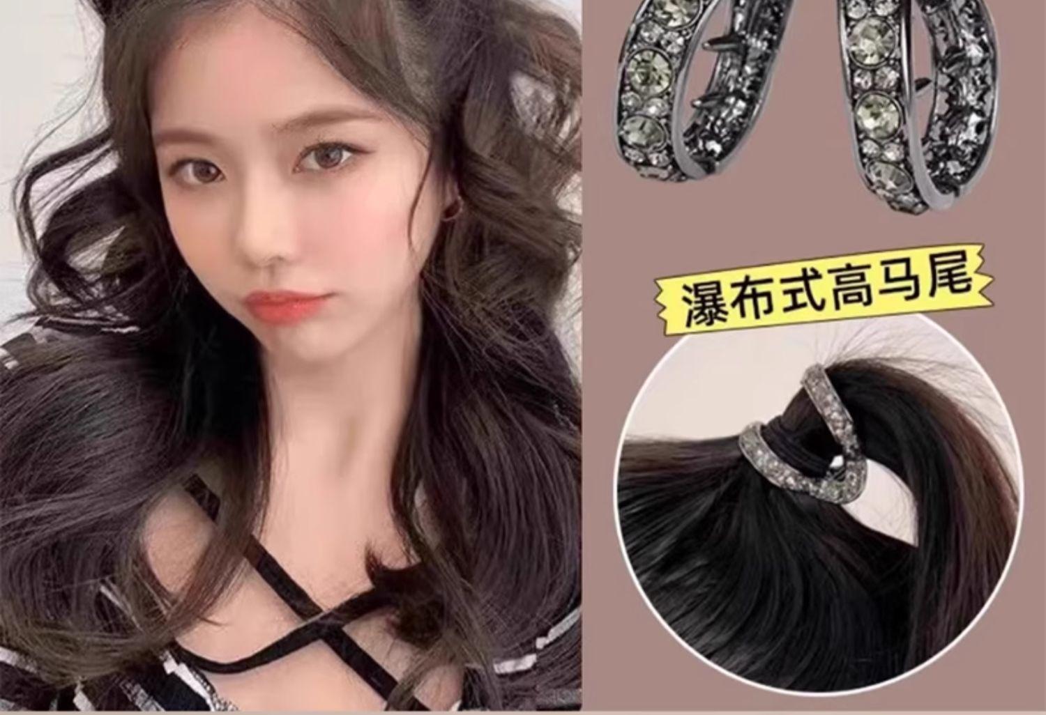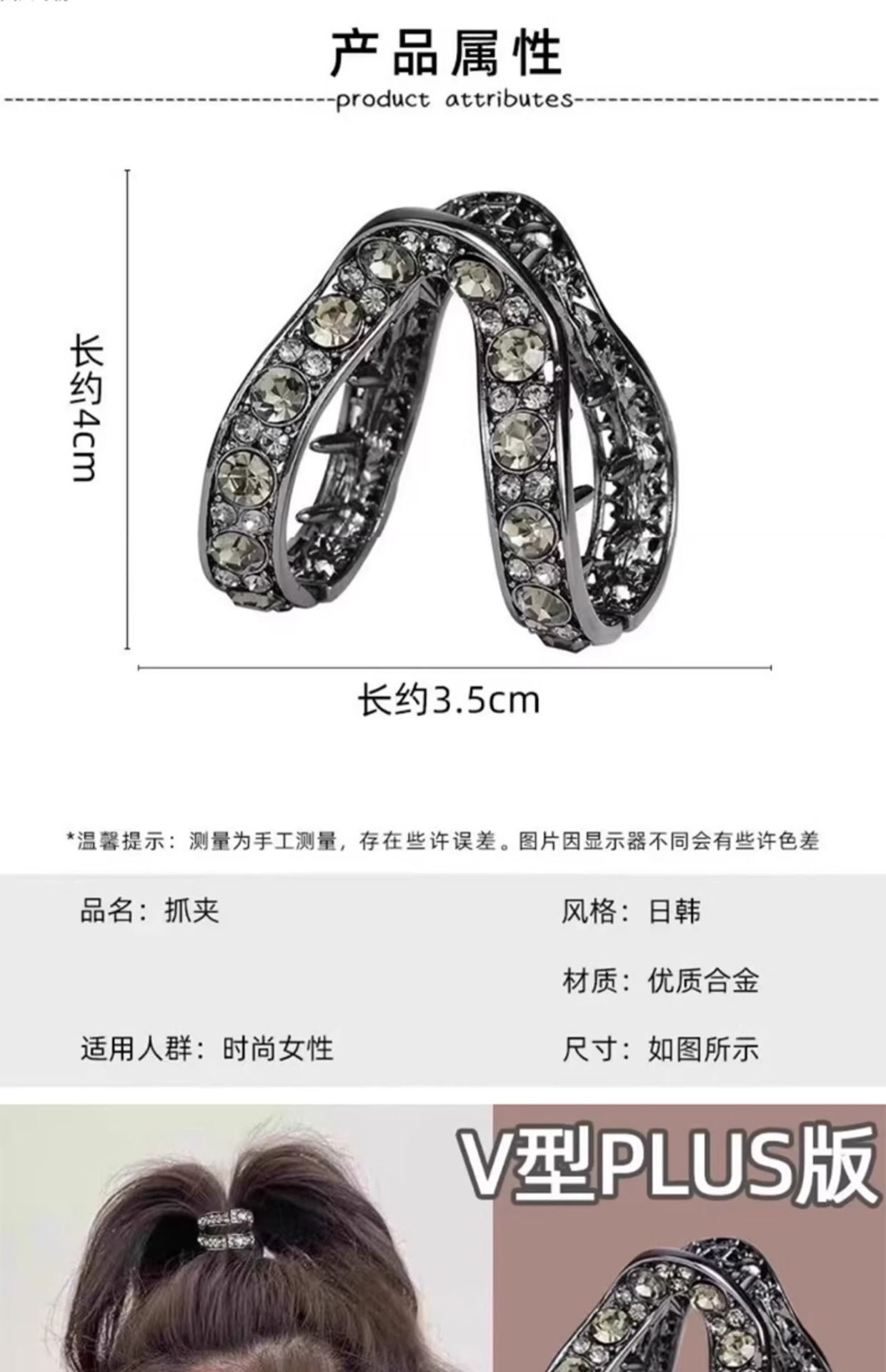 Herramienta de Fijación de Clip para Cabello de Cola de Caballo Alta en Forma de V para la Parte Posterior de la Cabeza, Clip para Cabello de Moño con un Toque de Alta Gama, Horquilla de Diamantes de Imitación Accesorio para Mujeres