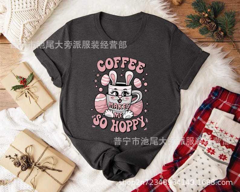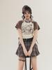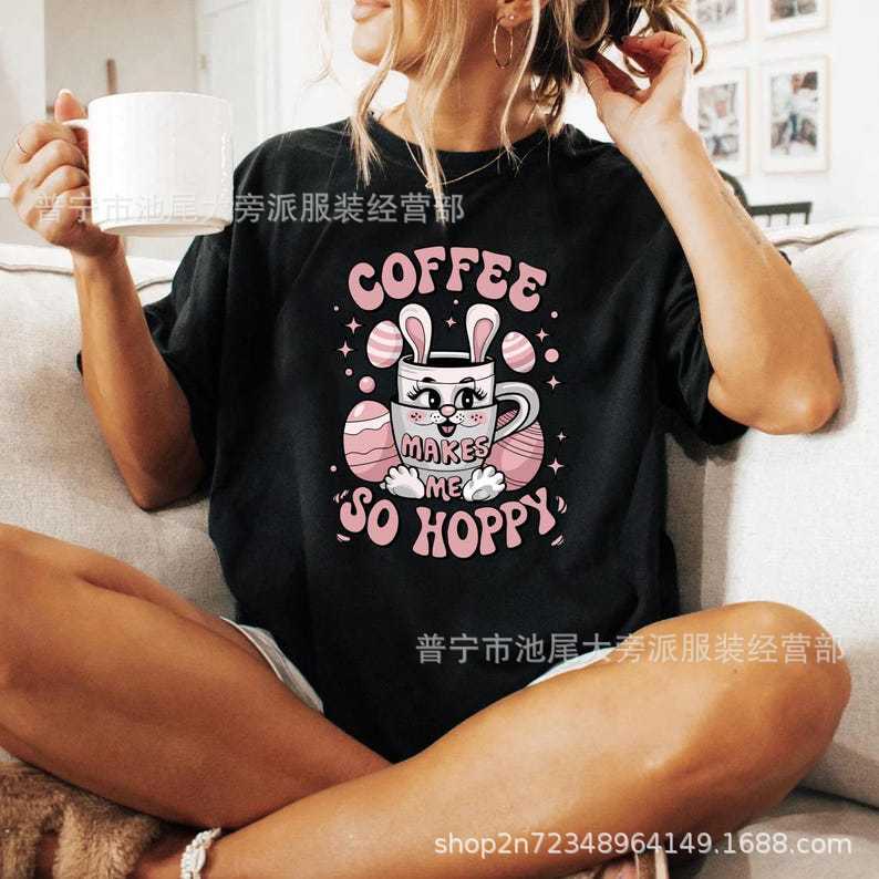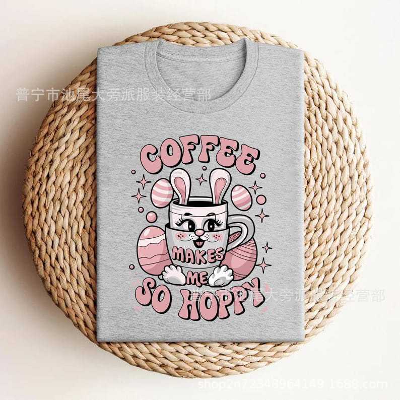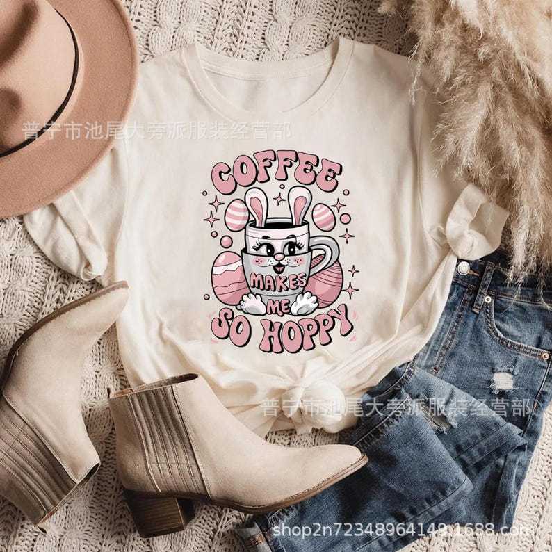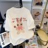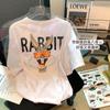 Verano Nuevo Estampado de Conejo Cuello Redondo Manga Corta Personalizado Casual Versátil Holgado Transpirable para Mujer
