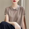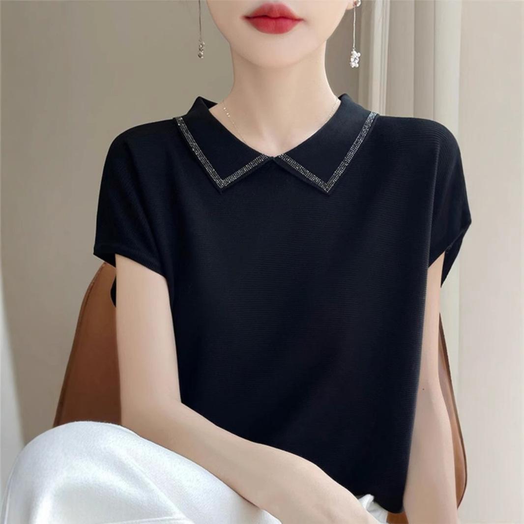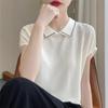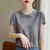 Compra Tejido de Punto Sexy con Solapa de Manga Corta Verano 2025 Nuevo Diseño Nicho Elegante Camiseta Top para Mujer al por mayor en Joom.pro