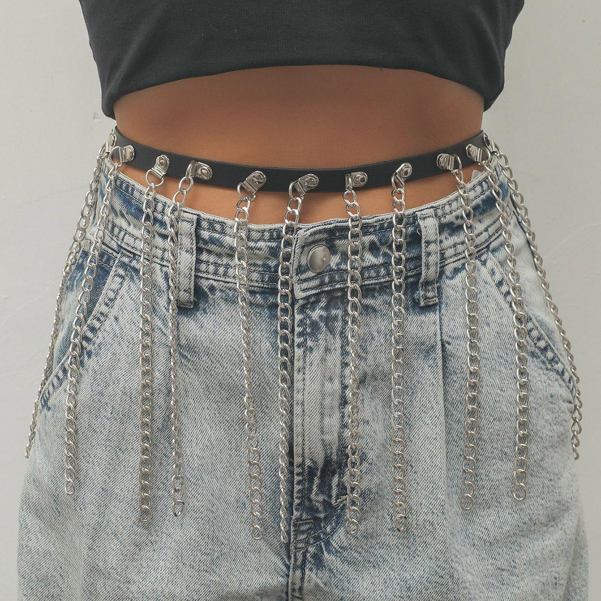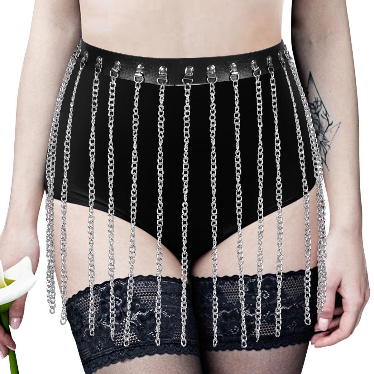 Pys Cuero Bondage Borla Cinturón Cadena Cadena de Cintura Bar Dj Ropa de Actuación para Canción Femenina Estilo Ins Europeo y Americano