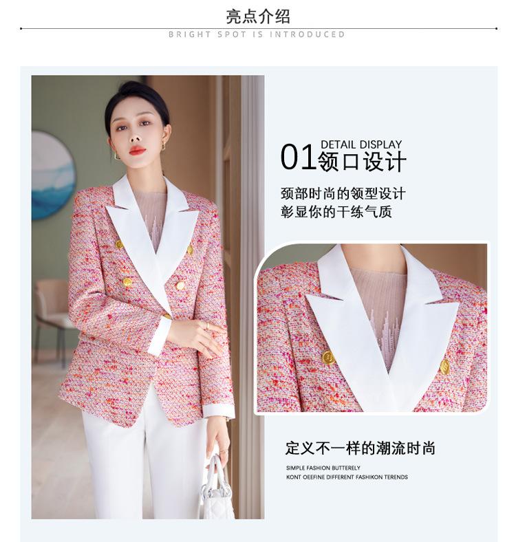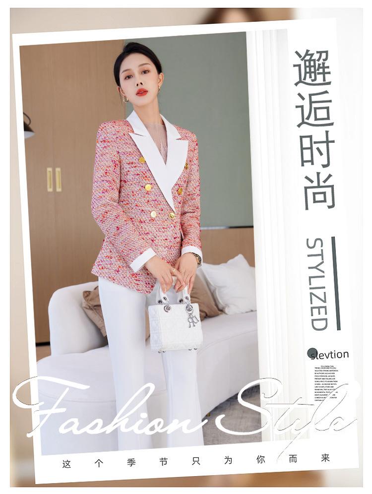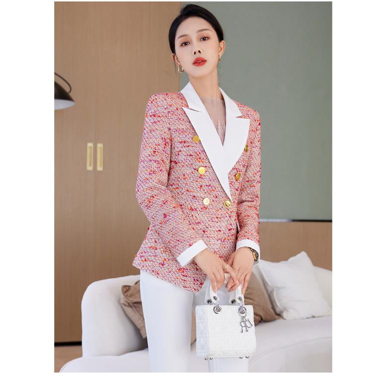 Traje Rojo Pequeño de Cuello Blanco para Mujer Otoño Venta al por Mayor Nueva Moda Traje Corto Casual de Fragancia Pequeña Conjunto de Dos Piezas