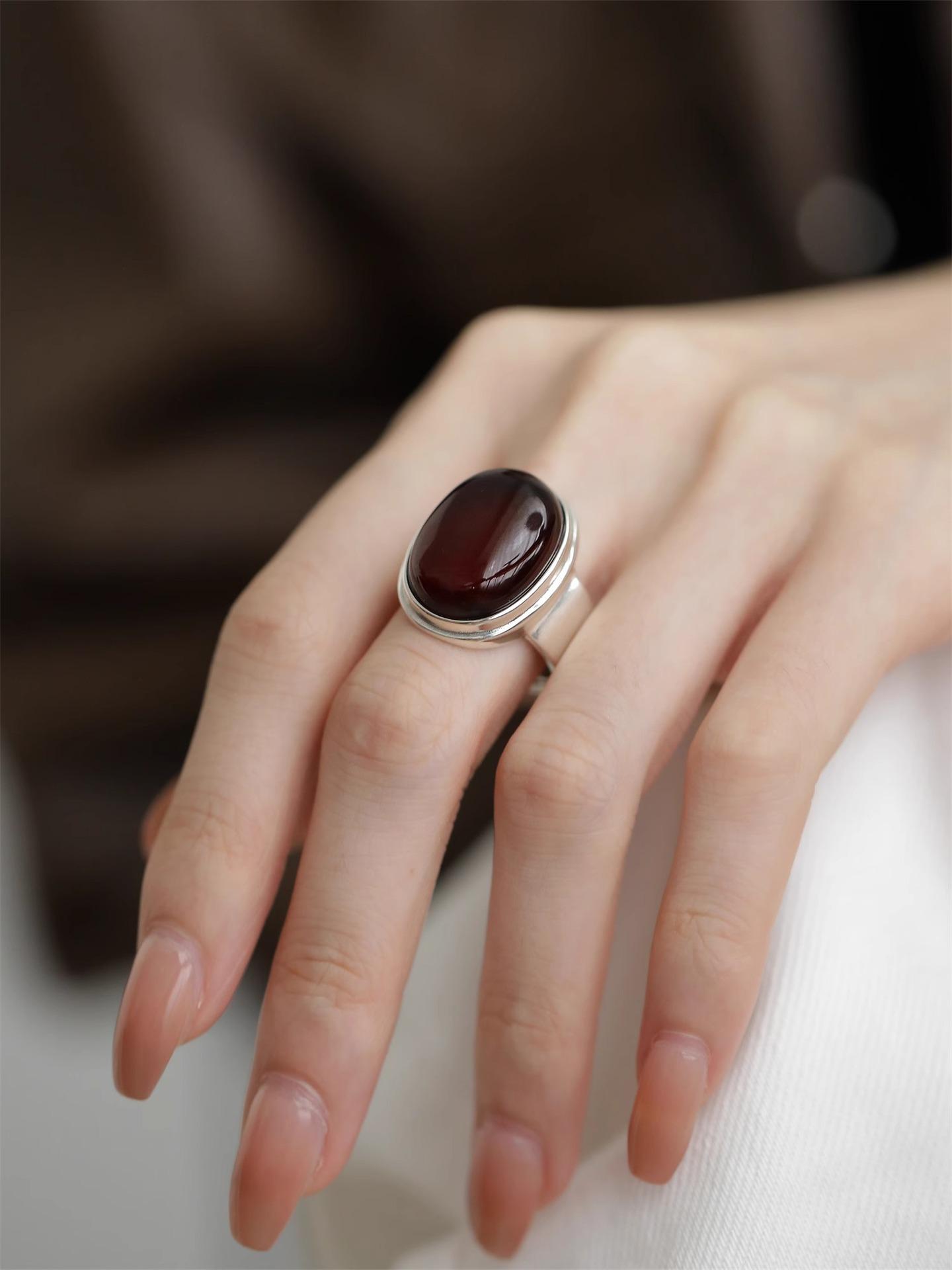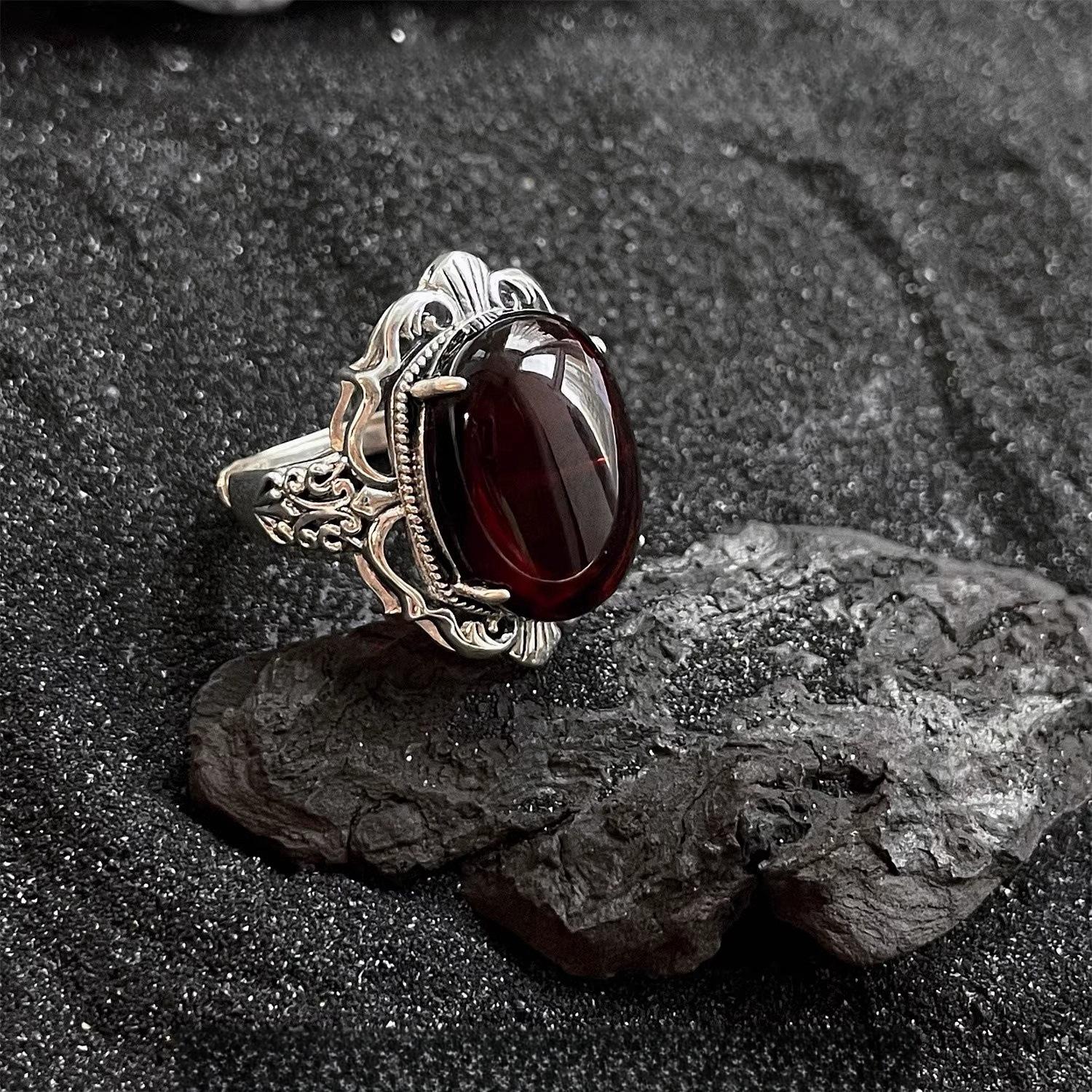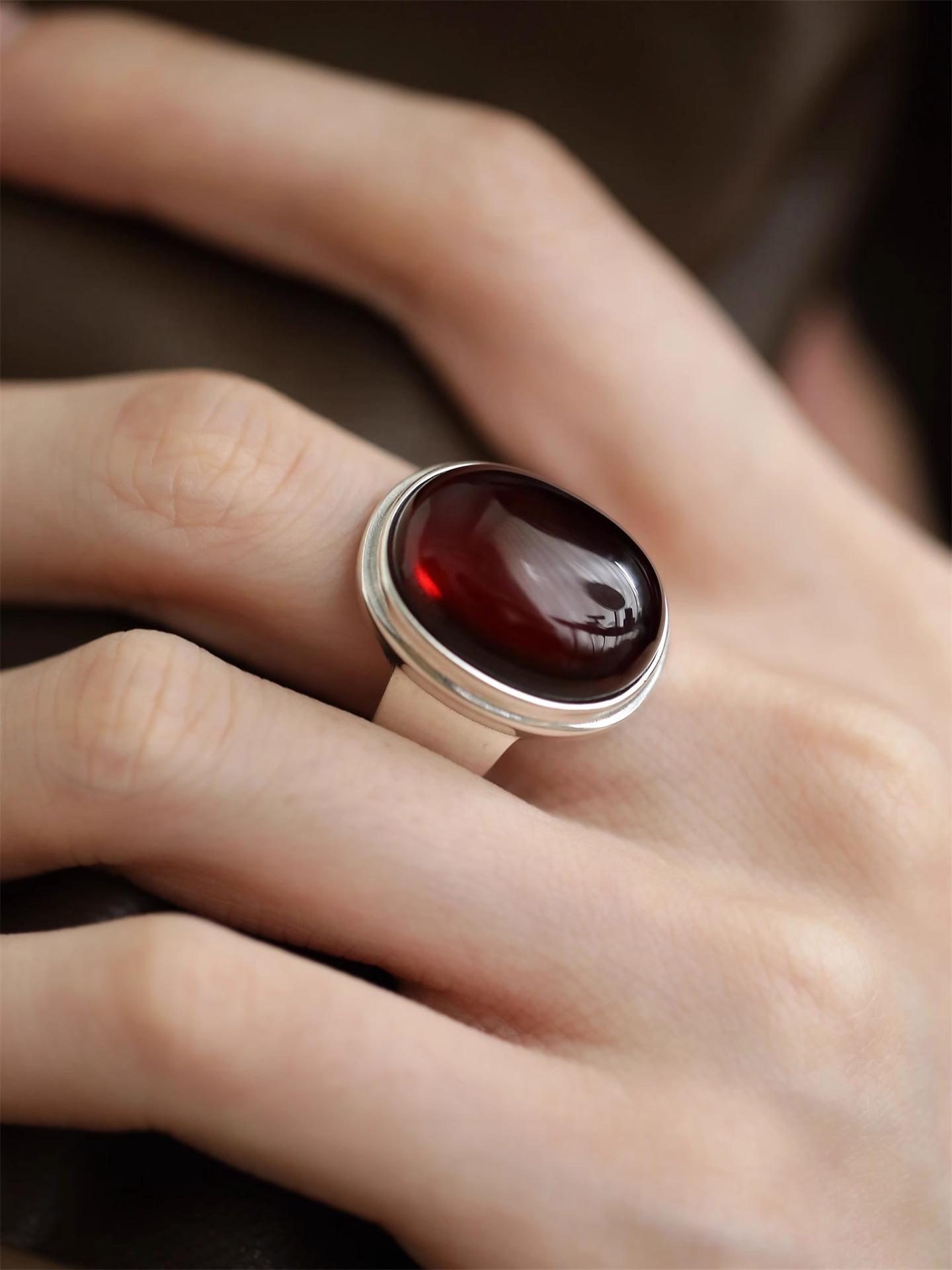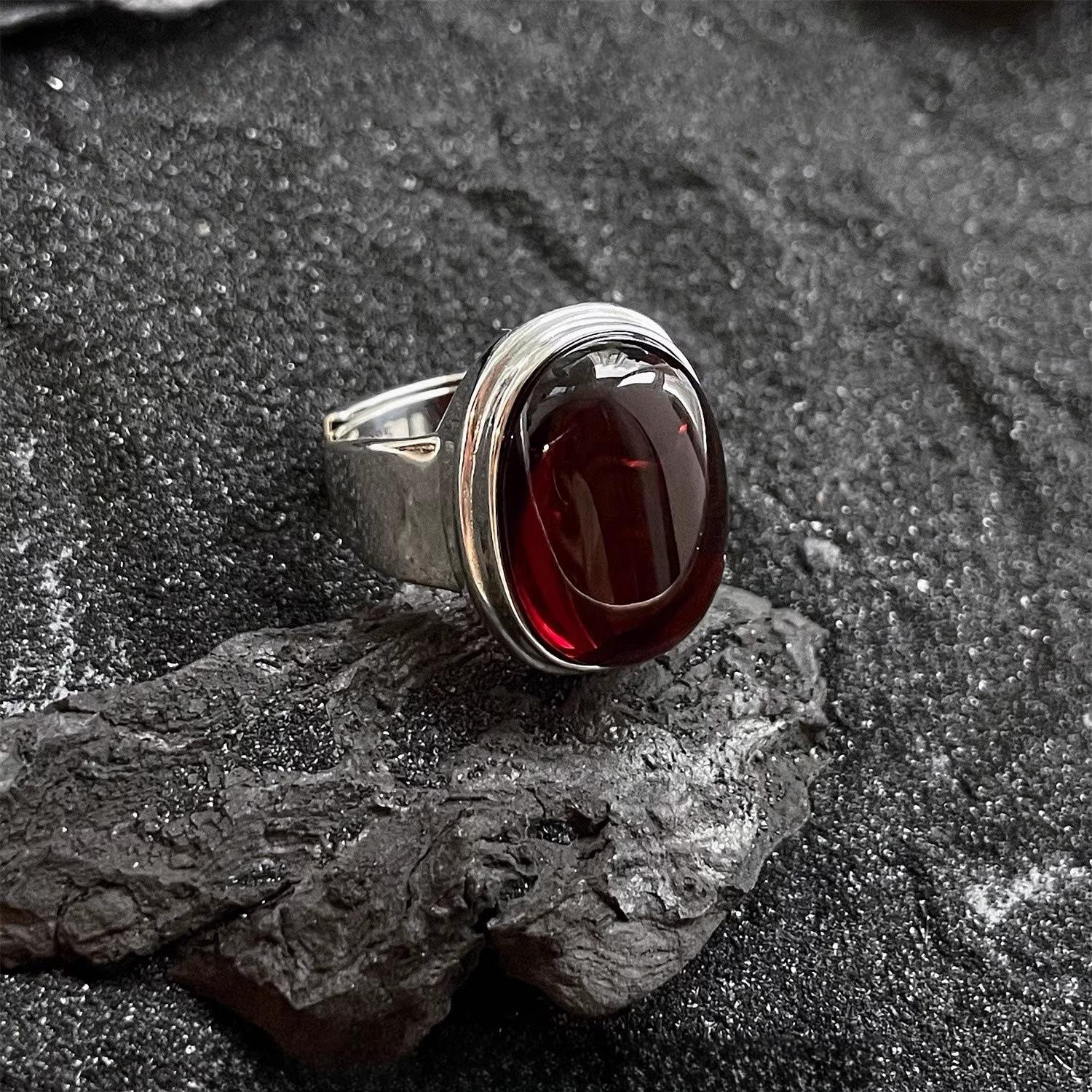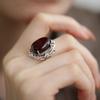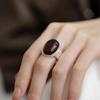 Anillo de Rubí de Plata S925 Retro Cara de Huevo para Mujer Diseño Nicho Anillo Lujo Ligero Simple Alta Gama Anillo de Dedo de Comida Moderno
