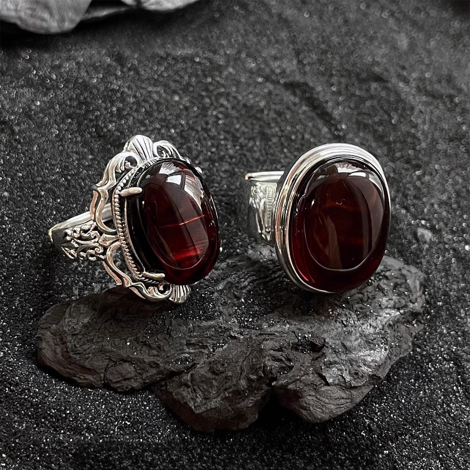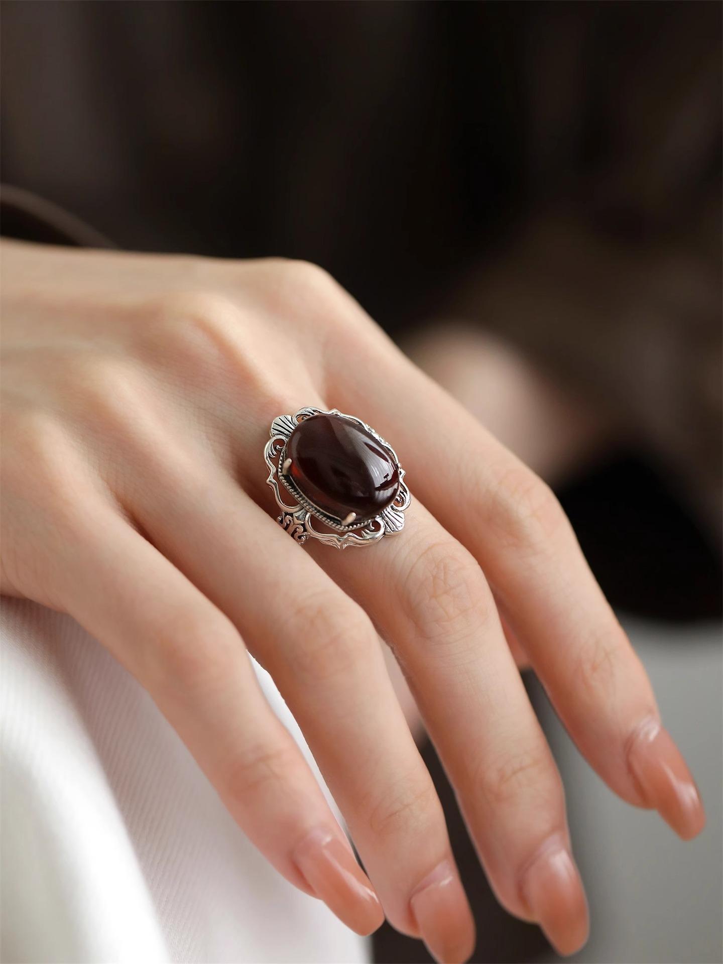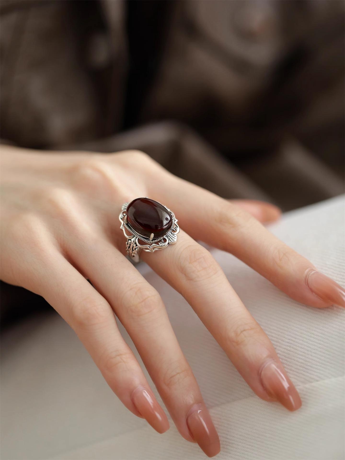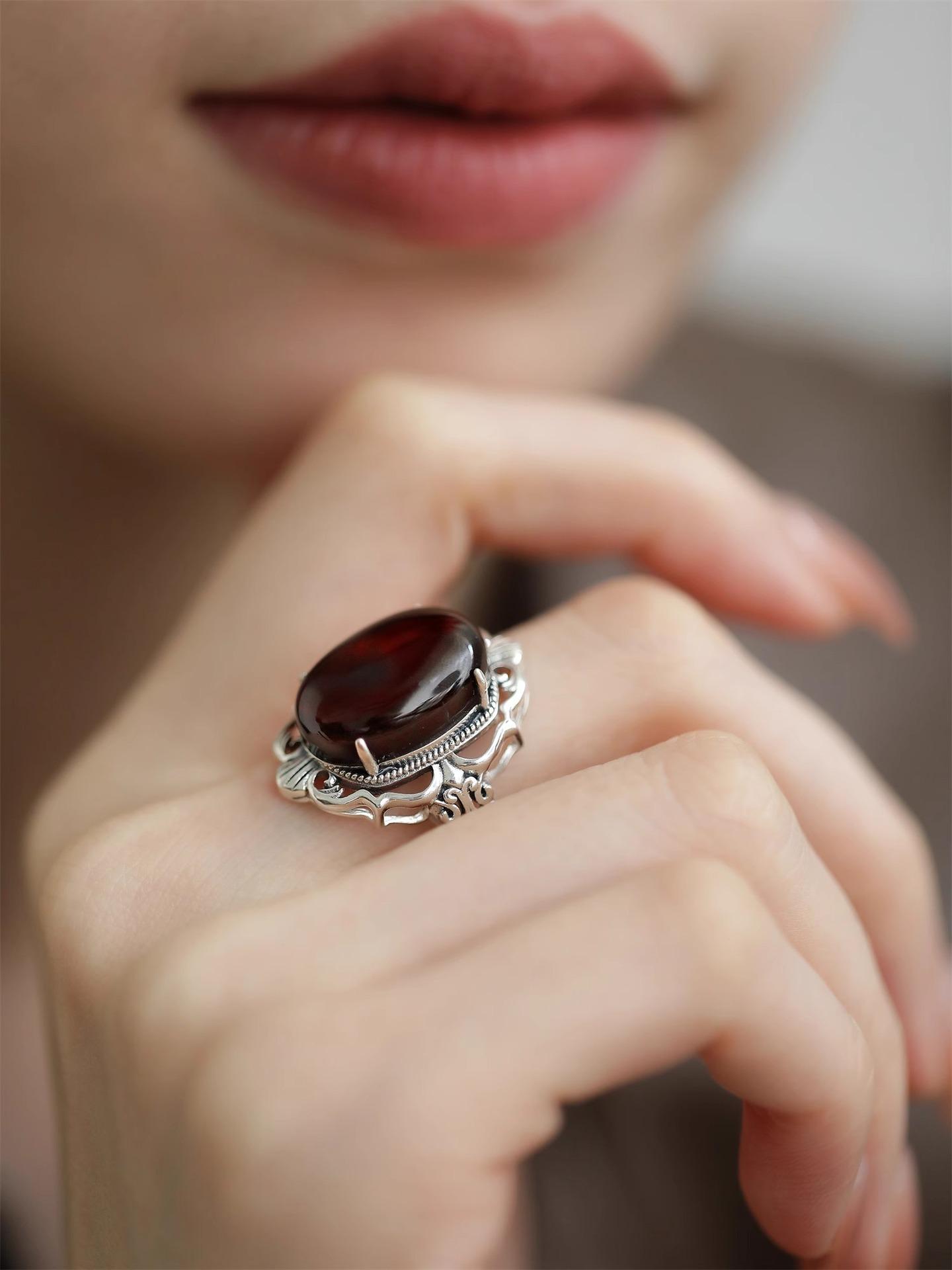Anillo de Rubí de Plata S925 Retro Cara de Huevo para Mujer Diseño Nicho Anillo Lujo Ligero Simple Alta Gama Anillo de Dedo de Comida Moderno