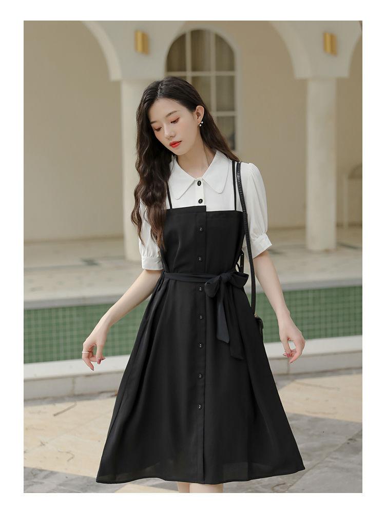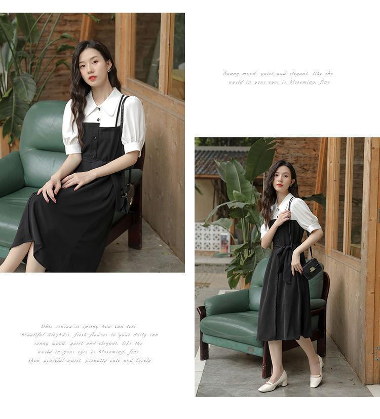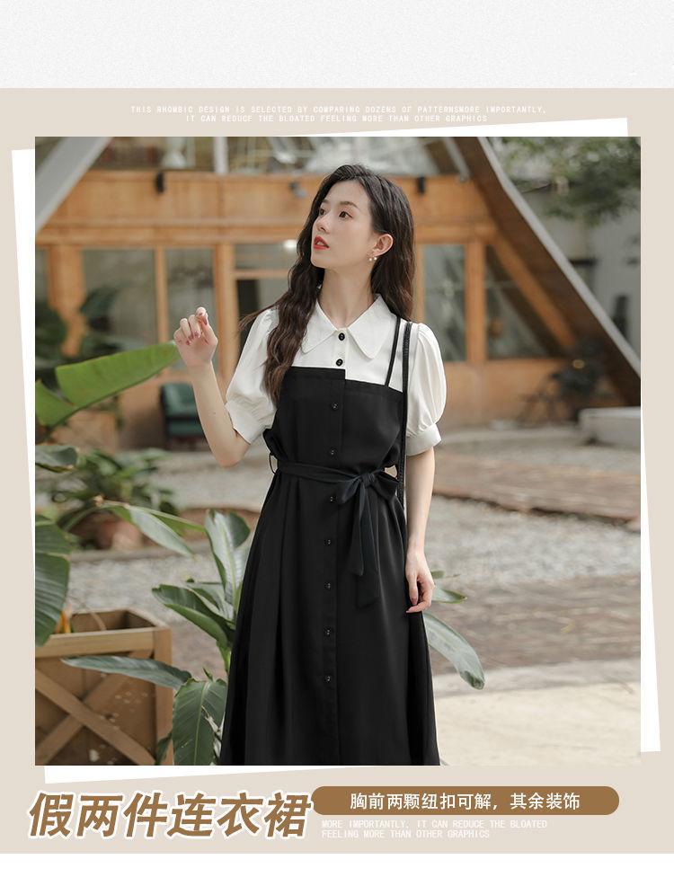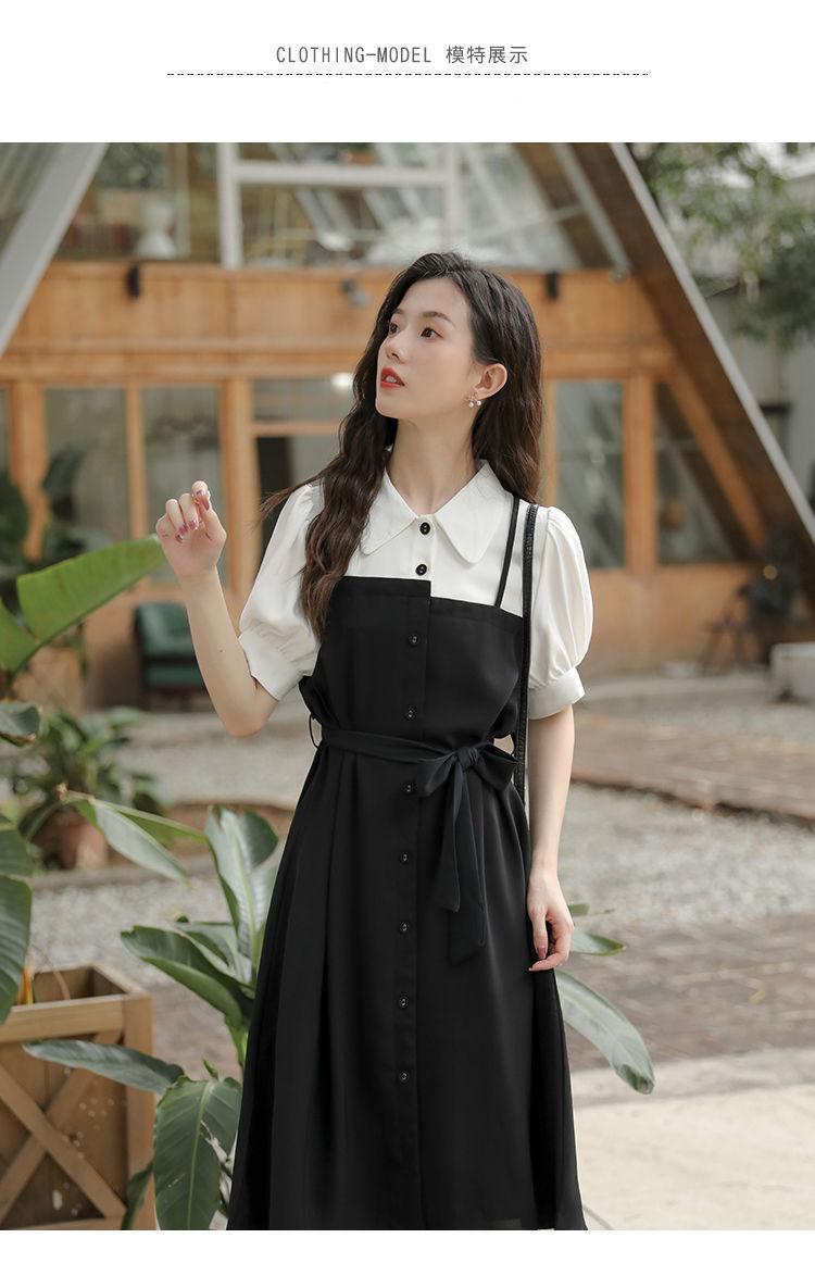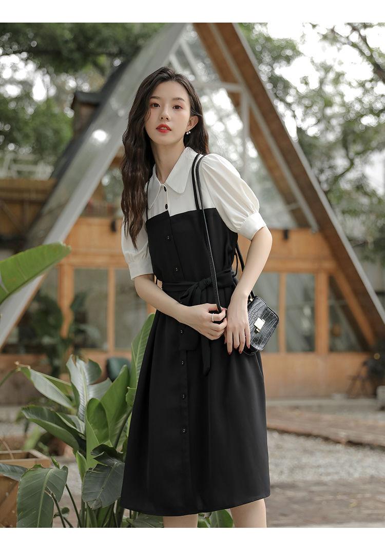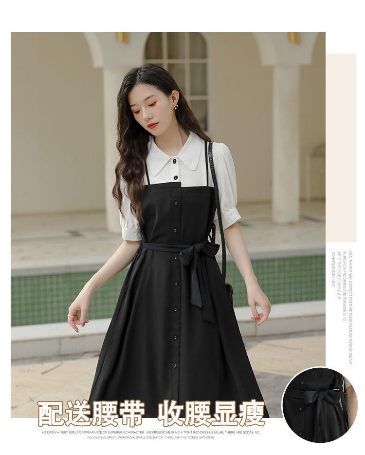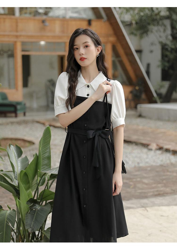 Vestido Negro Corto Falda Elegante Vestido Largo de Verano para Mujer Vestido Camisero Francés Estilo Hepburn Cintura Vestido Negro 2022 Recién Llegado