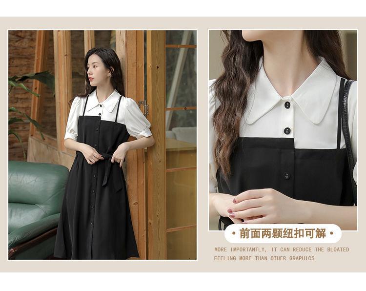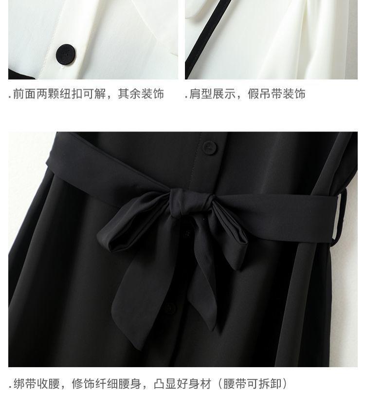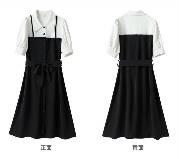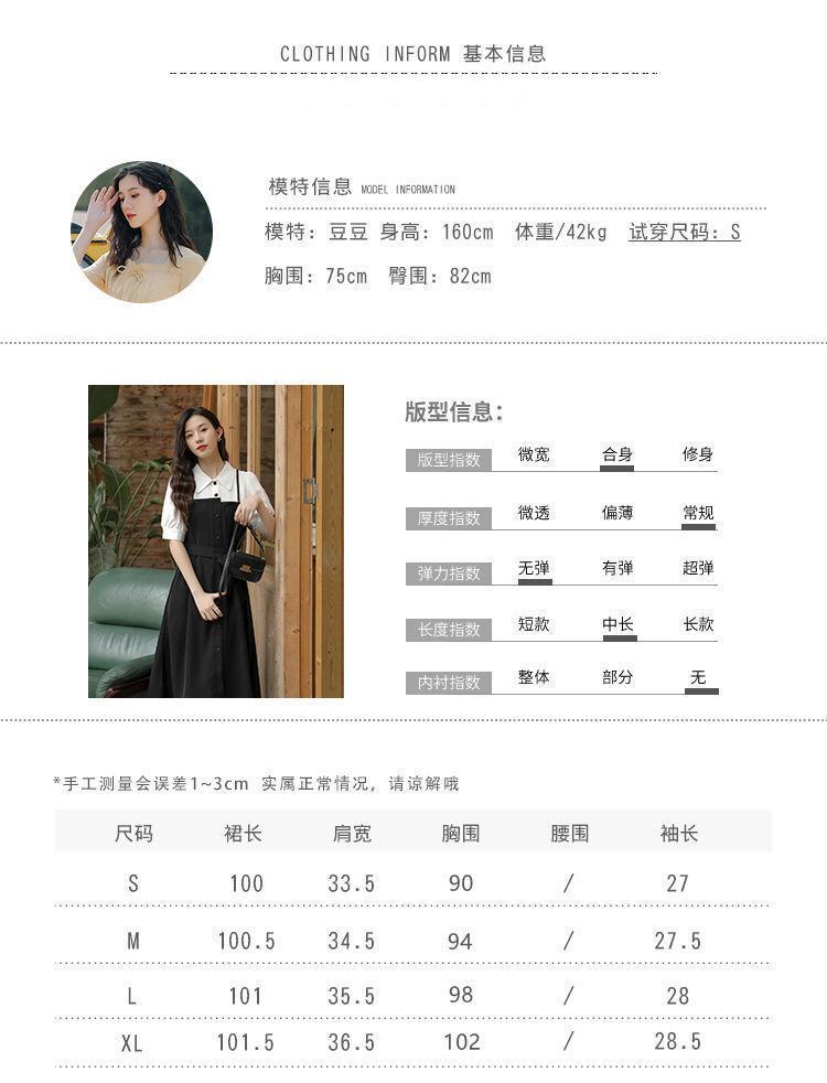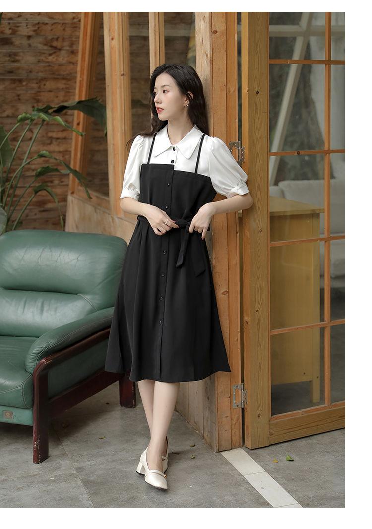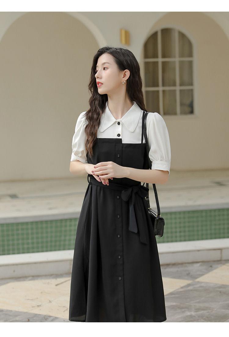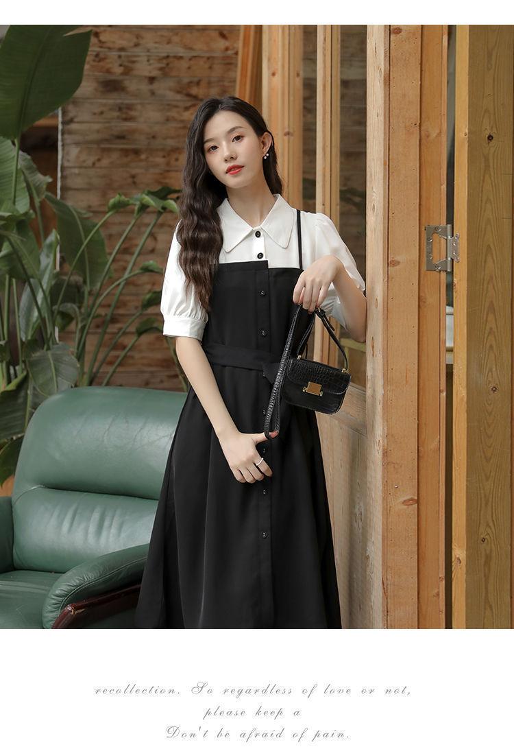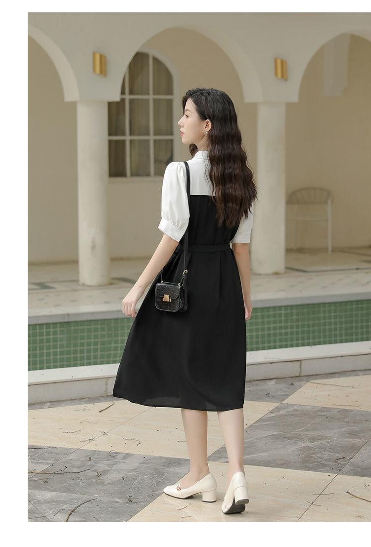 Vestido Negro Corto Falda Elegante Vestido Largo de Verano para Mujer Vestido Camisero Francés Estilo Hepburn Cintura Vestido Negro 2022 Recién Llegado