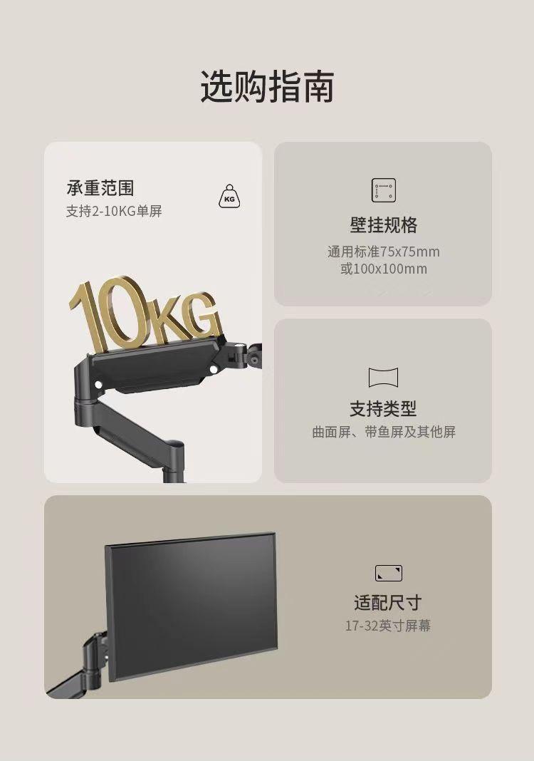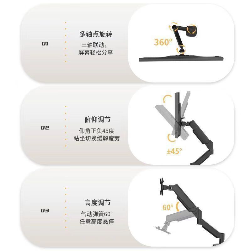 Single screen classic black-[36inch inner air pressure hover] 10kg load-bearing, 14-24 inch folding monitor ba...