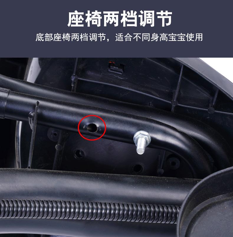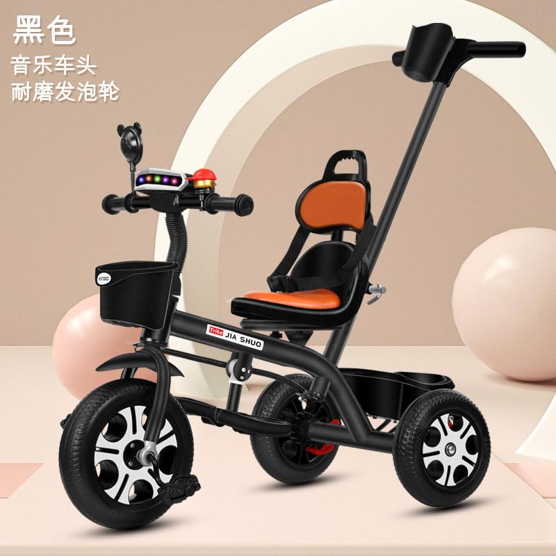 White solid wheel push handle with dual brakes, music and lighting, soft seat and backrest✓, Black solid wheel...