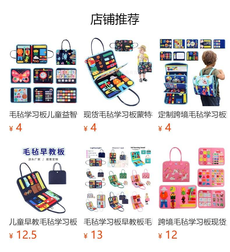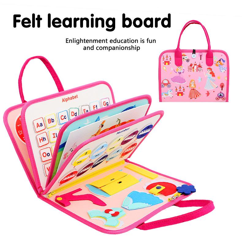Tablero de aprendizaje de fieltro Montessori, juguetes educativos para niños, tablero de actividades para educación temprana, accesorios de bricolaje, impresión de varias páginas