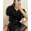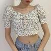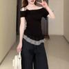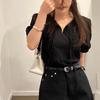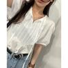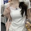 2025 Nuevo Top Coreano de Encaje con Cordones y Manga Corta Camisa de Color Sólido con Cuello en V