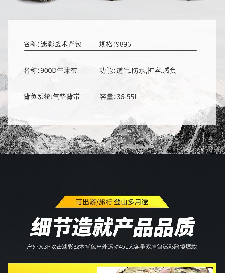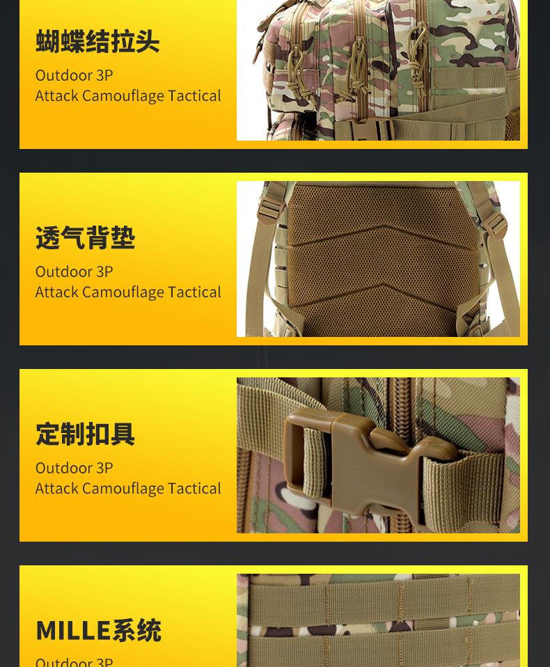 Mochila Táctica de Ataque Camuflaje Grande para Exteriores 3P Mochila Táctica de Gran Capacidad para Montañismo al Aire Libre Venta al por Mayor