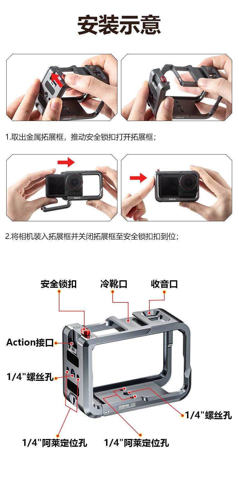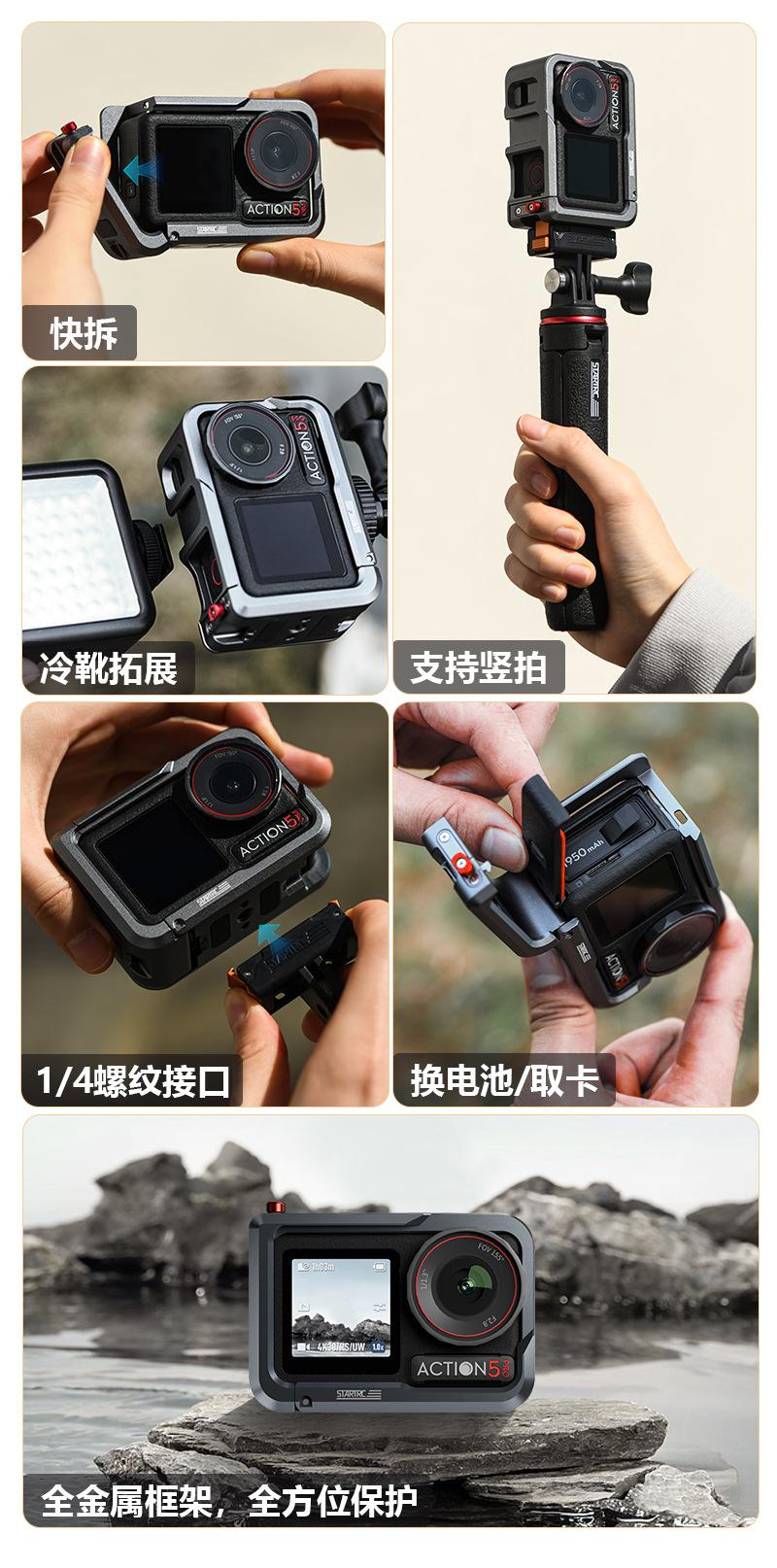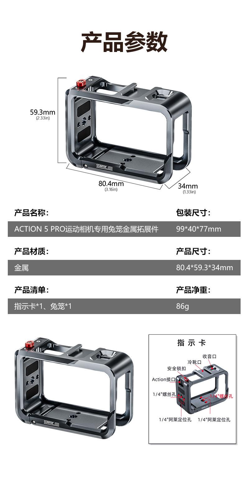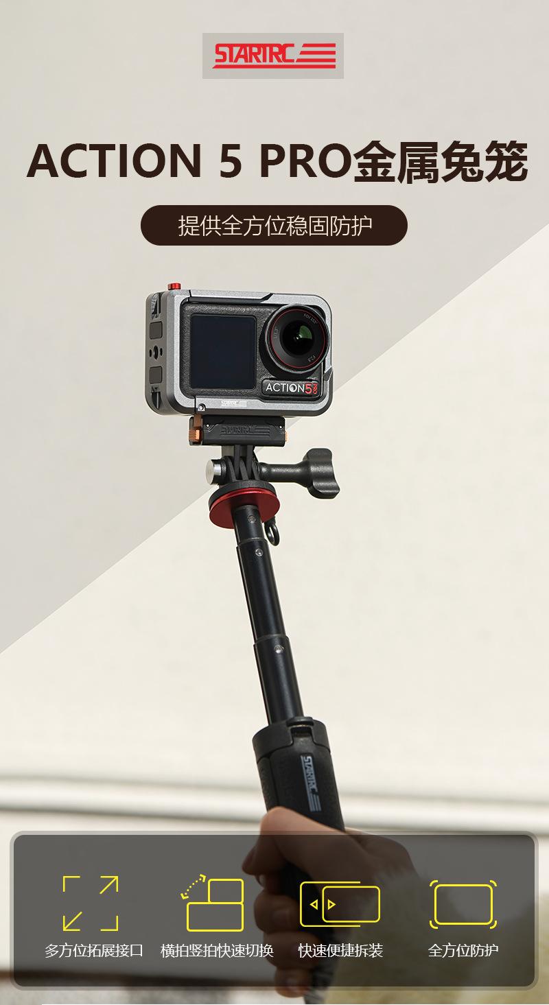Cámara deportiva DJI Action 5 Pro, jaula especial para conejos, piezas de expansión de metal, marco de protección anticaídas, accesorios